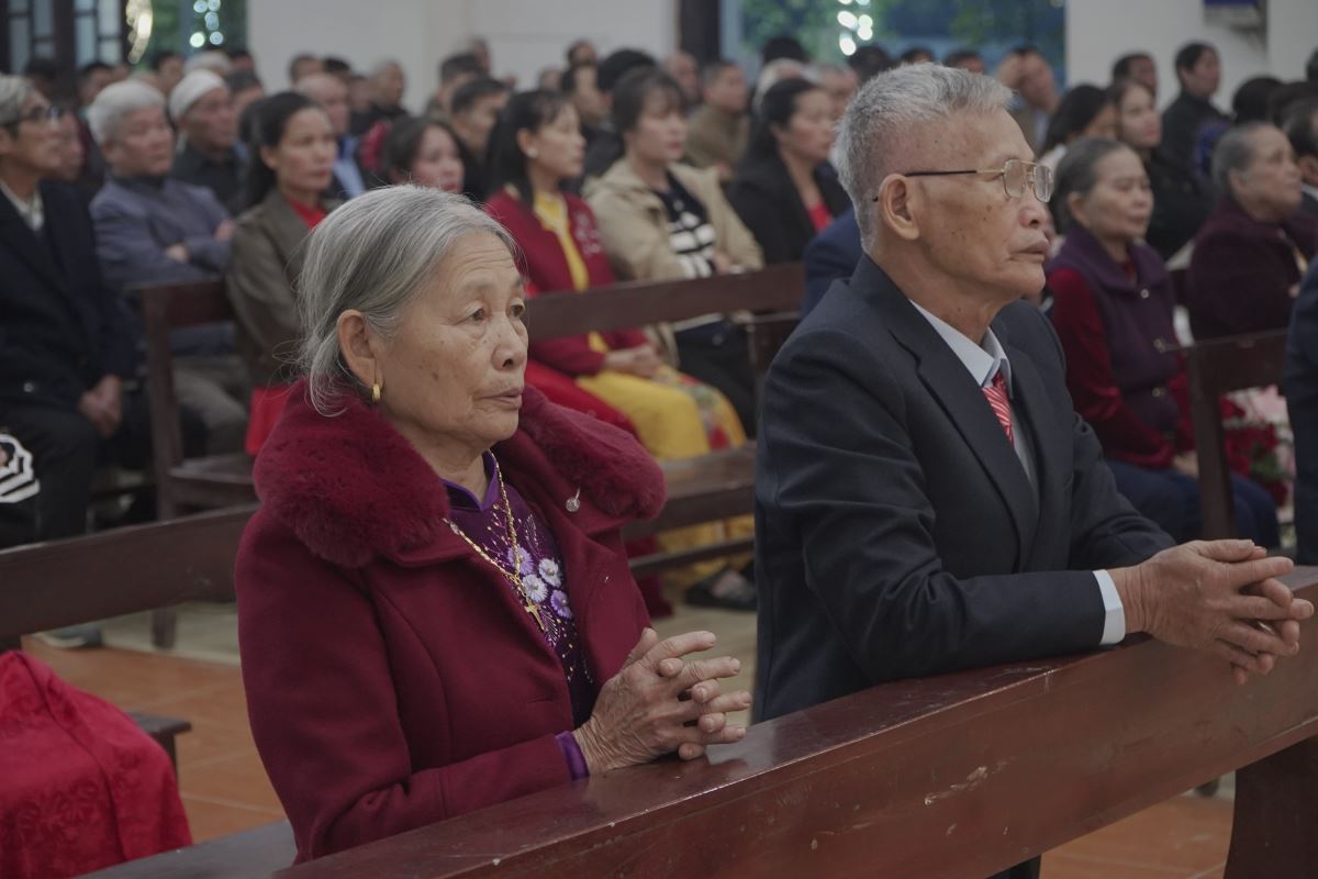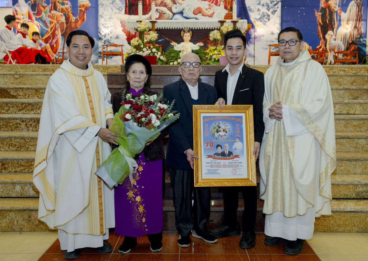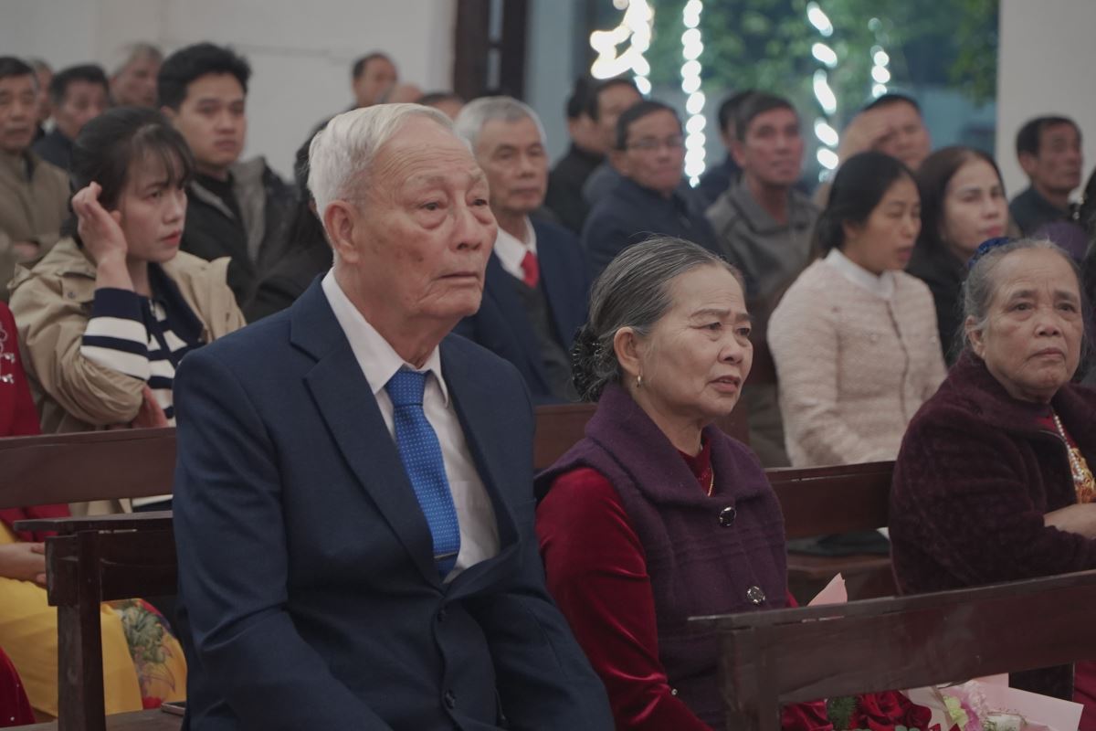 Trong bài giảng, Cha Giuse đã chia sẻ rất sâu sắc về tình nghĩa vợ chồng, qua đó nhấn mạnh rằng đời sống gia đình là một hành trình dài, đầy hy vọng nhưng cũng không thiếu những gian truân, thử thách; gia đình không phải là nơi hoàn hảo, nhưng là nơi các thành viên cùng nhau vượt qua những sóng gió của cuộc đời; và ngay cả gia đình Thánh Gia Nadarét cũng đã trải qua biết bao khó khăn, bấp bênh, nhưng nhờ có Chúa ở cùng, có tình yêu và sự tín thác nơi Thiên Chúa, gia đình nhỏ bé ấy vẫn luôn vững bền. Kết thúc bài giảng, Cha Giuse mời gọi mỗi người, mỗi gia đình, cách riêng là các đôi hôn nhân mừng kỷ niệm 50, 60 và 70 năm ngày cưới, hãy noi gương gia đình Thánh Gia, biết cùng nhau vượt qua giông tố cuộc đời, để mỗi gia đình trở nên một mái ấm Nadarét nhỏ bé, nơi Chúa luôn hiện diện và là trung tâm của đời sống gia đình cũng như của cộng đoàn giáo xứ.