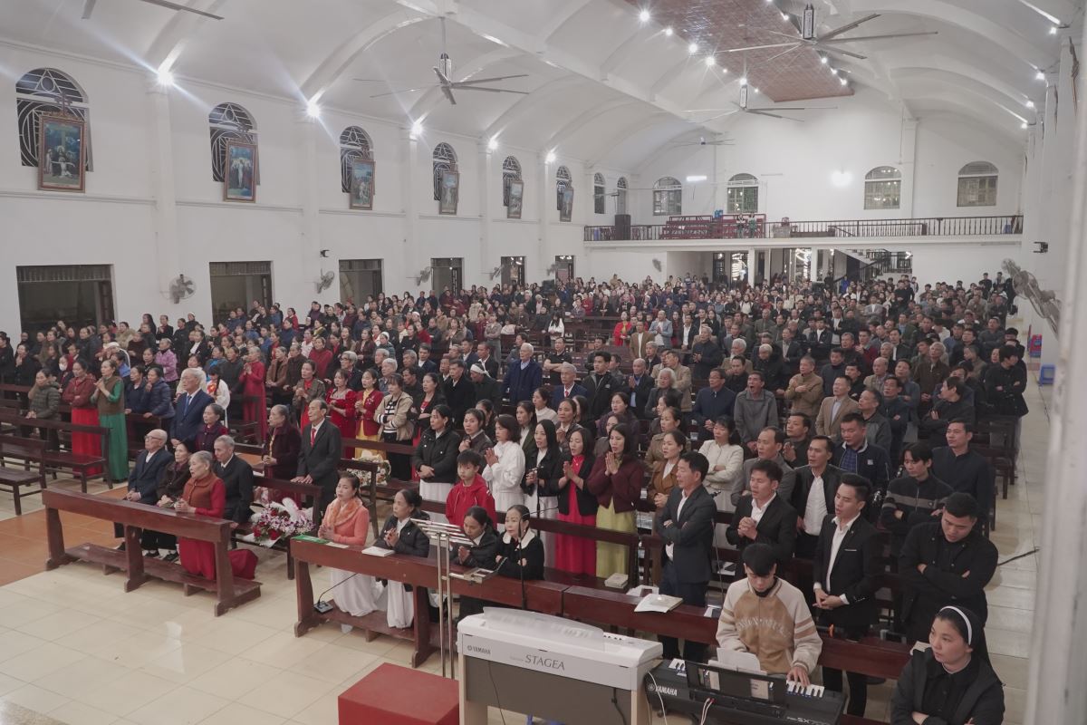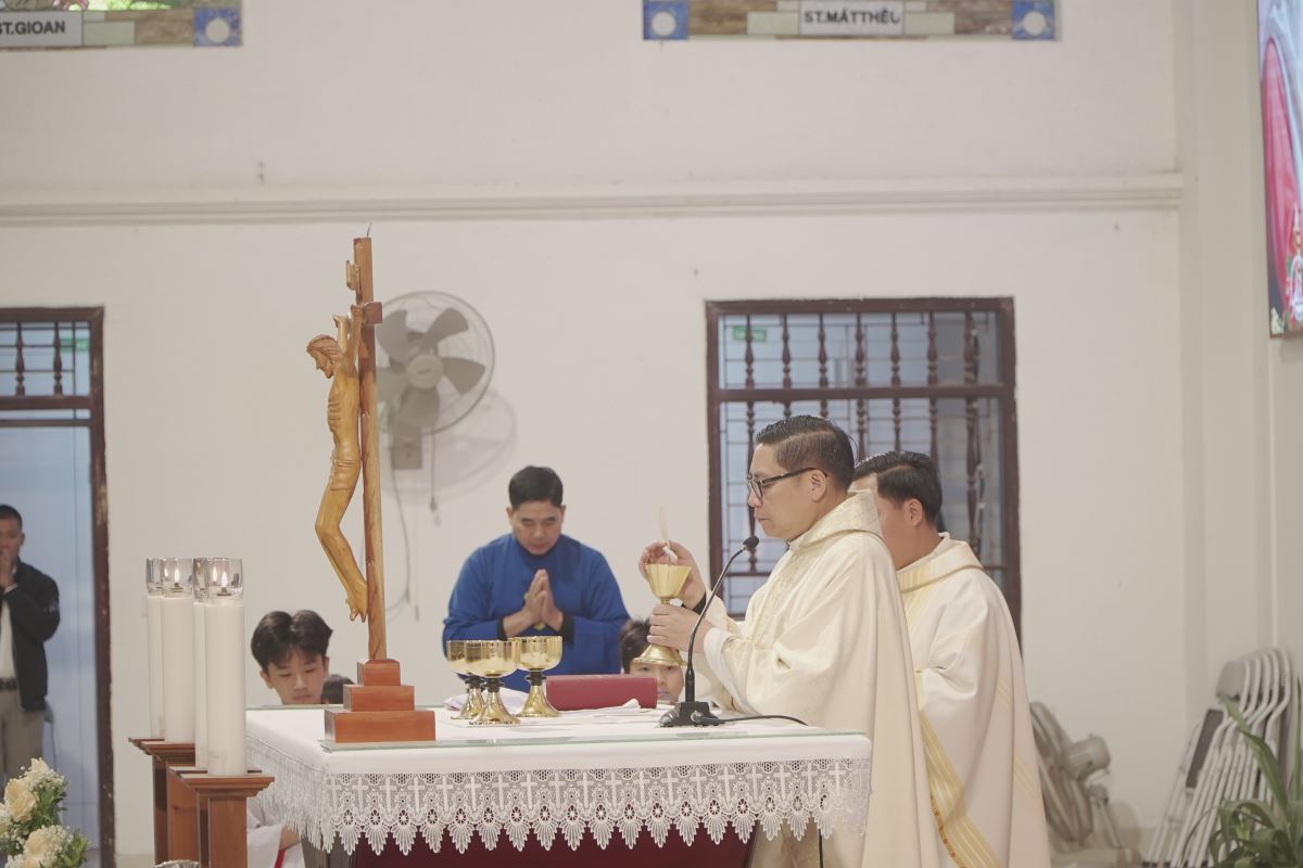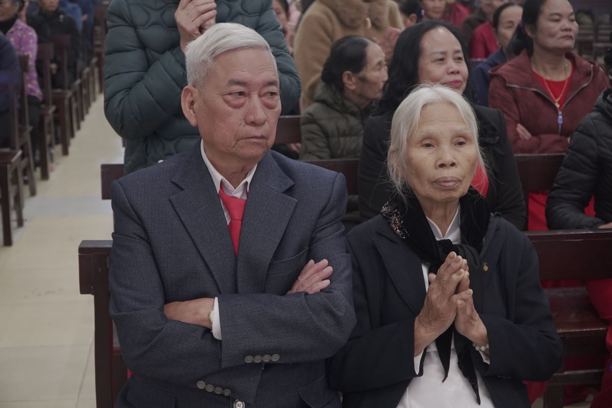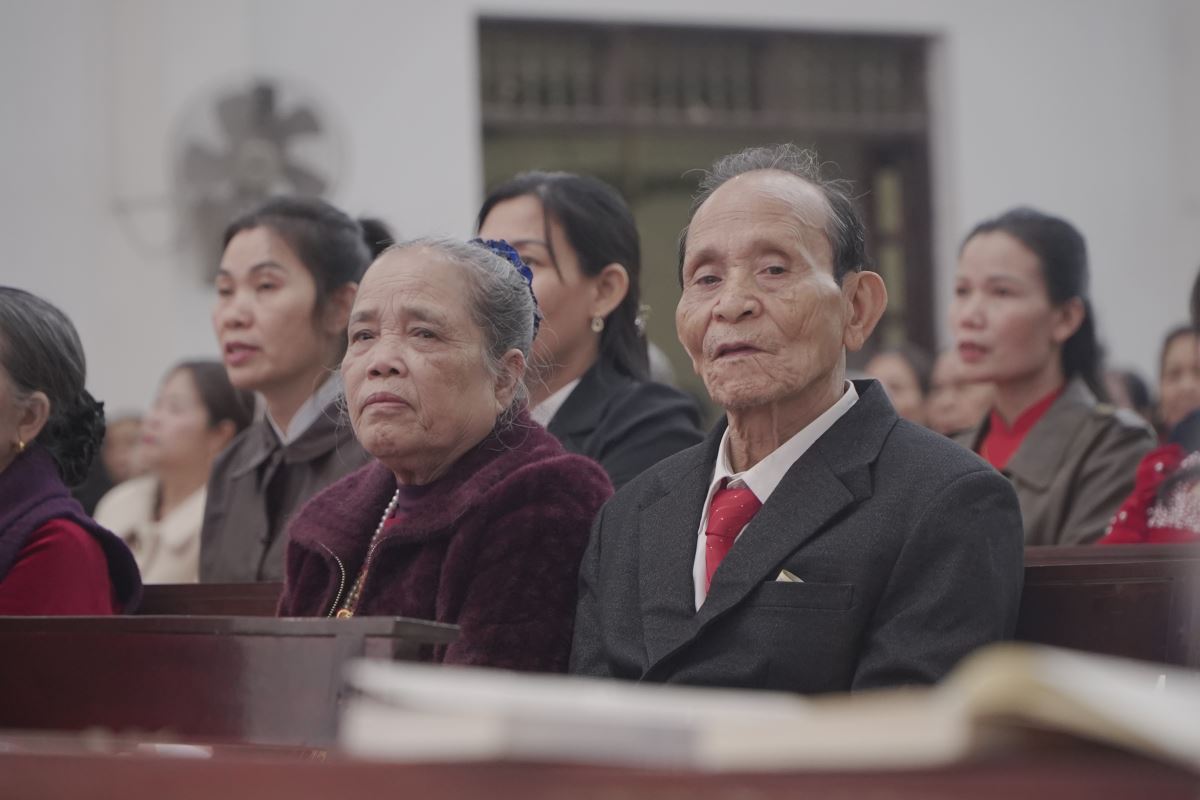 Trong bài giảng, Cha Giuse đã chia sẻ rất sâu sắc về tình nghĩa vợ chồng, qua đó nhấn mạnh rằng đời sống gia đình là một hành trình dài, đầy hy vọng nhưng cũng không thiếu những gian truân, thử thách; gia đình không phải là nơi hoàn hảo, nhưng là nơi các thành viên cùng nhau vượt qua những sóng gió của cuộc đời; và ngay cả gia đình Thánh Gia Nadarét cũng đã trải qua biết bao khó khăn, bấp bênh, nhưng nhờ có Chúa ở cùng, có tình yêu và sự tín thác nơi Thiên Chúa, gia đình nhỏ bé ấy vẫn luôn vững bền. Kết thúc bài giảng, Cha Giuse mời gọi mỗi người, mỗi gia đình, cách riêng là các đôi hôn nhân mừng kỷ niệm 50, 60 và 70 năm ngày cưới, hãy noi gương gia đình Thánh Gia, biết cùng nhau vượt qua giông tố cuộc đời, để mỗi gia đình trở nên một mái ấm Nadarét nhỏ bé, nơi Chúa luôn hiện diện và là trung tâm của đời sống gia đình cũng như của cộng đoàn giáo xứ.