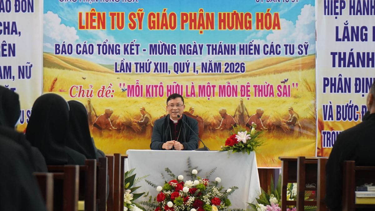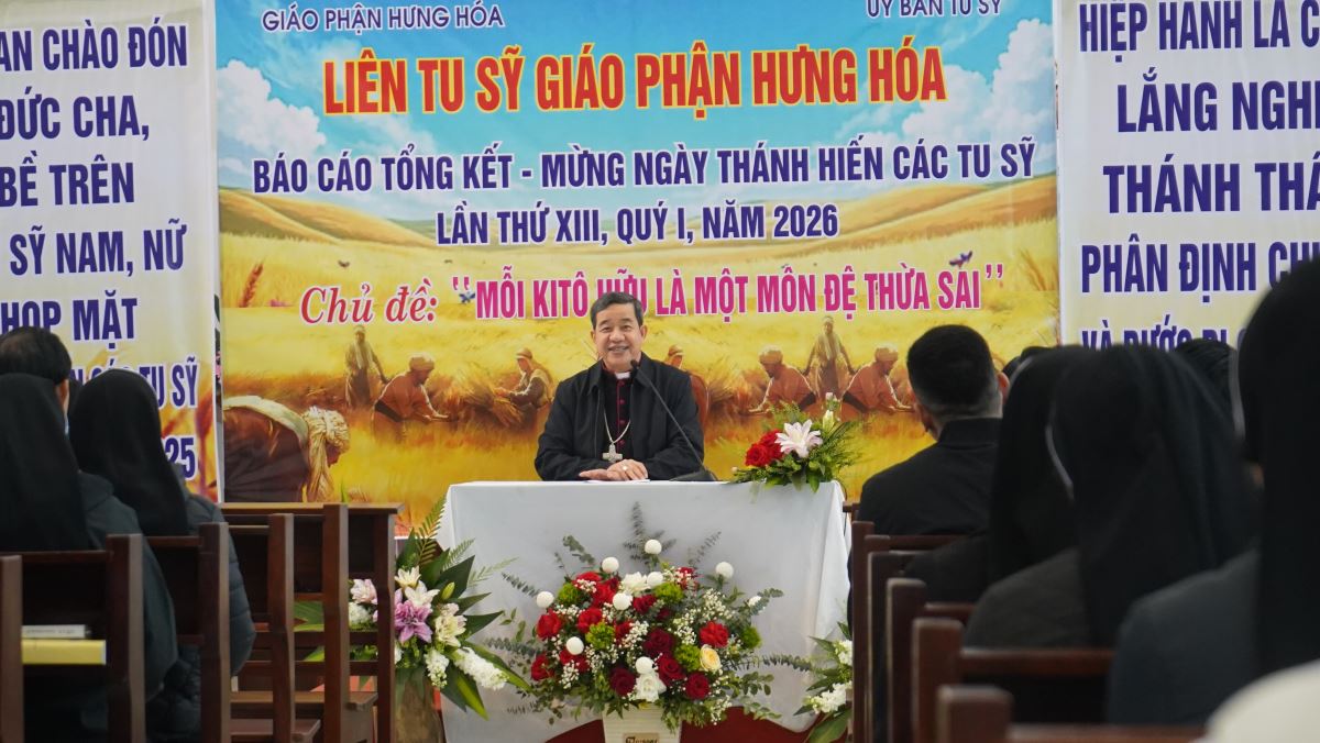 Buổi gặp mặt quy tụ gần 400 tu sĩ đến từ 25 hội dòng, tu đoàn, tu hội và hiệp hội, đang hiện diện và phục vụ trên khắp cánh đồng truyền giáo rộng lớn của Giáo phận Hưng Hóa. Đặc biệt, chương trình có sự hiện diện của Đức cha Đaminh Hoàng Minh Tiến – Giám mục Chính tòa Giáo phận Hưng Hóa, cùng Đức cha Phụ tá Phaolô Nguyễn Quang Đĩnh, như dấu chỉ sinh động của sự hiệp thông và sự quan tâm mục tử dành cho đời sống thánh hiến trong Giáo phận.