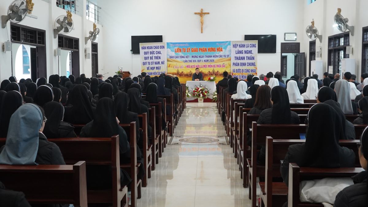 Với ý nghĩa đó, sáng ngày 02/02/2026, Liên Tu Sĩ Giáo phận Hưng Hóa đã long trọng tổ chức buổi gặp mặt mừng Ngày Quốc tế Đời sống Thánh hiến và chúc mừng năm mới 2026 tại Trung tâm Mục vụ Hà Thạch.