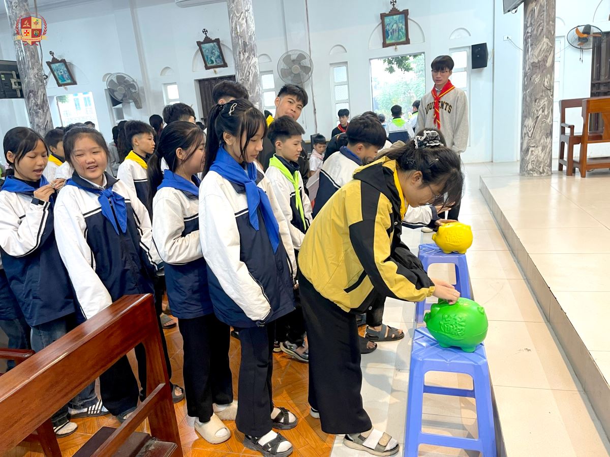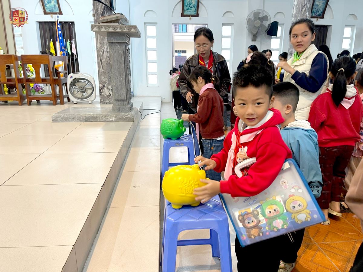số tiền tiết kiệm Mùa Vọng của các em thiếu nhi, qua việc bỏ “heo đất” mỗi ngày. Từ những đóng góp nhỏ bé ấy, những phần quà yêu thương đã được trao tận tay các gia đình, như một lời thăm hỏi ân cần và sự sẻ chia chân thành trong tinh thần Tin Mừng. Dù không lớn, nhưng mỗi phần quà đều chứa đựng