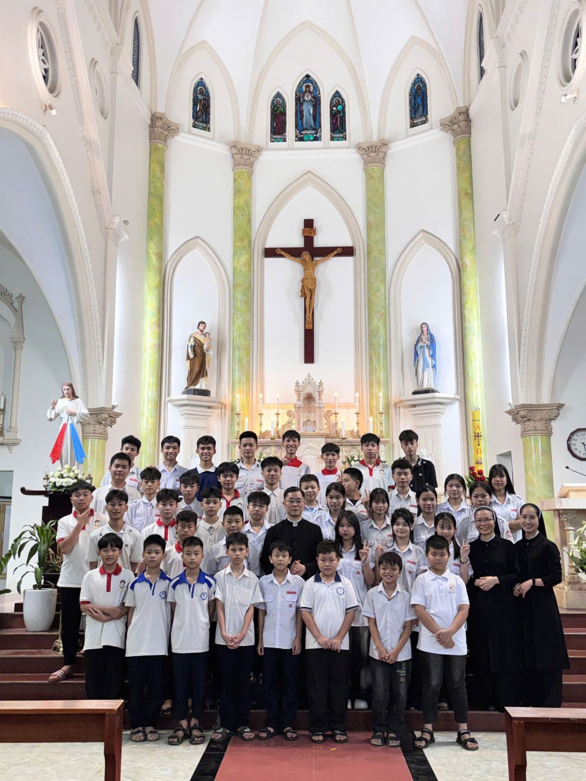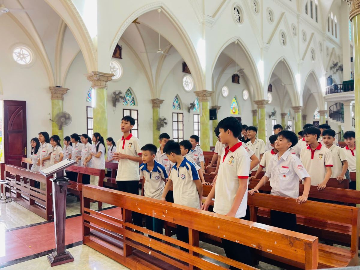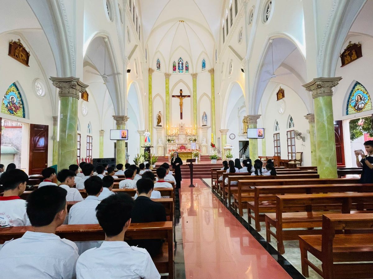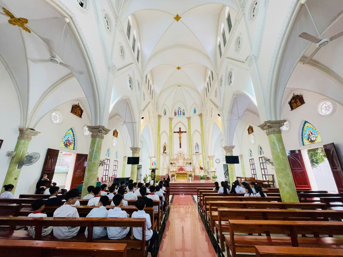 Kế đến là giờ chầu Thánh Thể từ 16g45 đến 17g15. Trong thinh lặng linh thiêng, mỗi người được mời gọi trở về với chính mình, lắng nghe tiếng Chúa trong sâu thẳm tâm hồn, và dâng lên Ngài những ước nguyện, thao thức về hành trình tương lai.