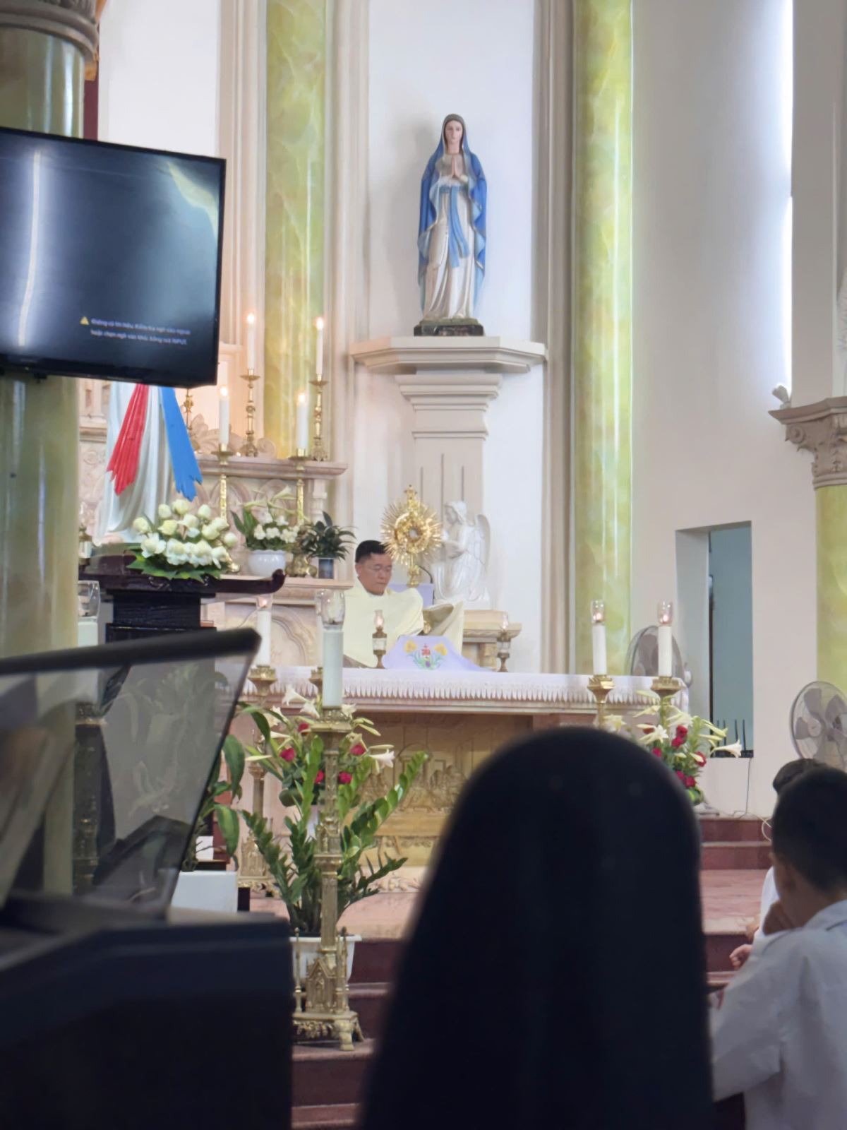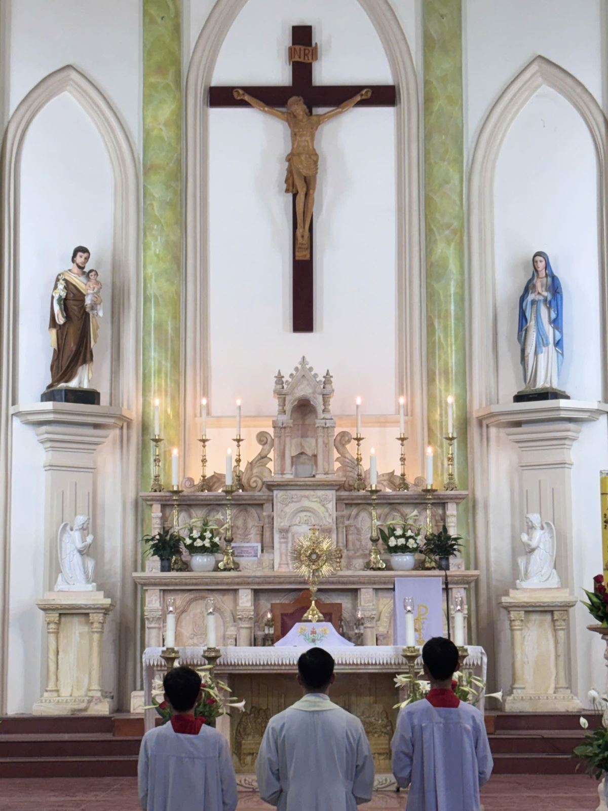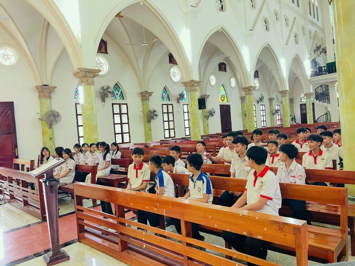 Kế đến là giờ chầu Thánh Thể từ 16g45 đến 17g15. Trong thinh lặng linh thiêng, mỗi người được mời gọi trở về với chính mình, lắng nghe tiếng Chúa trong sâu thẳm tâm hồn, và dâng lên Ngài những ước nguyện, thao thức về hành trình tương lai.
