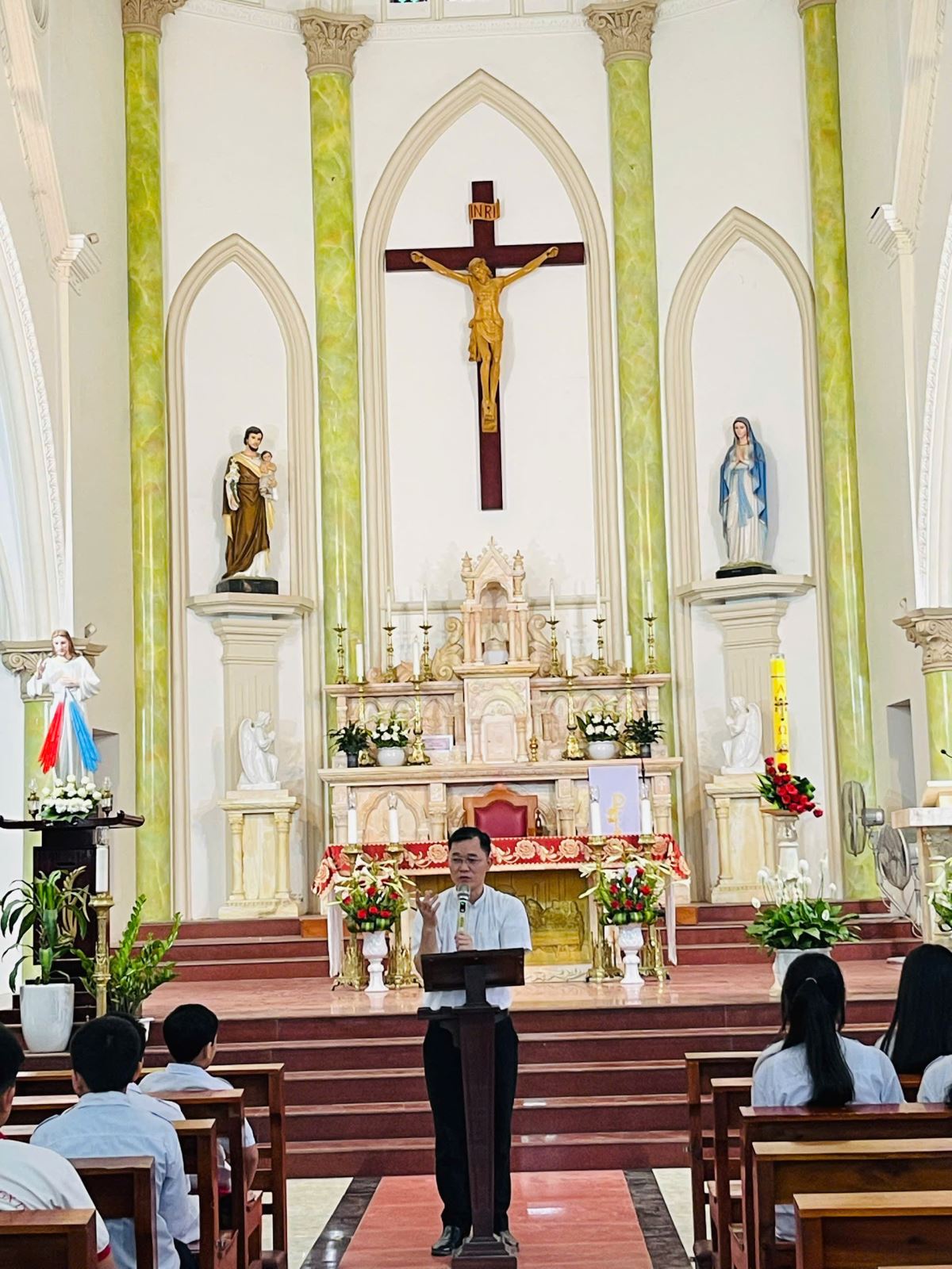 WGPHH – Trong bầu khí hiệp thông của Chúa Nhật Chúa Chiên Lành – ngày Giáo Hội cầu nguyện cho ơn gọi, Giáo xứ Trại Vàng đã tổ chức Ngày cầu nguyện cho ơn thiên triệu, quy tụ 40 em tu sinh và lễ sinh (30 nam, 10 nữ) từ cấp II đến đại học, dưới sự đồng hành của cha phó Giuse Nguyễn Tiến Thành, cùng hai dì Tê-rê-sa Nguyễn Thị Hộ và Maria Hoàng Minh Anh, thuộc Hội dòng Mến Thánh Giá Hưng Hóa.