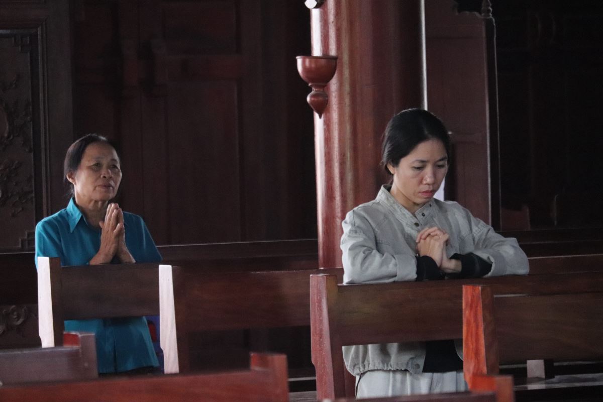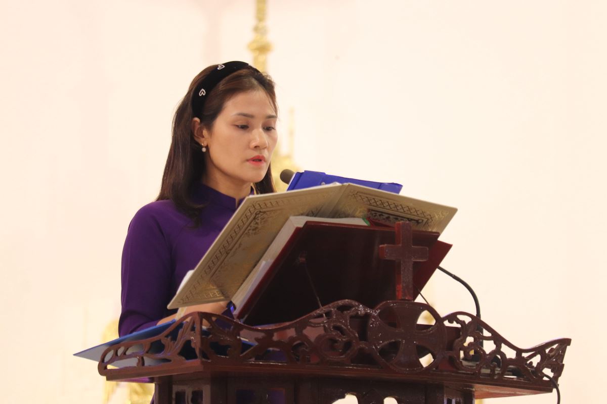 Tham dự Thánh lễ còn có thầy xứ Gioan Hồ Văn Chục, quý dì cộng đoàn Mến Thánh Giá Hoàng Xá, cùng đông đảo anh chị em tín hữu trong toàn giáo hạt.