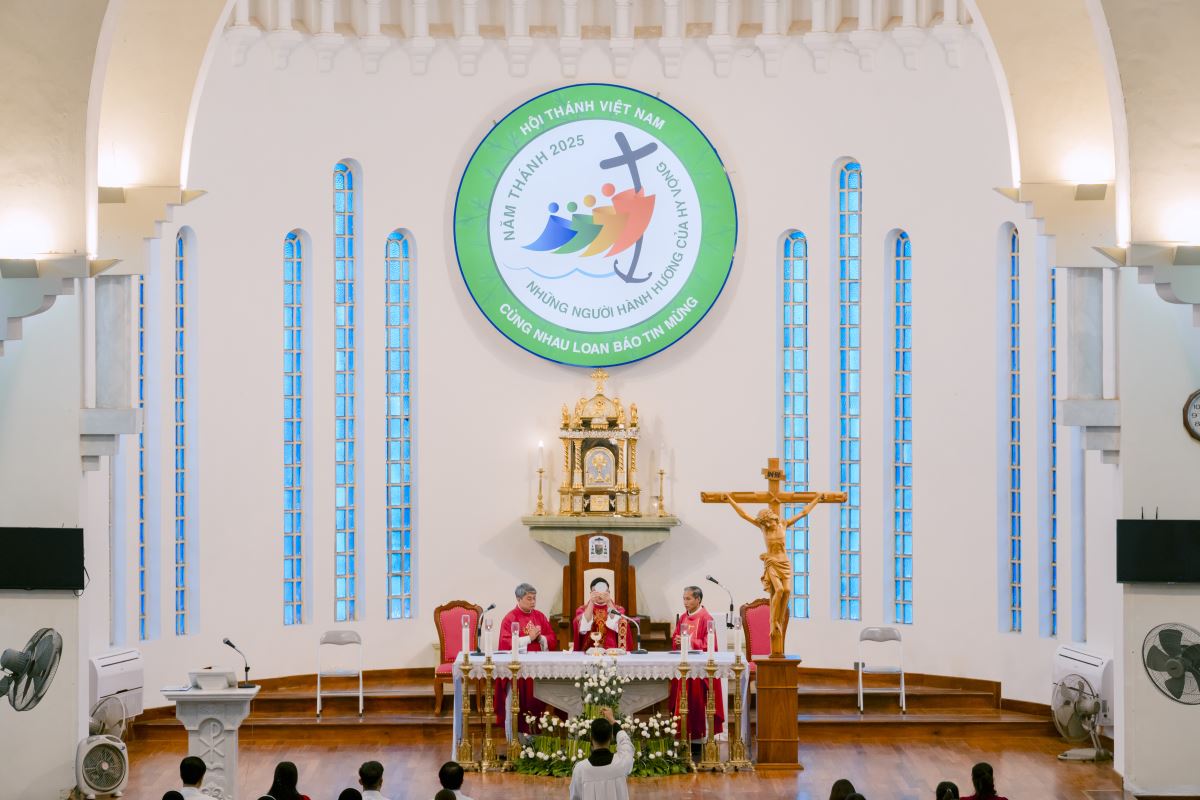 Trong bài giảng, Đức cha Phaolô dẫn dắt cộng đoàn chiêm ngắm chứng tá anh dũng của Các Thánh Tử đạo Việt Nam. Dù phải đối diện cực hình và cái chết, các ngài vẫn một lòng trung tín vì xác tín rằng: “Không có gì tách chúng ta ra khỏi tình yêu của Thiên Chúa thể hiện nơi Đức Kitô” (Rm 8,39).