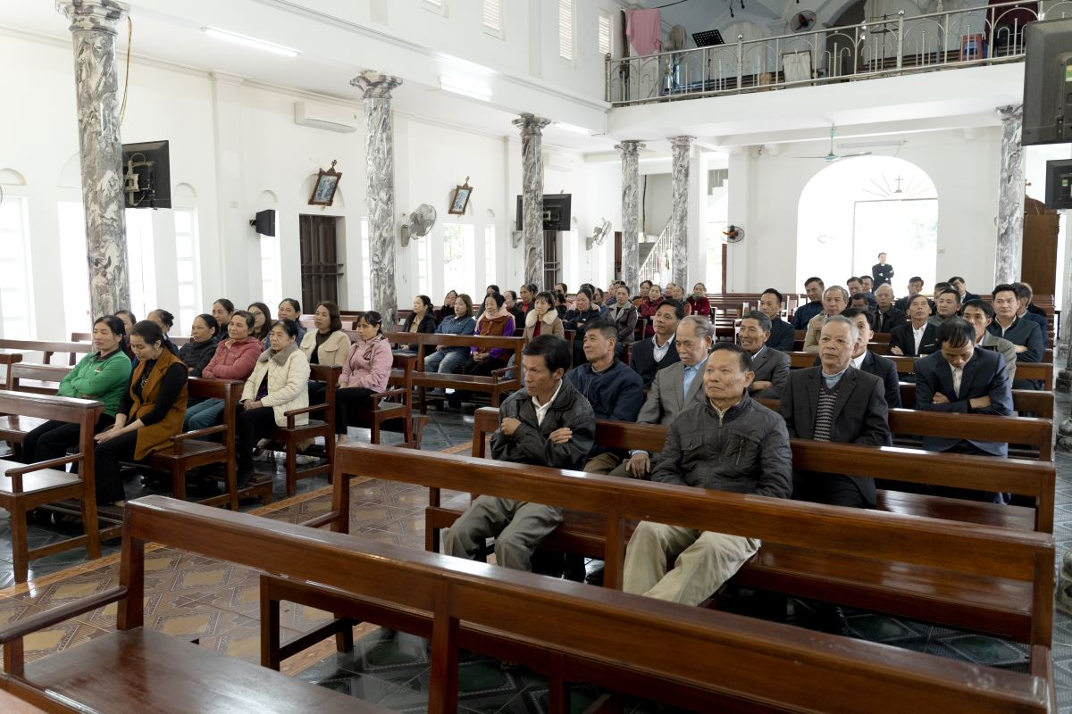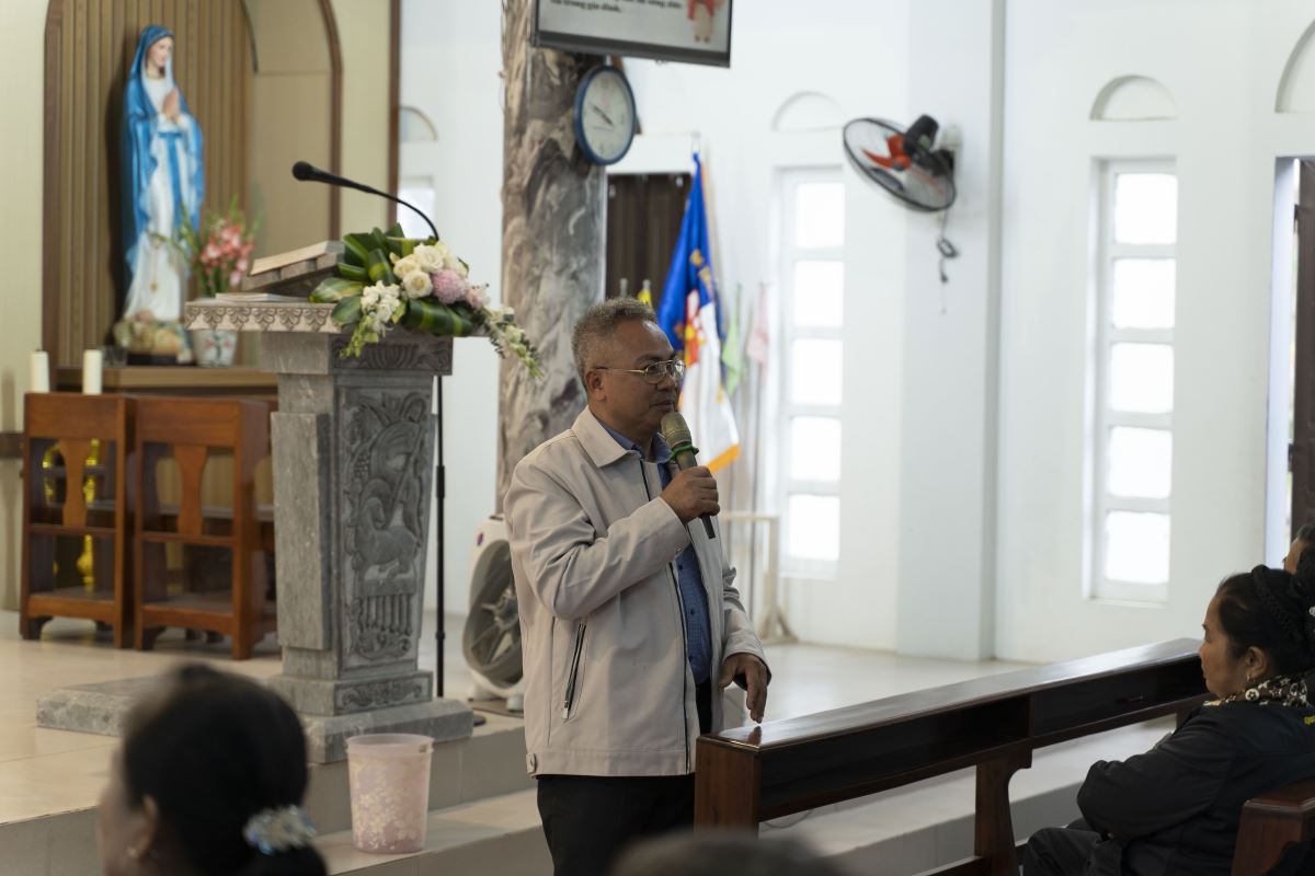 Sau phần chia sẻ, cộng đoàn cùng xem video gợi suy và bước vào phần thảo luận. Nhiều gia đình đã chân thành chia sẻ cách đức tin đang được sống trong gia đình mình qua những việc nhỏ bé nhưng đầy ý nghĩa: cùng đọc kinh sáng – tối, cùng chia sẻ Lời Chúa, cùng cầu nguyện trong những niềm vui và thử thách của cuộc sống. Những thao thức, băn khoăn của các gia đình đã được Cha xứ và Thầy xứ lắng nghe, giải đáp và đồng hành trong tinh thần mục vụ đầy cảm thông và gần gũi.