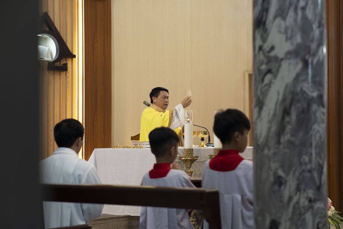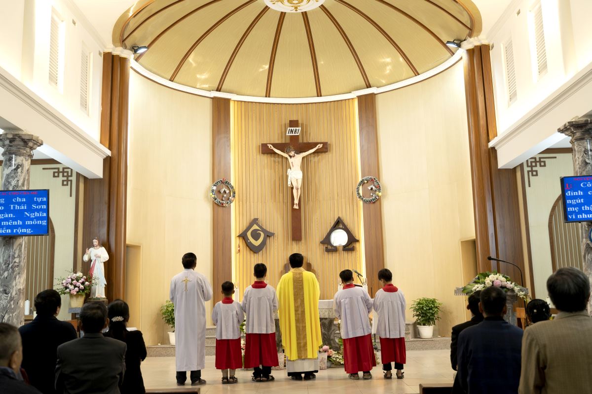 Vào lúc 16g45, Thánh lễ kính Thánh Gia Thất được cử hành trong bầu khí trang nghiêm, sốt sắng. Một điểm nhấn đặc biệt của Thánh lễ là cộng đoàn tham dự và ngồi theo từng cặp gia đình, diễn tả cách sống động hình ảnh gia đình hiệp thông bên bàn tiệc Thánh Thể.