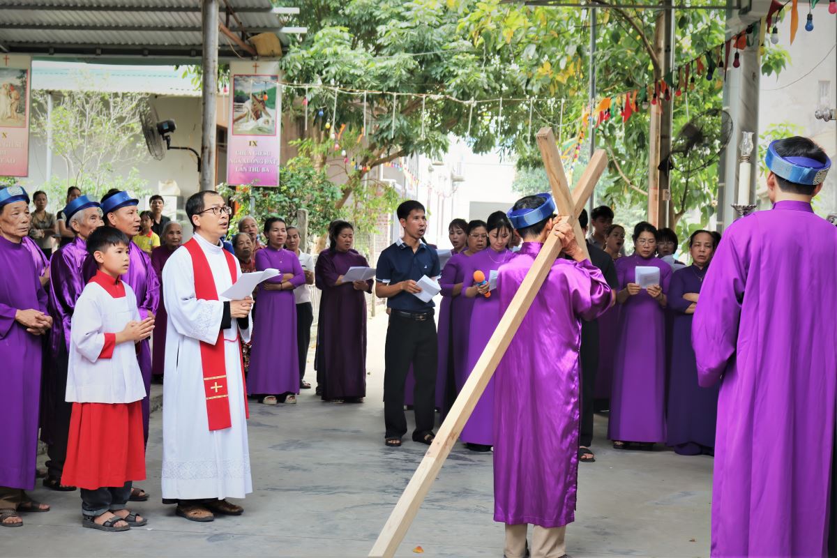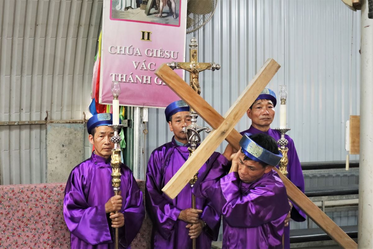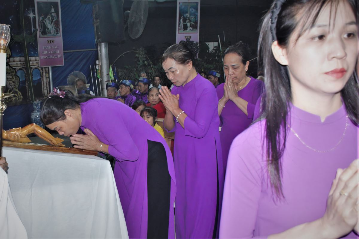 Khởi đi từ giờ kính nhớ cuộc khổ nạn của Chúa Giêsu, cộng đoàn đã cùng nhau sốt sắng bước theo 14 chặng Đàng Thánh Giá. Mỗi chặng là một điểm dừng chân suy niệm, giúp các tín hữu cảm nghiệm sâu sắc hơn tình yêu cứu độ mà Chúa đã dành cho nhân loại qua cuộc thương khó. Trong bầu khí thinh lặng, từng lời nguyện, từng bước chân như hòa quyện với những đau khổ của Chúa, khơi dậy nơi mỗi người lòng thống hối và quyết tâm sống đời Kitô hữu cách trọn vẹn hơn.