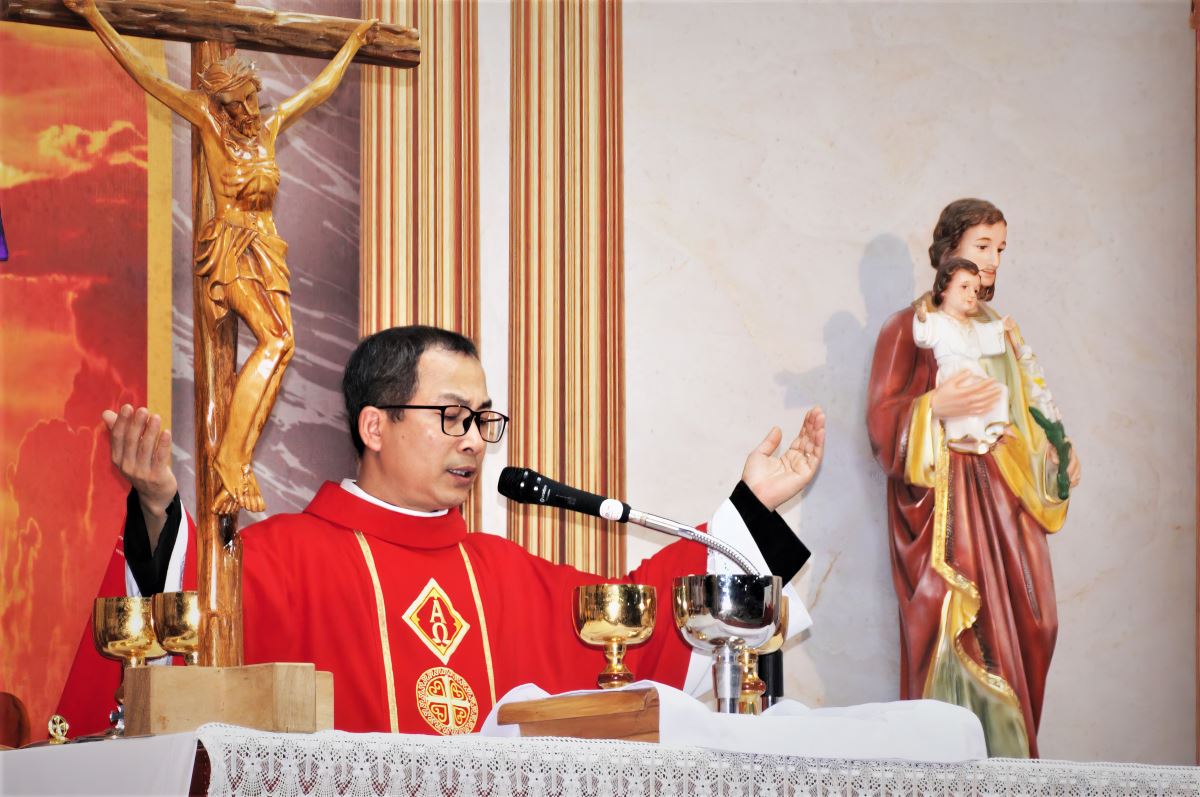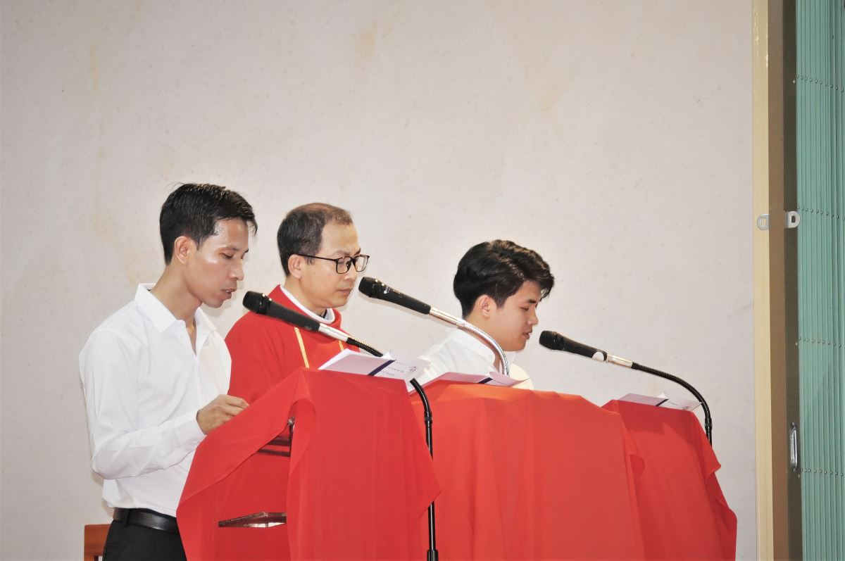 Trong phần chia sẻ Lời Chúa, cha phó đặc trách Vinh Sơn Vũ Văn Nguyện đã giúp cộng đoàn hiểu sâu sắc hơn về ý nghĩa và giá trị của Thánh Giá trong đời sống Kitô hữu. Ngài nhấn mạnh rằng Thánh Giá không chỉ là biểu tượng của đau khổ, nhưng trước hết là dấu chỉ của tình yêu cứu độ. Chính nơi Thánh Giá, Chúa Giêsu đã hiến dâng mạng sống mình để đem lại ơn tha thứ và sự sống mới cho nhân loại.