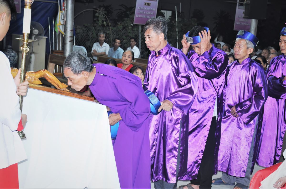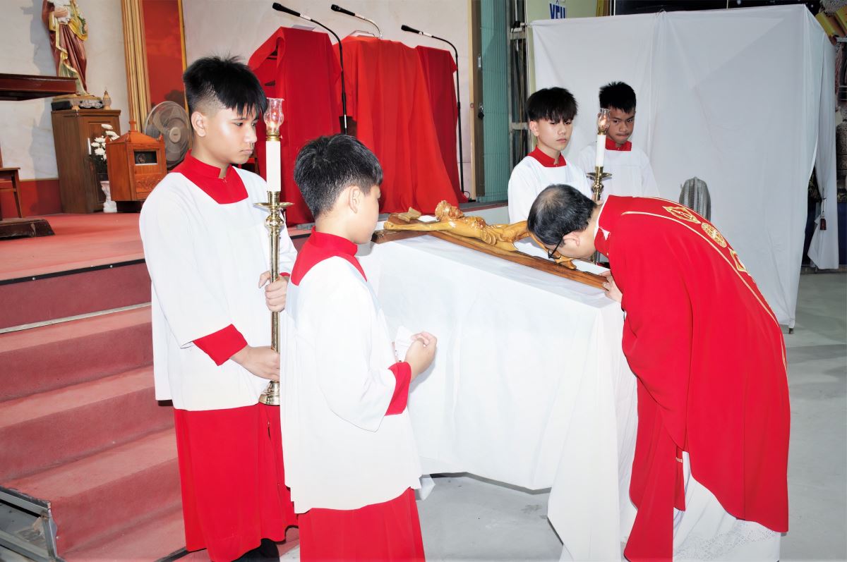 Trong giây phút linh thiêng, Thánh Giá Chúa được cung kính rước lên, và cộng đoàn lần lượt tiến lên hôn kính chân Chúa. Cử chỉ đơn sơ nhưng đầy ý nghĩa này diễn tả lòng yêu mến, biết ơn và sự hiệp thông sâu xa của người tín hữu với Đấng đã chịu đóng đinh vì nhân loại.