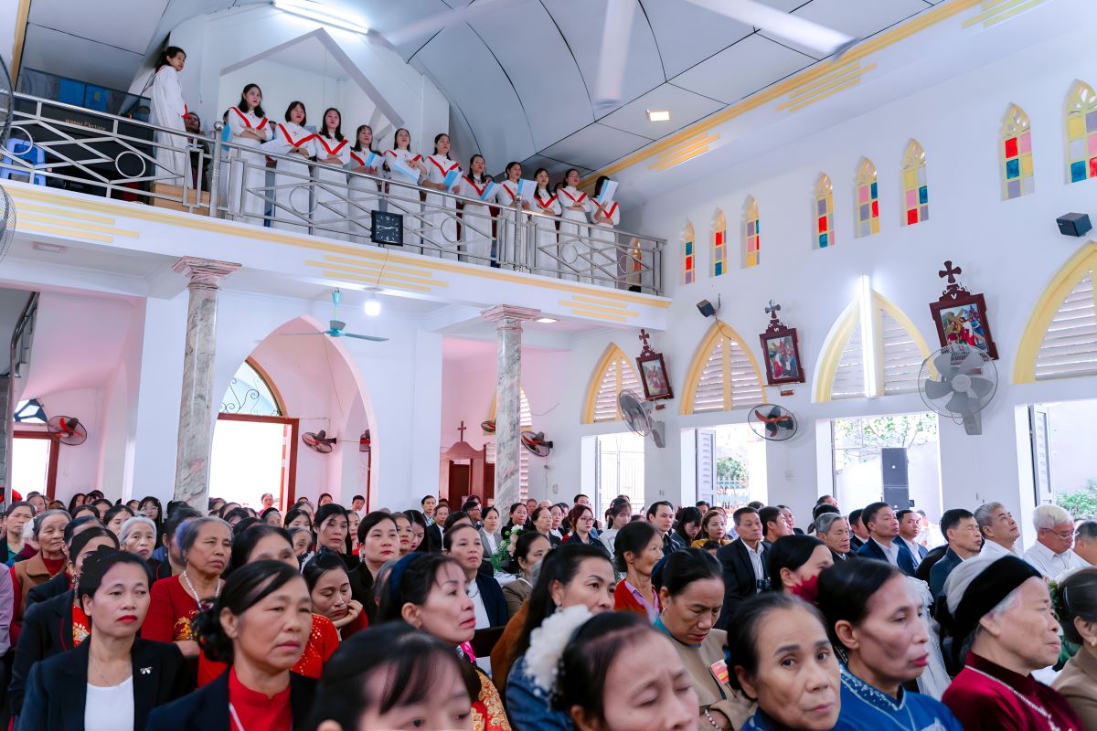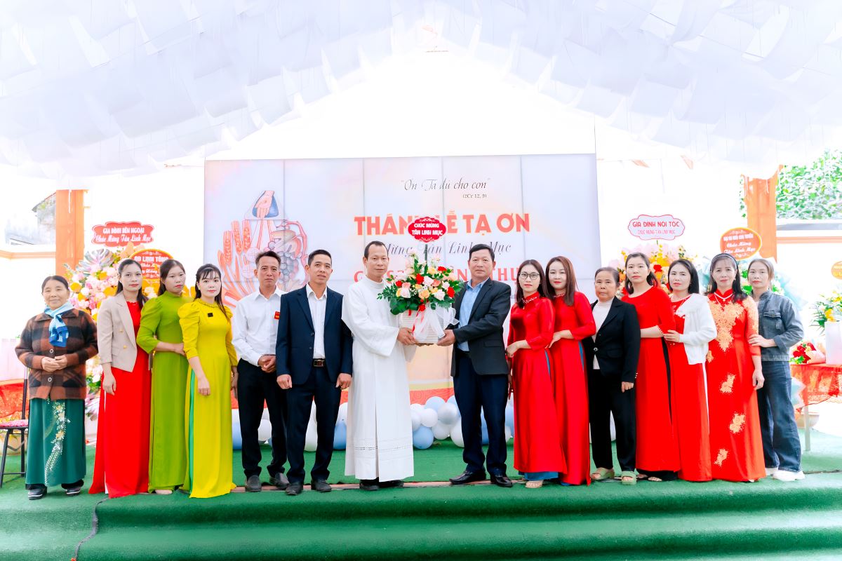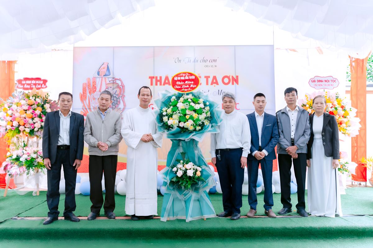 Từ sáng sớm, bầu khí tại giáo họ Xuân Vân đã tràn ngập niềm hân hoan. Quý chức, các hội đoàn và đông đảo bà con giáo dân quy tụ để cùng chào mừng Tân linh mục trong ngày ngài dâng Thánh lễ tạ ơn đầu tiên tại quê nhà. Những lời chúc mừng, những đóa hoa tươi thắm được trao gửi, biểu lộ sự quan tâm, yêu mến và niềm tự hào của cộng đoàn đối với người con yêu dấu của giáo họ.