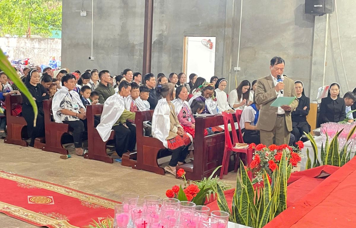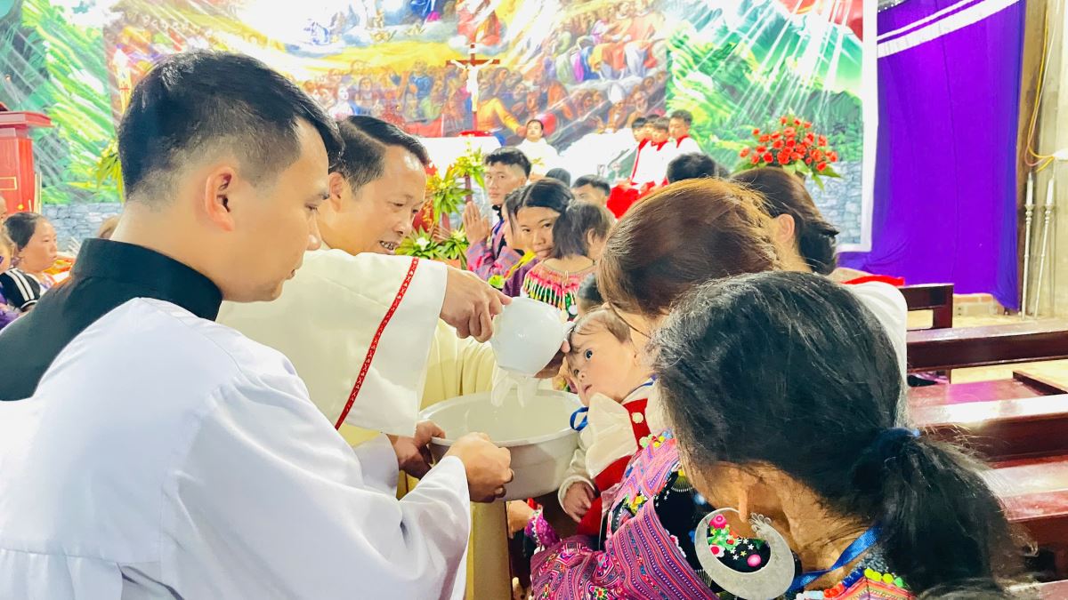 Thánh lễ tiếp tục với phần phụng vụ Thánh Thể trong bầu khí linh thiêng và ấm áp. Bài dâng lễ bằng tiếng Hmong vang lên tha thiết, hòa cùng nhịp đập của 89 tân tòng khiến nhiều người rưng rưng cảm xúc. Đức tin không phải là lý thuyết xa xôi, mà là một sự sống đang lớn lên, đang đơm hoa giữa núi rừng. Nhìn những khuôn mặt ánh lên niềm vui, ai nấy đều cảm nhận rõ ràng sự hiện diện của Thiên Chúa giữa cộng đoàn đơn sơ nhưng tràn đầy đức tin này.