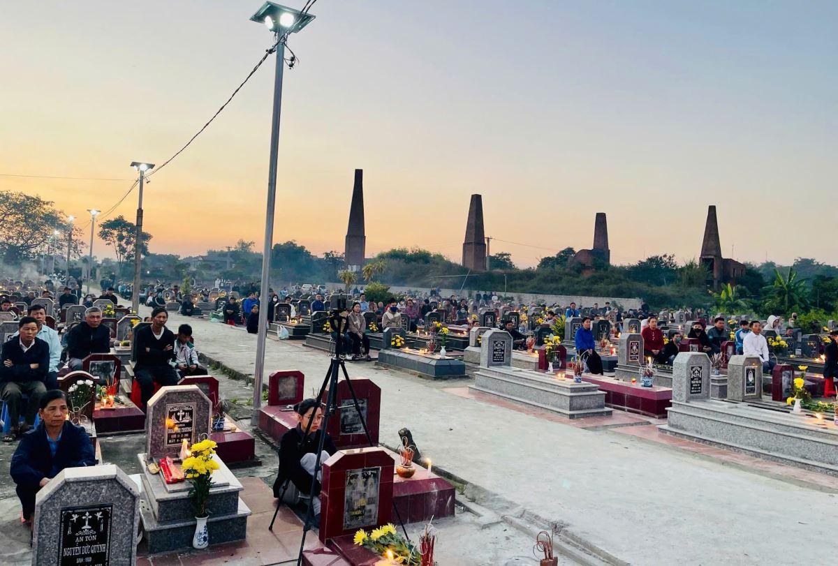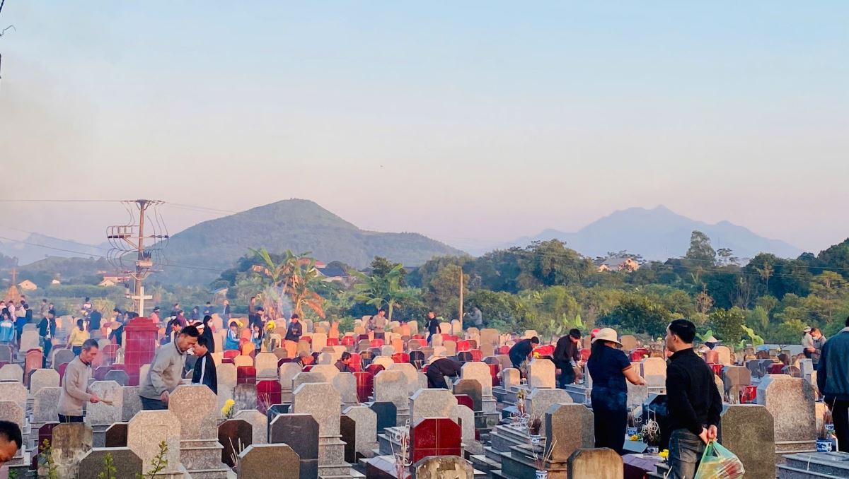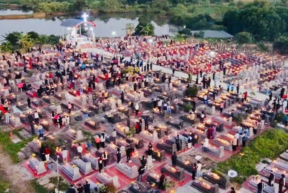 Nơi Vườn Thánh, từng gia đình quây quần bên phần mộ người thân, thắp nén hương, thắp ngọn nến và đặt những đóa hoa tươi bày tỏ tình yêu thương. Những nấm mộ bình yên nhắc nhớ rằng tình thân không hề biến mất, nhưng tiếp tục được sống trong Chúa và khắc sâu trong ký ức của con cháu.