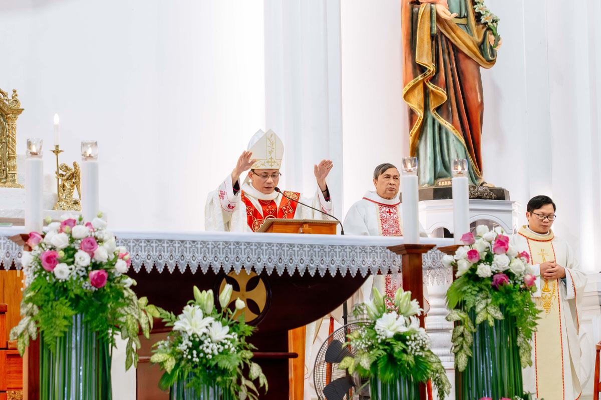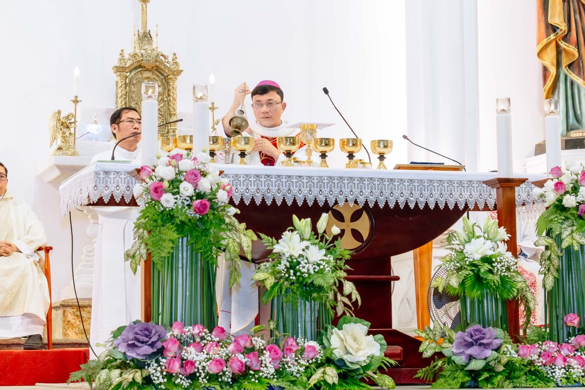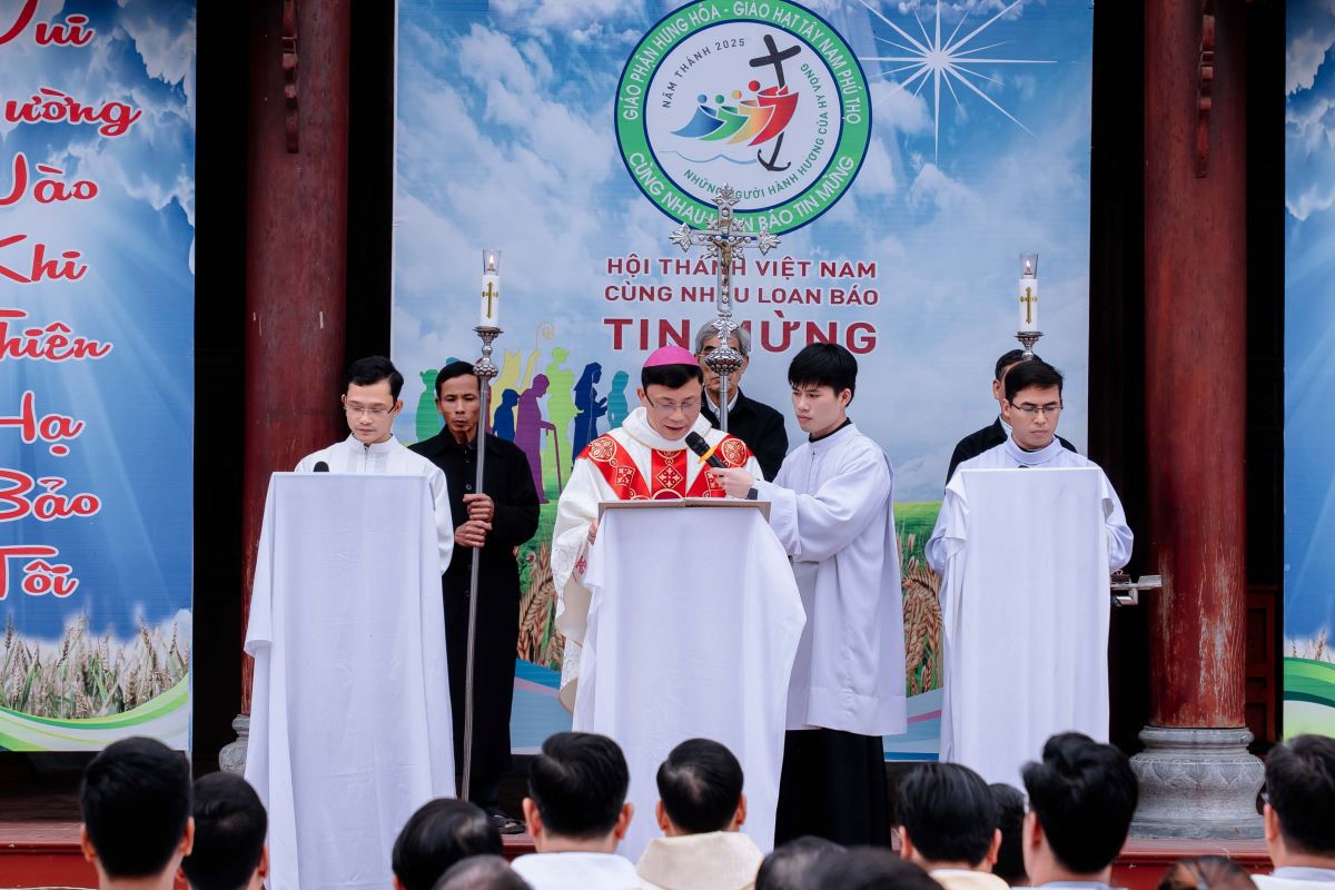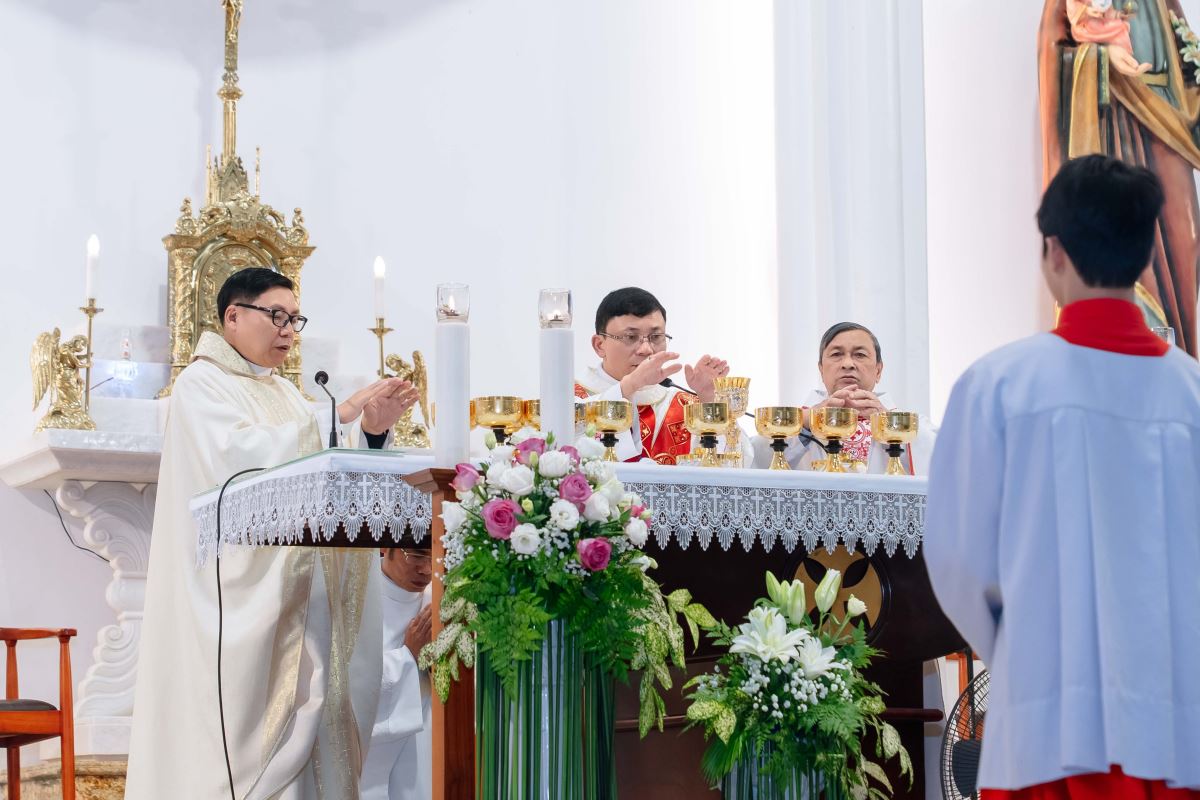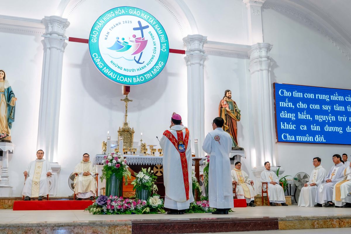 Đỉnh cao của ngày hồng phúc là Thánh lễ đồng tế do Đức Cha Phụ tá Phaolô Nguyễn Quang Đĩnh chủ sự. Đồng tế với Đức Cha có quý cha trong và ngoài giáo hạt. Hiện diện hiệp thông còn có quý thầy, quý tu sĩ, quý chức Hội đồng Mục vụ, đại diện các ban đoàn cùng đông đảo cộng đoàn Dân Chúa đến từ các giáo xứ trong Giáo hạt Tây Nam Phú Thọ.