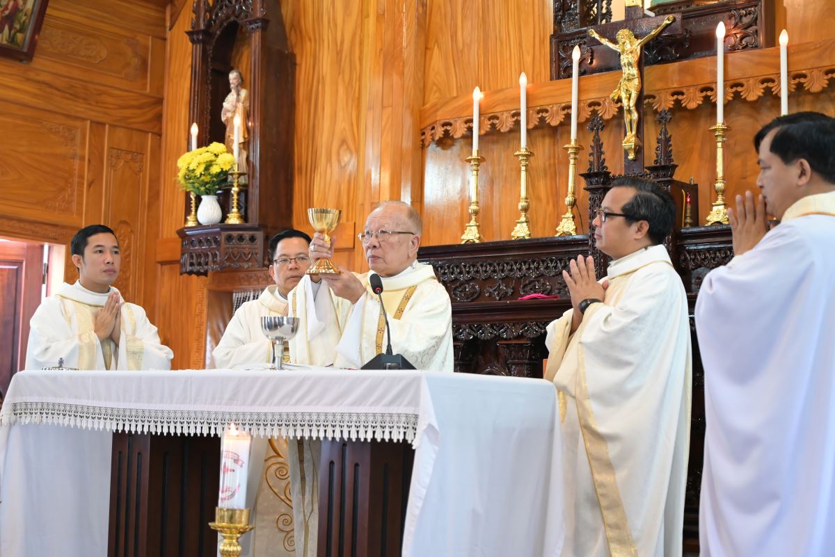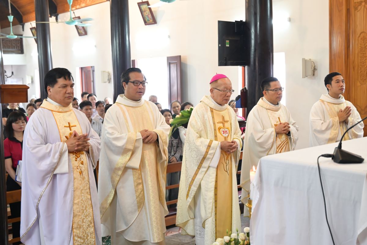 Thánh lễ do Đức cha Antôn Vũ Huy Chương – nguyên Giám mục chính tòa Giáo phận Hưng Hóa và Giáo phận Đà Lạt chủ tế. Đồng tế trong Thánh lễ có cha Giuse Nguyễn Văn Úy - Tổng Thư ký Linh mục đoàn Giáo phận Hưng Hóa - Trưởng hạt Sơn Tây, đồng thời là cha xứ giáo xứ Tình Lam, cha Đaminh Hoàng Thế Bằng - cha xứ giáo xứ Cát Ngòi, cũng là cha linh hướng của nhóm bác ái Emmanuel, cha Phanxicô Xaviê Trần Truyền Giáo – cha xứ giáo xứ Đồng Gianh (TGP Hà Nội) và cha Giuse Lương Văn Thủy – Phó xứ Tình Lam.