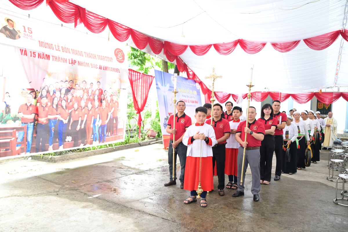 Đúng 09g45, đoàn đồng tế tiến vào nhà thờ dâng Thánh lễ kính thánh Martino quan thầy và kỷ niệm 15 năm thành lập nhóm Bác ái Emmanuel.