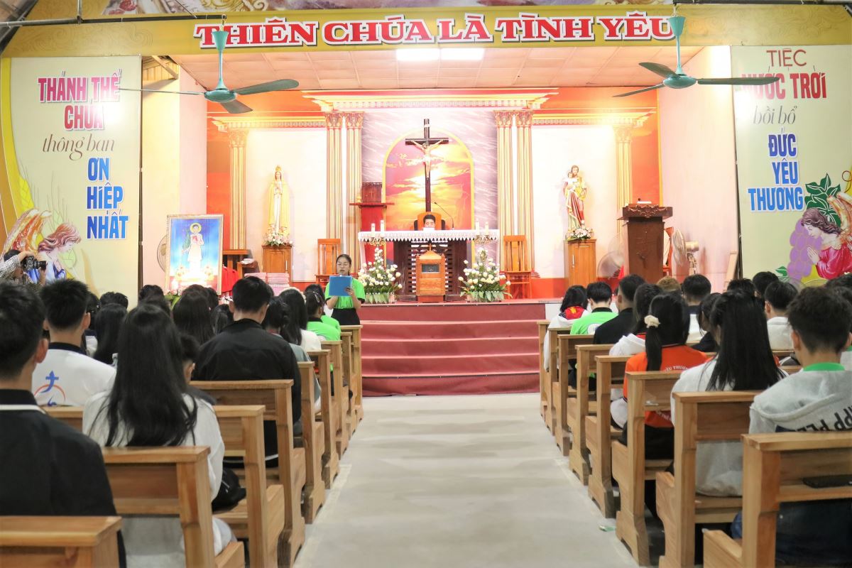 Vào lúc 19g30, cộng đoàn long trọng cử hành Thánh lễ kính Thánh Phaolô Nguyễn Văn Mỹ do cha Giuse Trần Văn Điển chủ sự. Trong bầu khí linh thiêng và sốt sắng, cộng đoàn cùng nhau dâng lời tạ ơn Thiên Chúa, đồng thời cầu xin Thánh Phaolô Nguyễn Văn Mỹ chuyển cầu cho giới trẻ luôn trung thành với đức tin và can đảm làm chứng cho Chúa giữa đời.
