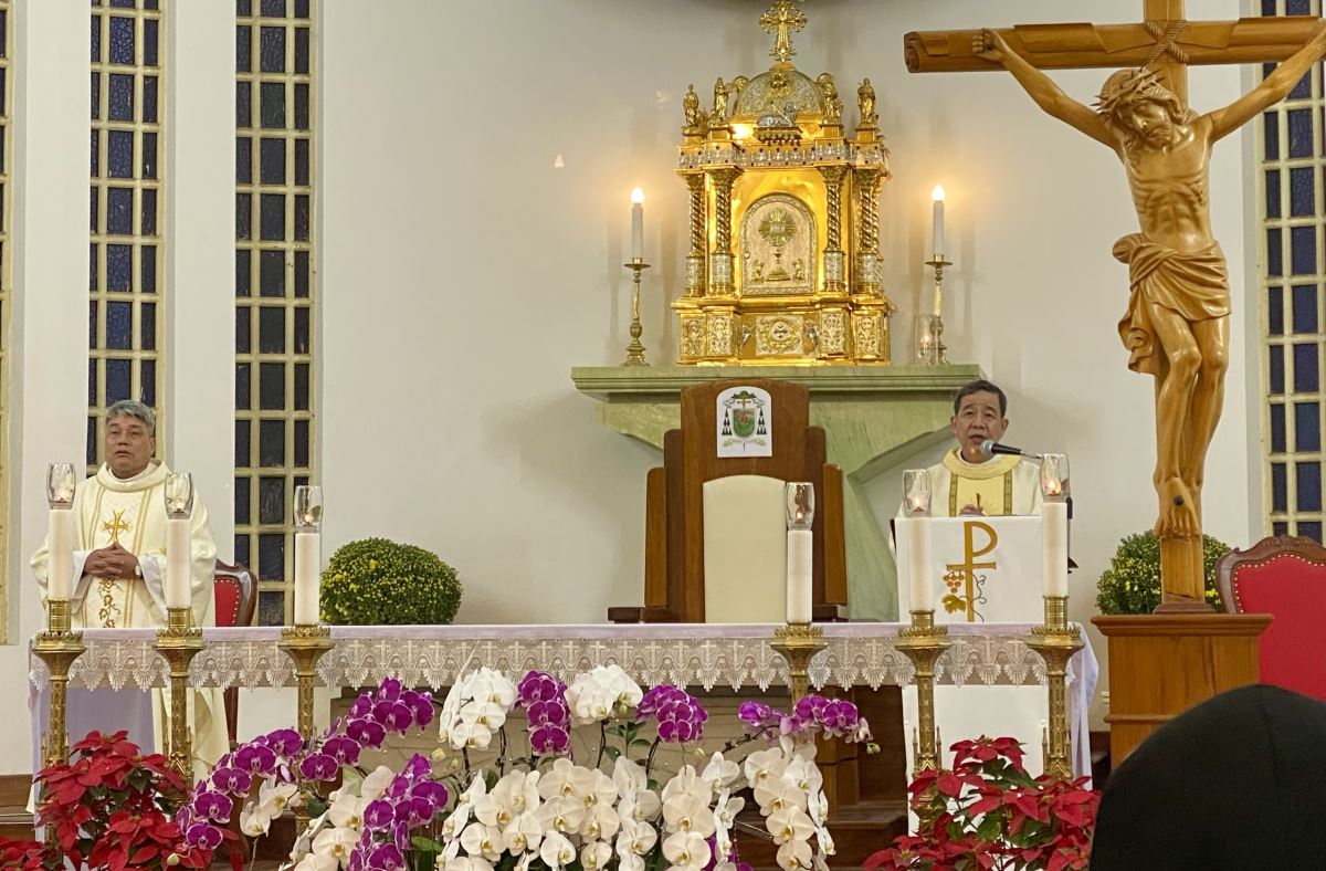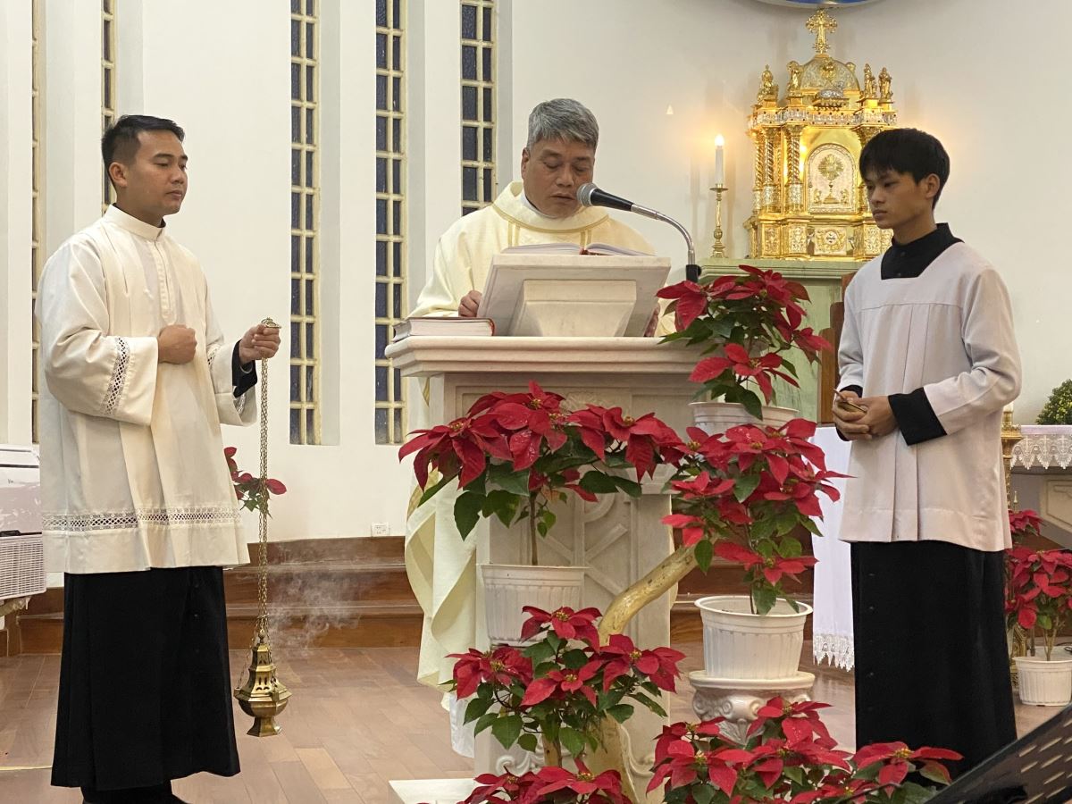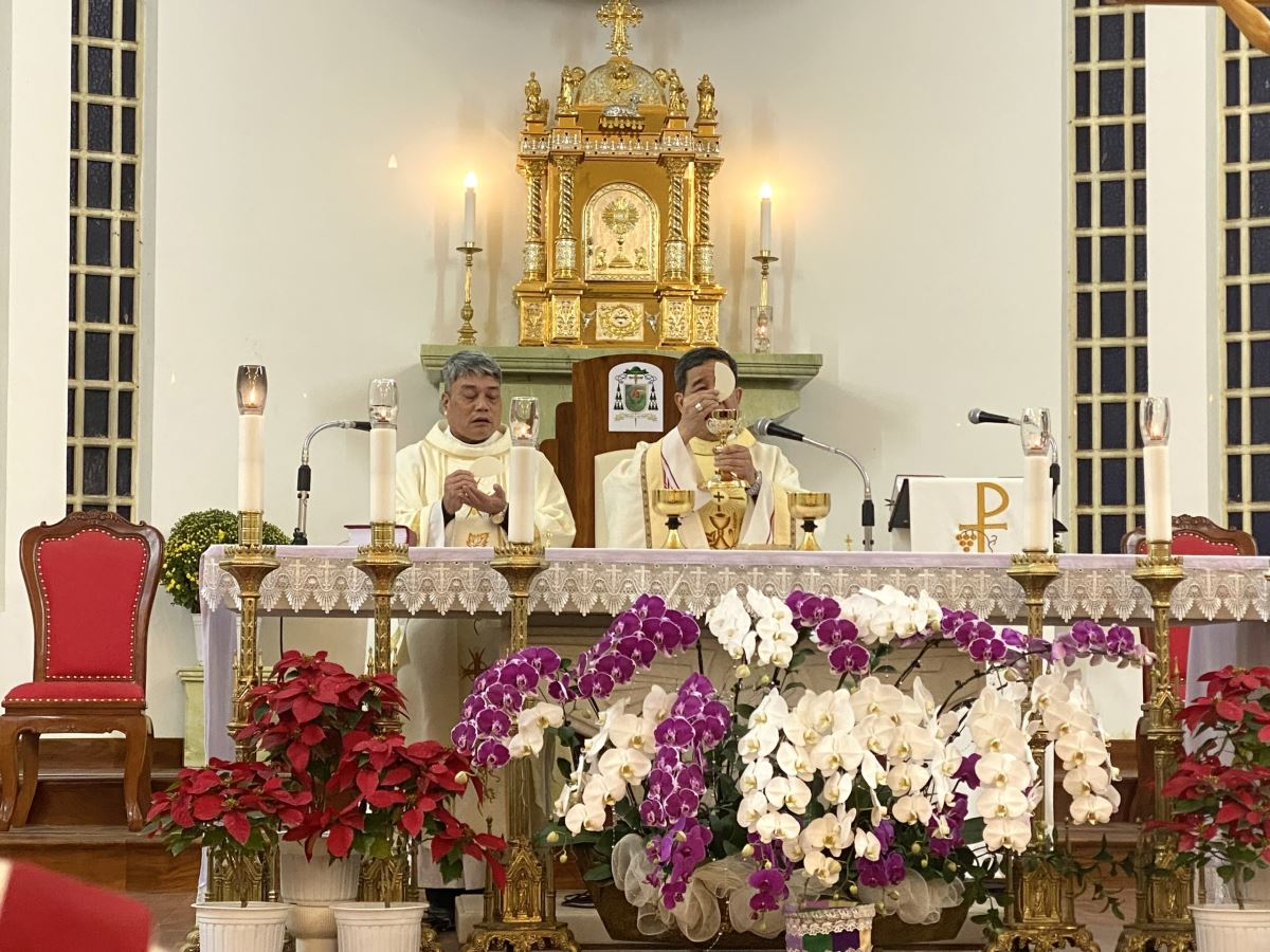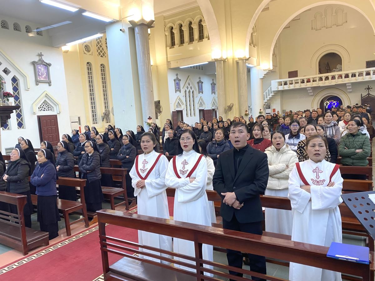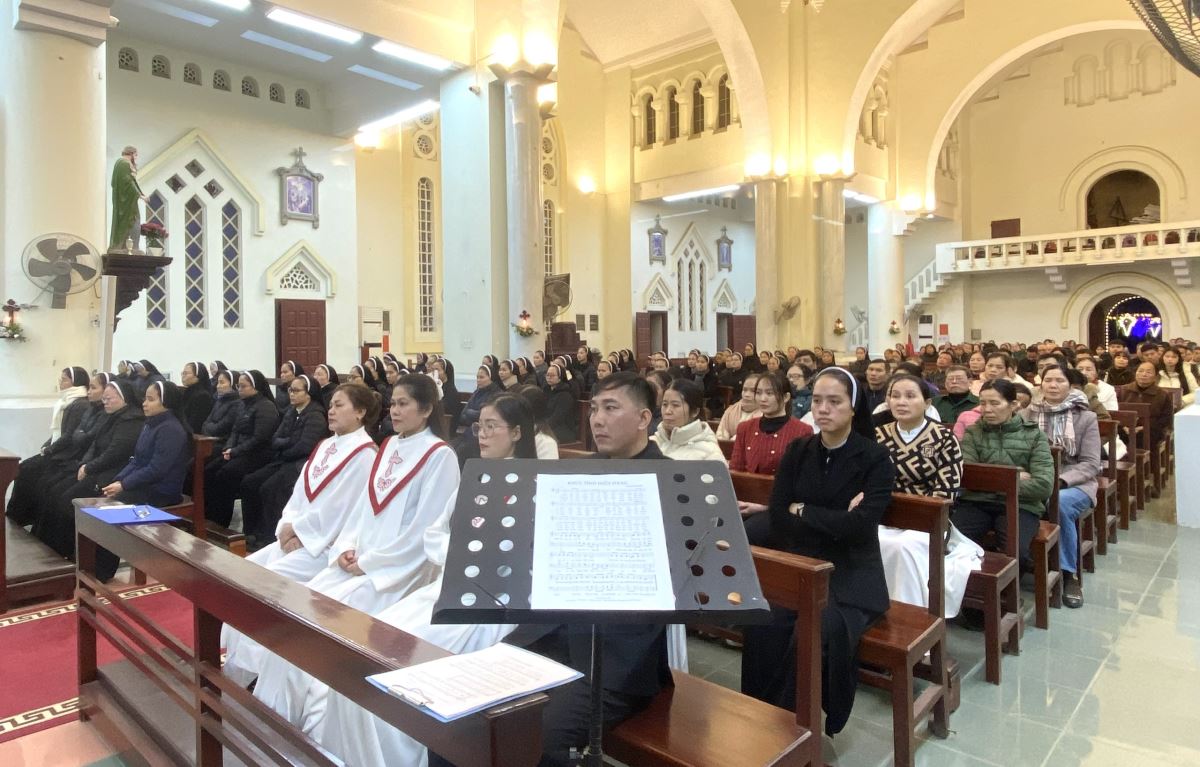 Thánh lễ do Đức cha Đaminh Hoàng Minh Tiến – Giám mục Giáo phận chủ sự. Đồng tế với ngài có cha xứ Giáo xứ Chính tòa Giuse Nguyễn Đình Tuyến. Hiệp dâng Thánh lễ có quý thầy, quý dì và đông đảo cộng đoàn dân Chúa trong giáo xứ.