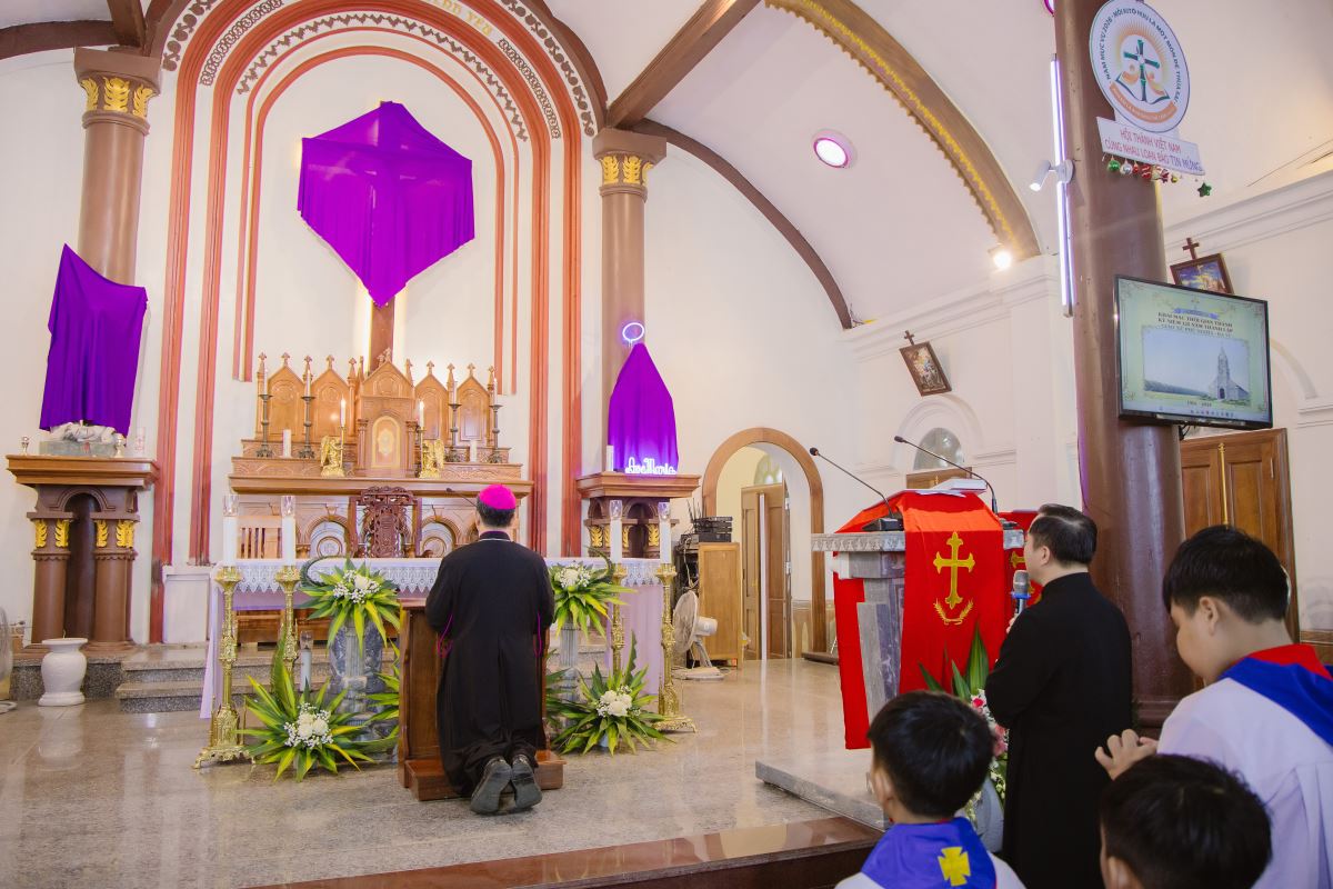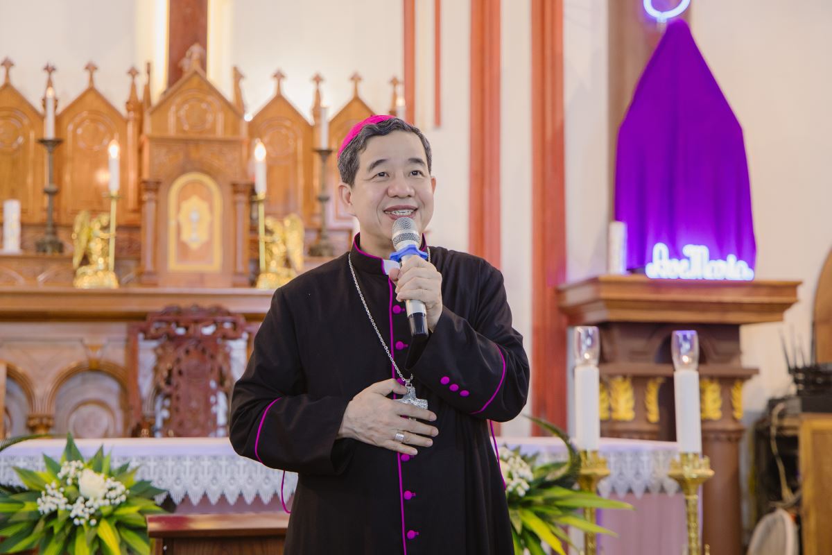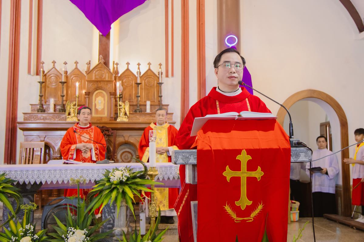Trong bài giảng, Đức Cha Đaminh đã mời gọi cộng đoàn chiêm ngắm mầu nhiệm Thập Giá qua hành trình thương khó của Chúa Giêsu. Ngài nhấn mạnh rằng: bước vào Tuần Thánh không chỉ là tham dự các nghi thức phụng vụ, nhưng còn là hành trình nội tâm, mời gọi mỗi người hoán cải, từ bỏ tội lỗi và sống yêu thương cách cụ thể hơn. Đặc biệt, trong bối cảnh giáo xứ đang sống Thời Gian Thánh, Đức Cha khích lệ mọi thành phần dân Chúa biết tận dụng thời gian hồng ân này để canh tân đời sống đức tin, siêng năng lãnh nhận các bí tích và thực thi bác ái.