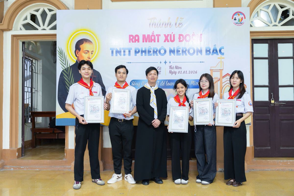 WGPHH – Trong bầu khí hân hoan của ngày đầu năm mới dương lịch 2026 và niềm vui mừng kính lễ Đức Maria – Mẹ Thiên Chúa, Xứ đoàn Thiếu Nhi Thánh Thể (TNTT) Phêrô Nêrôn Bắc, Giáo xứ Phú Cát đã chính thức được ghi danh vào hàng ngũ Phong trào TNTT của Giáo phận Hưng Hóa.