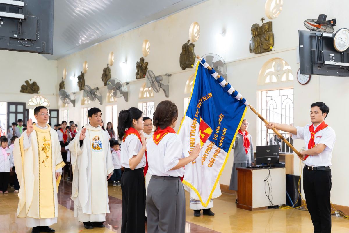 Thánh lễ ra mắt Xứ đoàn TNTT Phêrô Nêrôn Bắc khép lại trong niềm hân hoan, tạ ơn và hy vọng. Đây không chỉ là dấu mốc quan trọng trong đời sống sinh hoạt của Giáo xứ Phú Cát, mà còn mở ra một chặng đường mới cho các em thiếu nhi trên hành trình trưởng thành về nhân bản và đức tin.