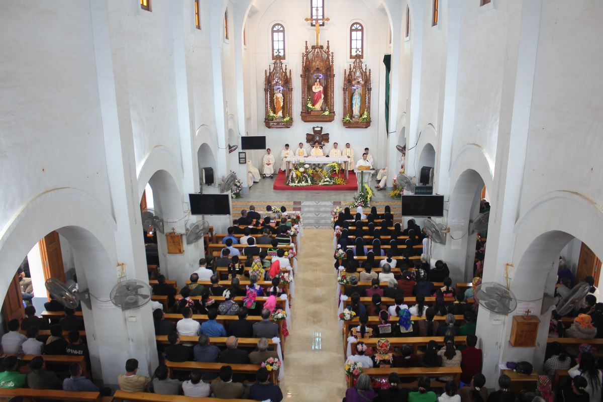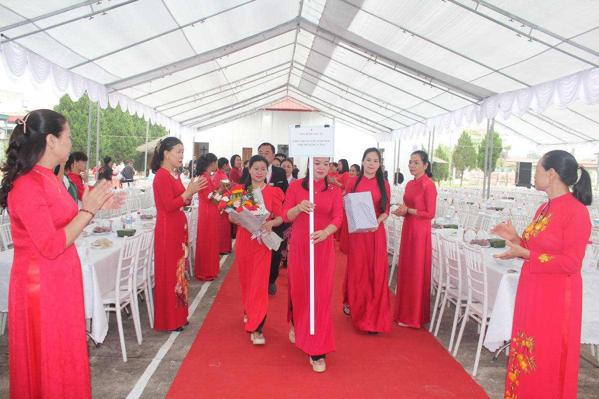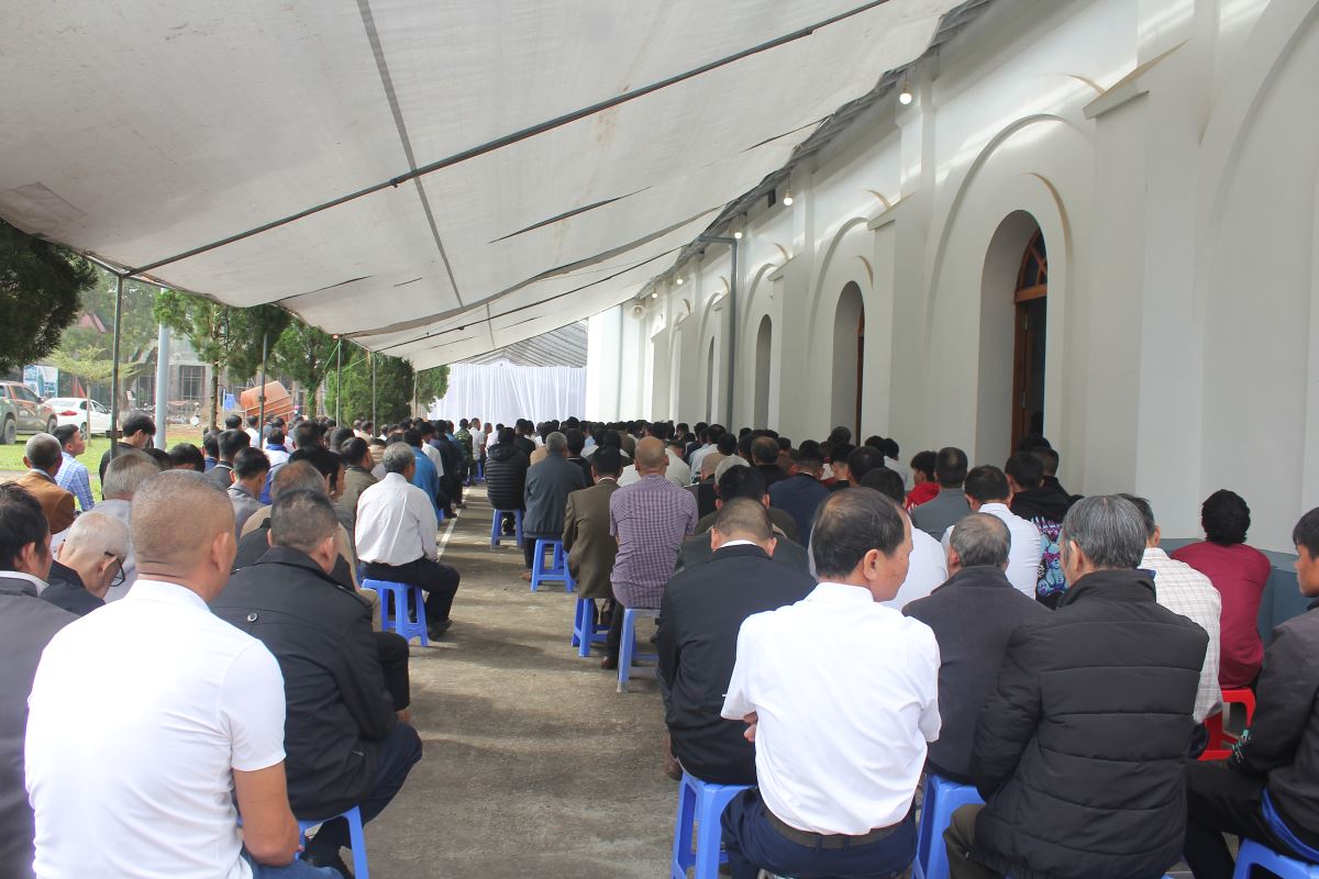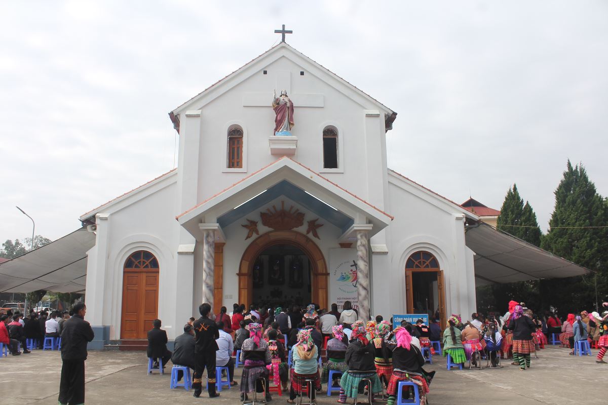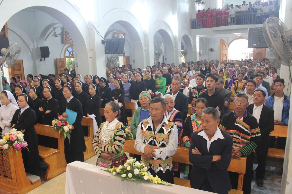 Ngay từ sáng sớm ngày 14/11/2025, khắp khuôn viên nhà thờ và giáo xứ đã rộn ràng tiếng cười nói. Ban tiếp tân trong trang phục áo dài truyền thống màu đỏ, cùng với ban âm thanh, ánh sáng, đội trống, ban nhạc và người dẫn chương trình đã hân hoan đón tiếp các đoàn đại diện từ các giáo xứ, giáo họ, giáo điểm của anh chị em người Kinh và người H’Mông trong giáo hạt Nghĩa Lộ. Ngoài ra, còn có các đoàn đến từ những vùng xa như Sơn La, Phú Thọ, giáo hạt Yên Bái, cùng đại diện các cấp chính quyền địa phương đến chung vui và chúc mừng.