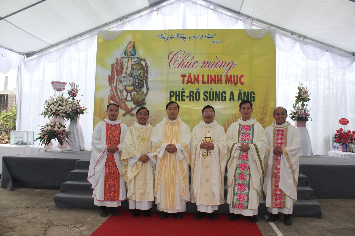 Cao điểm của ngày hồng phúc là Thánh lễ tạ ơn diễn ra lúc 9g00. Trước khi bước vào Thánh lễ, đoàn rước gồm quý cha đồng tế, quý thân nhân, ân nhân của cha mới trong trang phục truyền thống của người H’mông tiến vào thánh đường trong tiếng hát vang bài “Từ ngàn xưa...”. Thánh lễ do cha mới Phêrô Sùng A Ăng chủ tế, với sự đồng tế của hơn 40 linh mục, cùng quý thầy, quý dì, quý khách và đông đảo anh chị em đồng bào người Kinh và H’mông. Nhà thờ chật kín người; gần một nửa cộng đoàn phải tham dự từ bên ngoài, nhưng bầu khí sốt sắng và niềm vui tràn ngập vẫn lan tỏa khắp không gian.