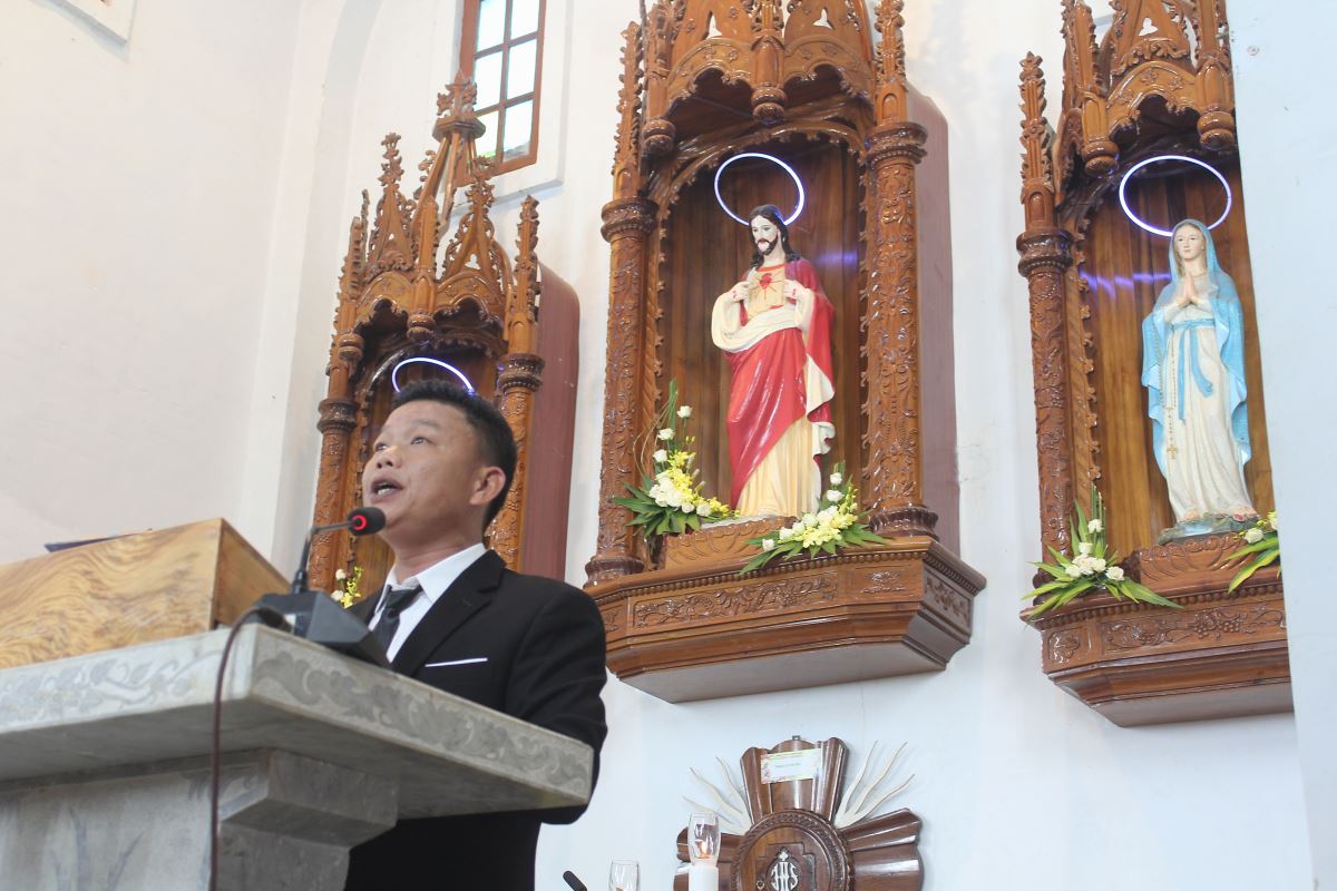 Trong phần giảng lễ, cha Micae Lê Văn Hồng đã chúc mừng gia đình ông bà cố cha Phêrô và chúc mừng Giáo xứ Vĩnh Quang nhân dịp kỷ niệm 116 năm hình thành và phát triển (1909-2025). Cha cũng nhấn mạnh rằng việc giáo xứ sinh ra một linh mục, đặc biệt là một tân linh mục người H'mông, là một hồng ân cao cả mà Chúa đã ban tặng cho cộng đoàn. Qua bài chia sẻ, cha đã giúp cộng đoàn hiểu sâu sắc hơn về cuộc đời của một linh mục, với những vui buồn, sướng khổ, gian nan vất vả và những lúc cô đơn trên con đường sứ vụ mục tử dài lâu.