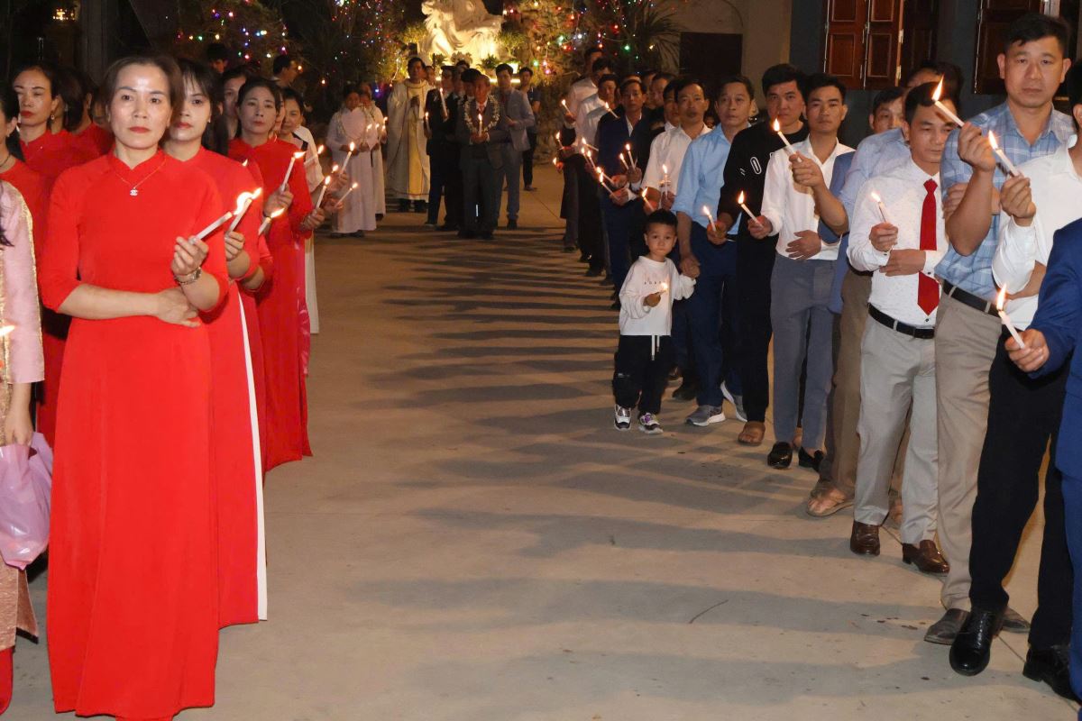 Thánh lễ được bắt đầu bằng đoàn rước trang trọng tiến vào nhà thờ. Các đôi hôn phối mừng Ngọc Khánh sánh bước giữa đại gia đình con cháu; trong đó có hai đôi ông bà cố. Đó không chỉ là một ơn huệ, mà còn là sự kết tinh từ những hy sinh thầm lặng và lòng đạo đức kiên vững mà các ông bà đã bền bỉ vun trồng trong gia đình hơn suốt 60 năm qua. Hình ảnh nhiều thế hệ cùng hiện diện trước bàn thờ Chúa đã dệt nên một bài ca tạ ơn sống động, nói lên hoa trái rạng ngời của những mái ấm gia đình kiên trung trong đức tin.