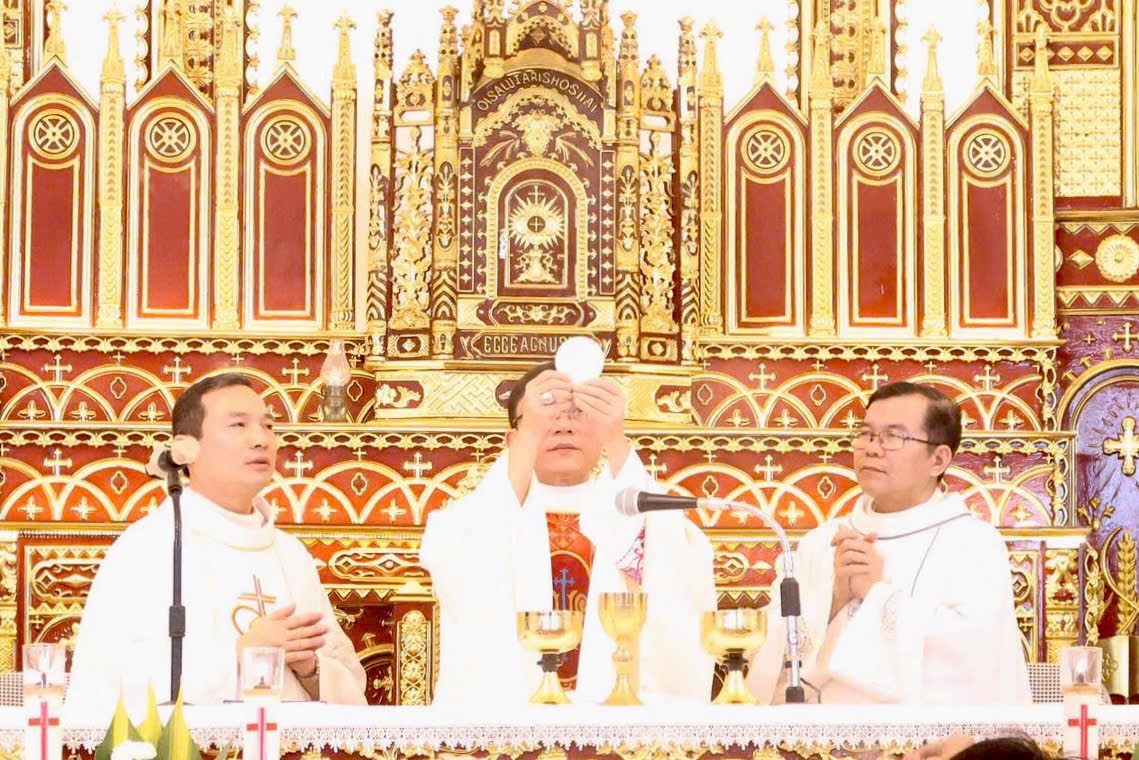 Thánh lễ do Đức Cha Phaolô Nguyễn Quang Đĩnh, Giám mục Phụ tá Giáo phận Hưng Hóa chủ sự. Đồng tế với ngài có quý Cha quê hương, quý Cha khách; cùng sự hiện diện của quý Dì và đông đảo cộng đoàn dân Chúa trong và ngoài giáo xứ Thủy Trạm. Dù Thánh lễ được cử hành vào buổi tối, nhưng ngay từ rất sớm, cộng đoàn đã quy tụ đông đảo trong niềm hân hoan và xúc động.
