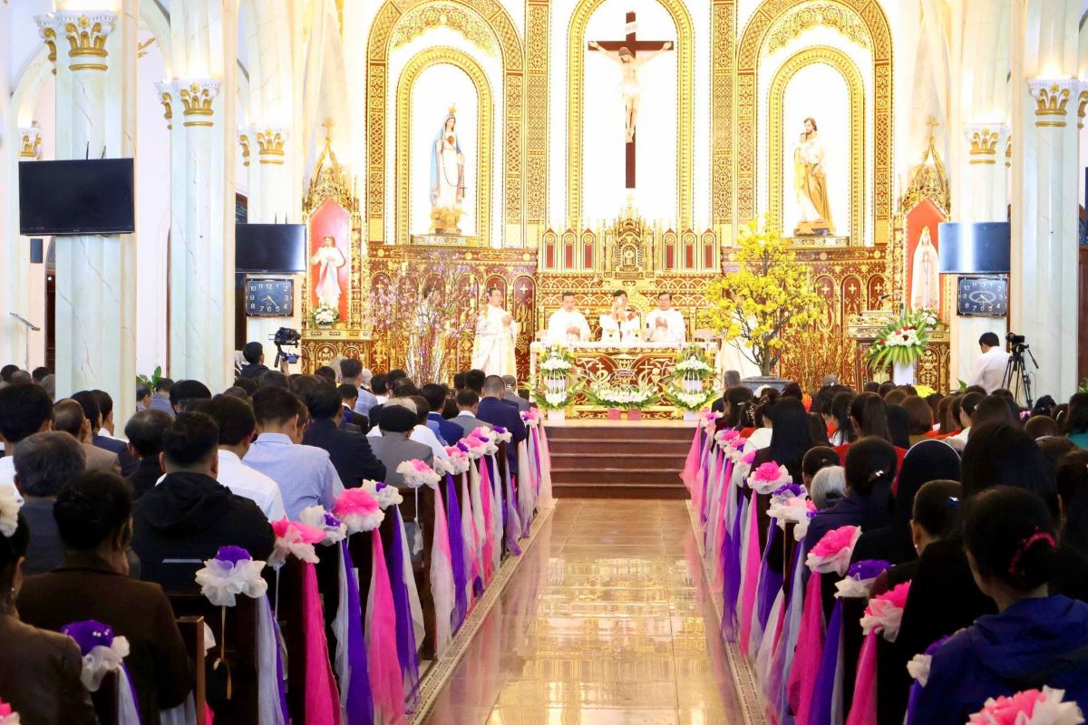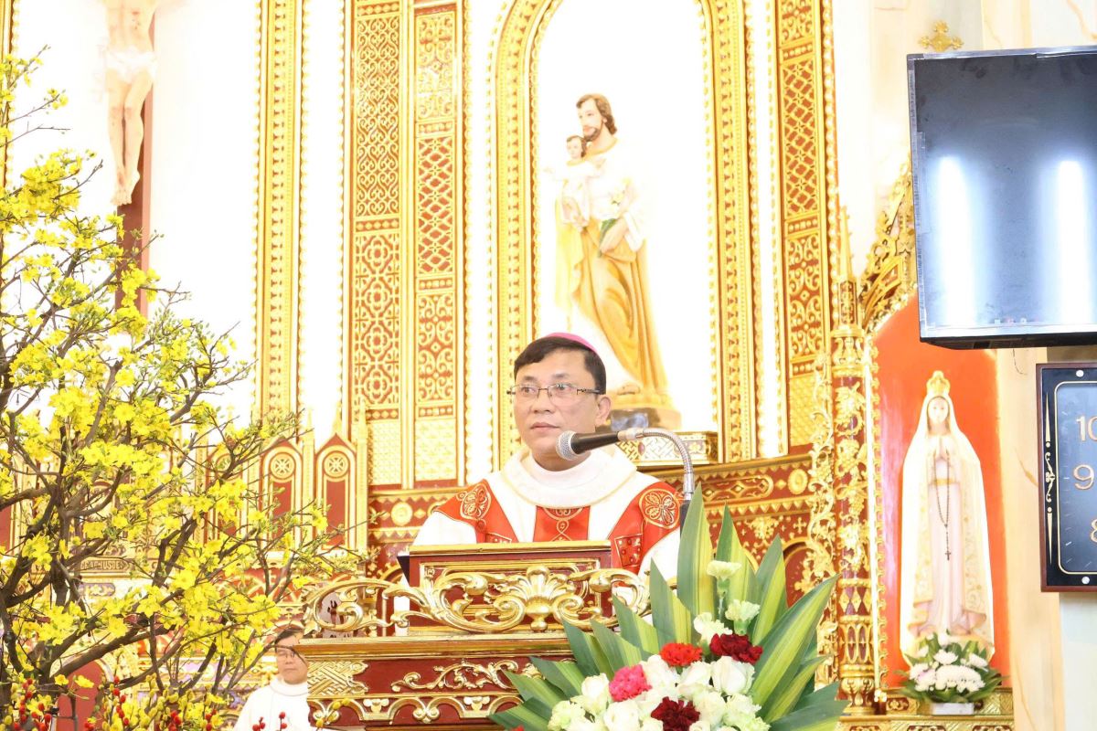 Mở đầu Thánh lễ, Đức Cha Phaolô đã gửi lời chúc mừng đến bốn đôi ông bà mừng Ngọc Khánh Hôn Phối, đồng thời mời gọi toàn thể cộng đoàn hiệp ý tạ ơn Thiên Chúa vì muôn ơn lành Ngài đã tuôn đổ trên hành trình 60 năm hôn nhân của các cụ, và cầu xin cho tình yêu ấy mãi là ngọn lửa sưởi ấm gia đình và cộng đoàn giáo xứ.