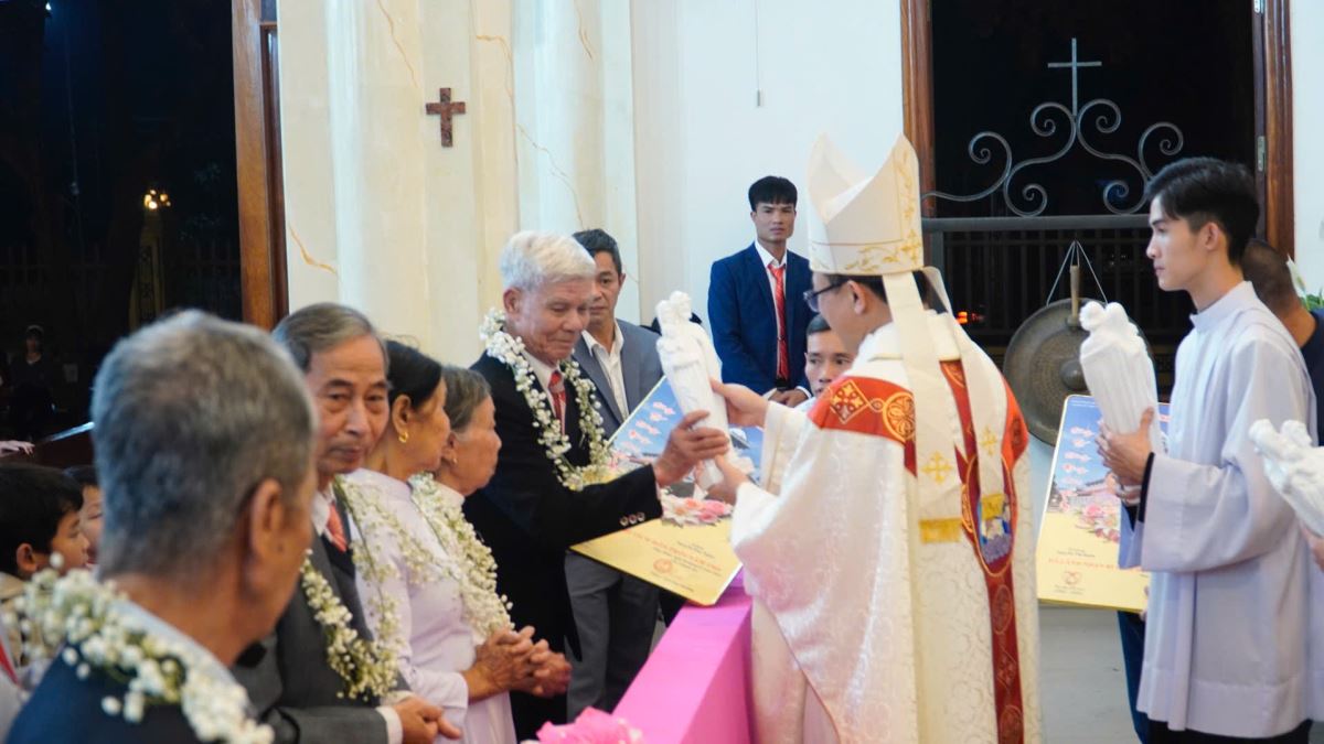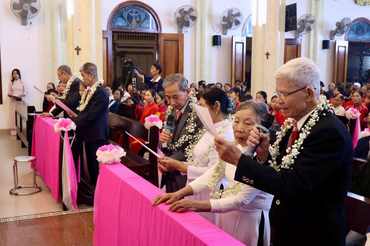 Một sự lắng đọng trong Thánh lễ là nghi thức lặp lại lời cam kết hôn phối. Trước bàn thờ Chúa, các đôi hôn phối đã cùng nhau nhắc lại lời thề hứa từ thuở thanh xuân: “Giữ lòng chung thủy khi thịnh vượng cũng như lúc gian nan, khi mạnh khỏe cũng như lúc đau yếu.” Sáu mươi năm trung tín của quý cụ trở thành một lời chứng sống động cho thấy: với ơn Chúa nâng đỡ, con người có thể giữ trọn giao ước tình yêu đến trọn đời. Đó không chỉ là nghĩa tình phu thê, mà còn là sự trung thành với giao ước đã được thiết lập trước mặt Thiên Chúa.