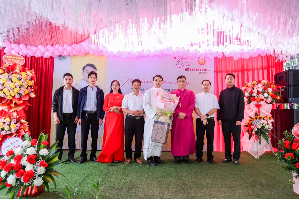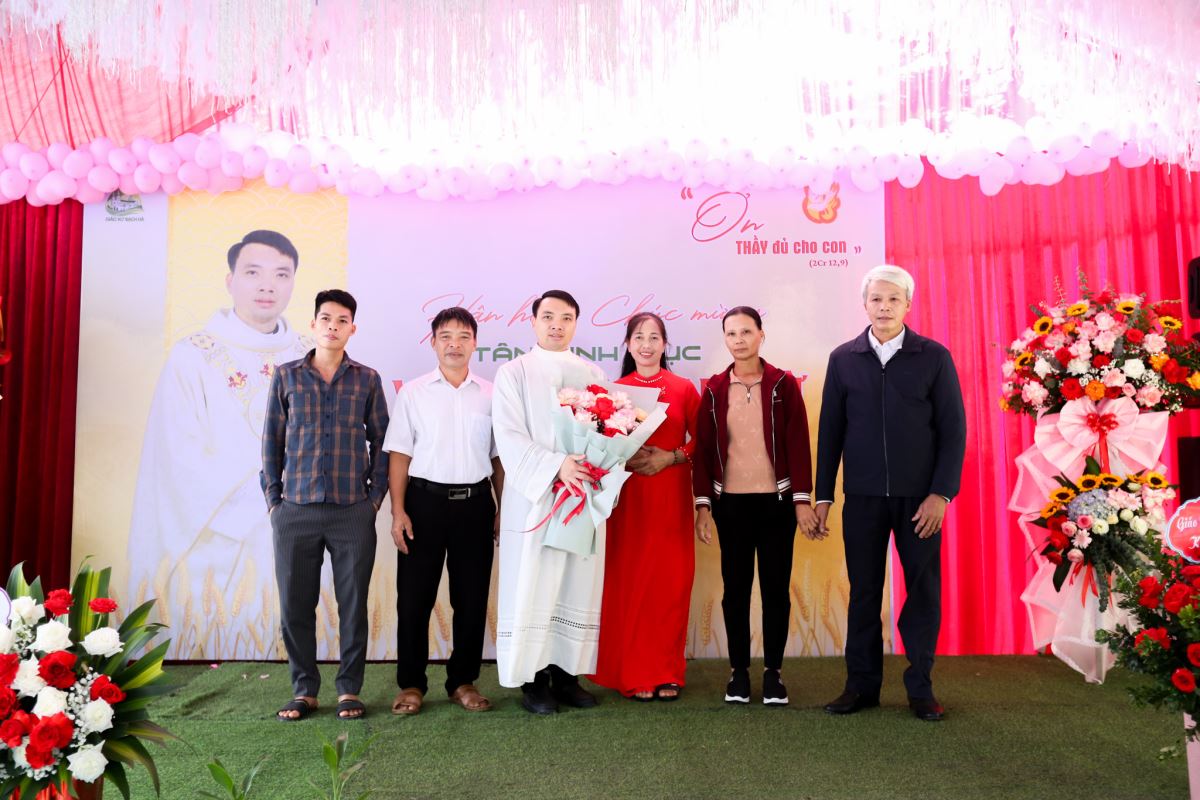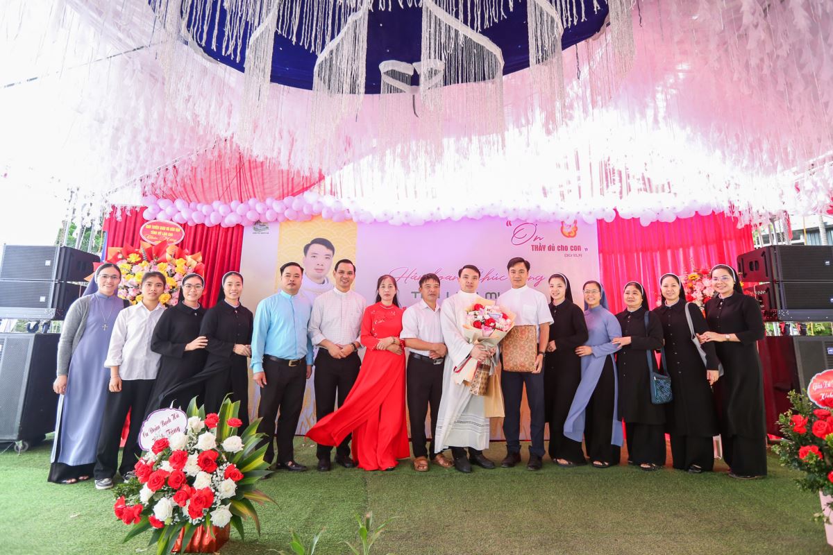 Trước Thánh lễ, vào lúc 7 giờ 30 phút, tại khuôn viên giáo xứ, quý thân nhân, bạn hữu và cộng đoàn đã chúc mừng Tân Linh mục bằng những lẵng hoa và lời cầu chúc thân tình.