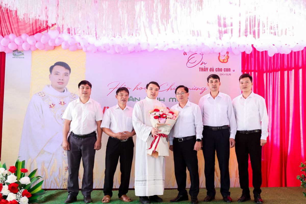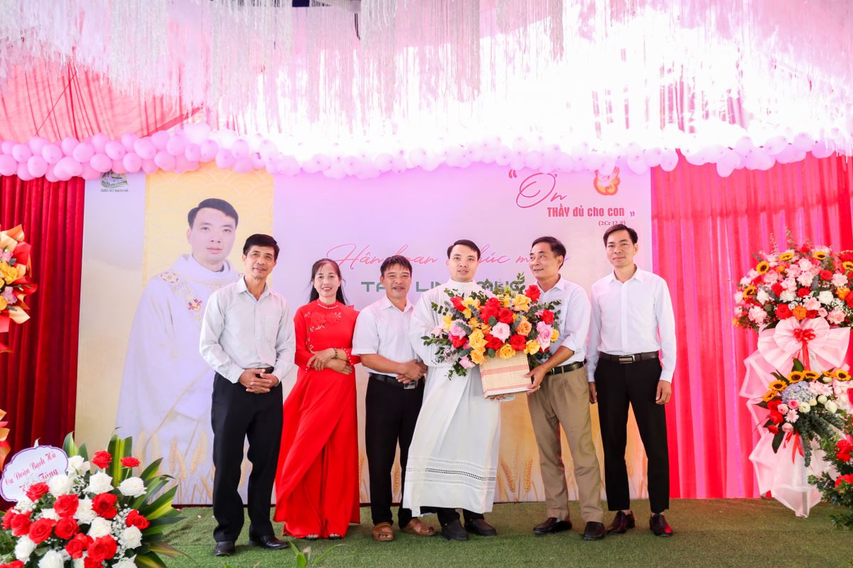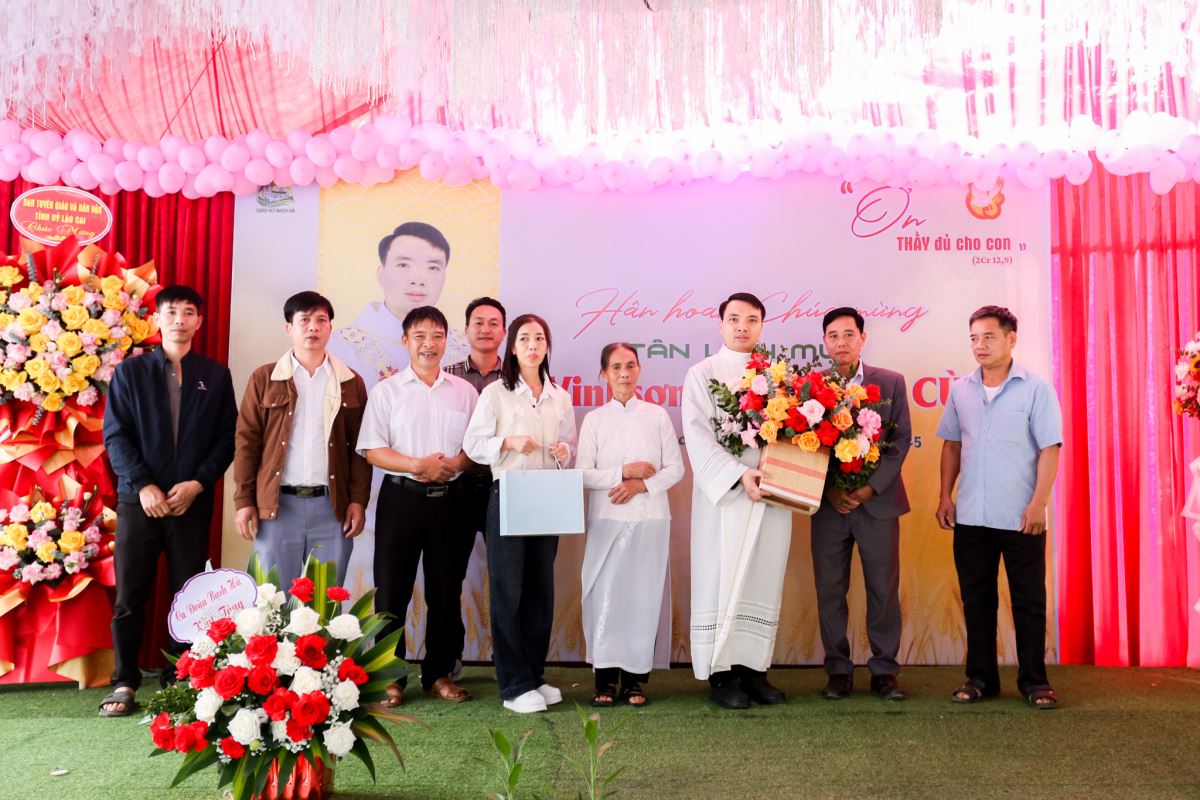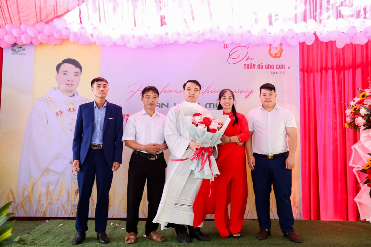 Trước Thánh lễ, vào lúc 7 giờ 30 phút, tại khuôn viên giáo xứ, quý thân nhân, bạn hữu và cộng đoàn đã chúc mừng Tân Linh mục bằng những lẵng hoa và lời cầu chúc thân tình.