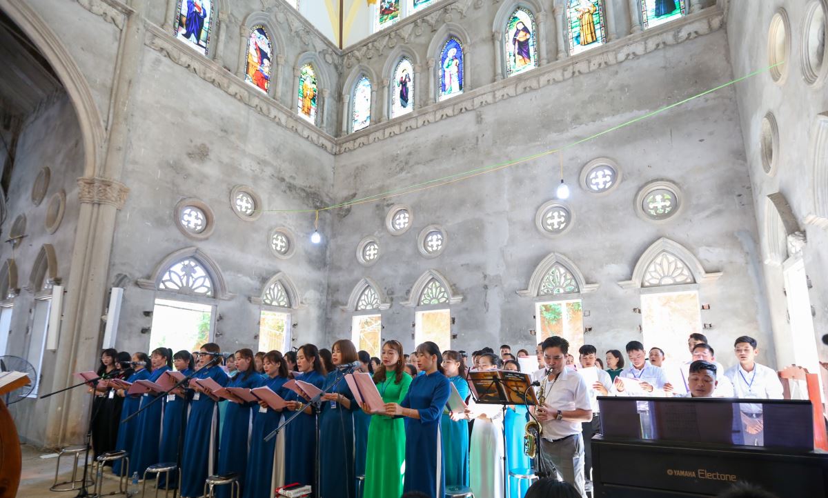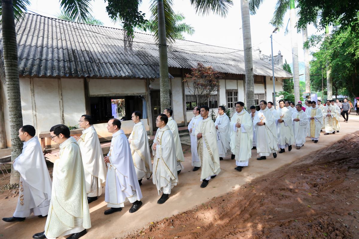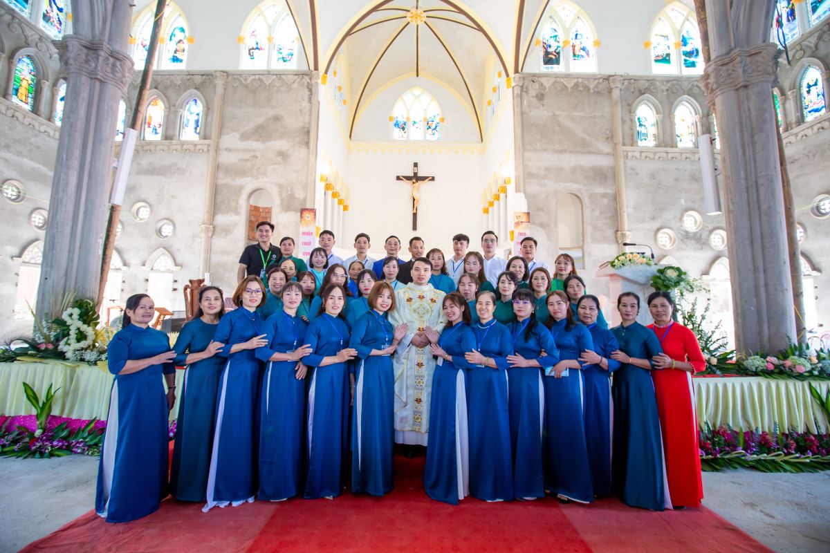 Thánh lễ tạ ơn được cử hành lúc 9 giờ với cha Vinhsơn chủ tế, cùng sự hiện diện trân quý của Đức cha phụ tá Phaolô, cha quản hạt, quý cha trong và ngoài giáo phận, thầy phó tế, quý thầy, quý dì, quý ân nhân và đông đảo cộng đoàn dân Chúa trong và ngoài giáo xứ.