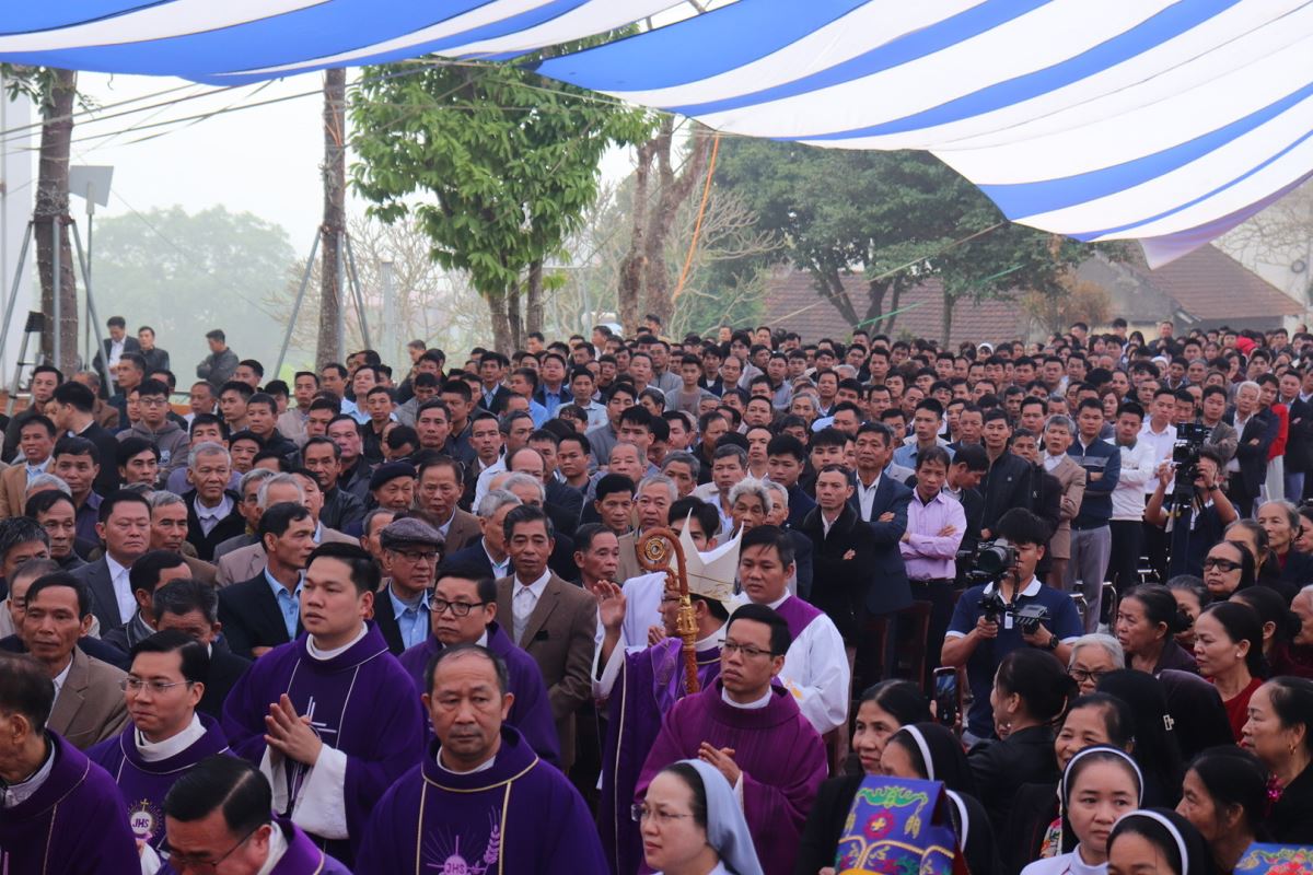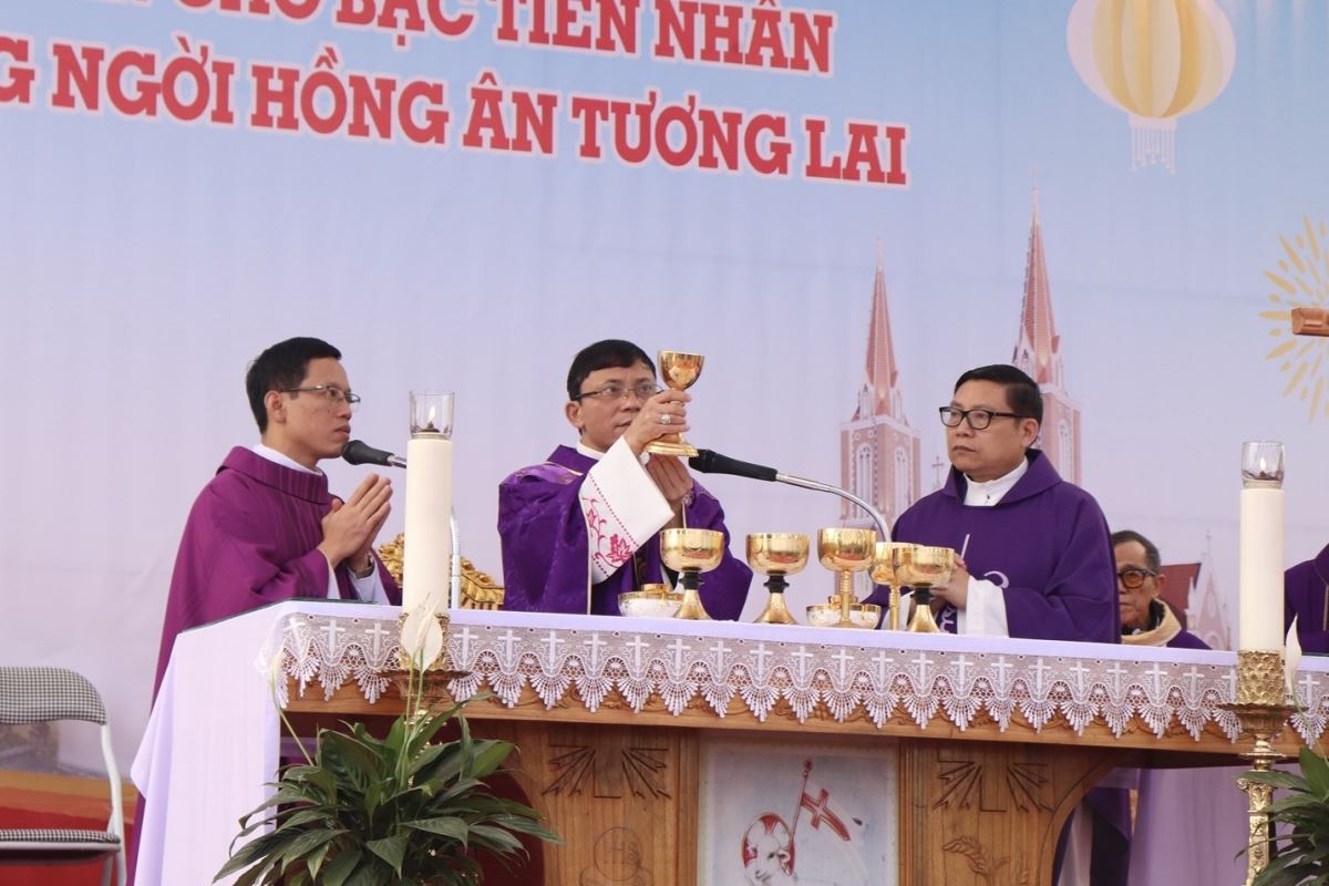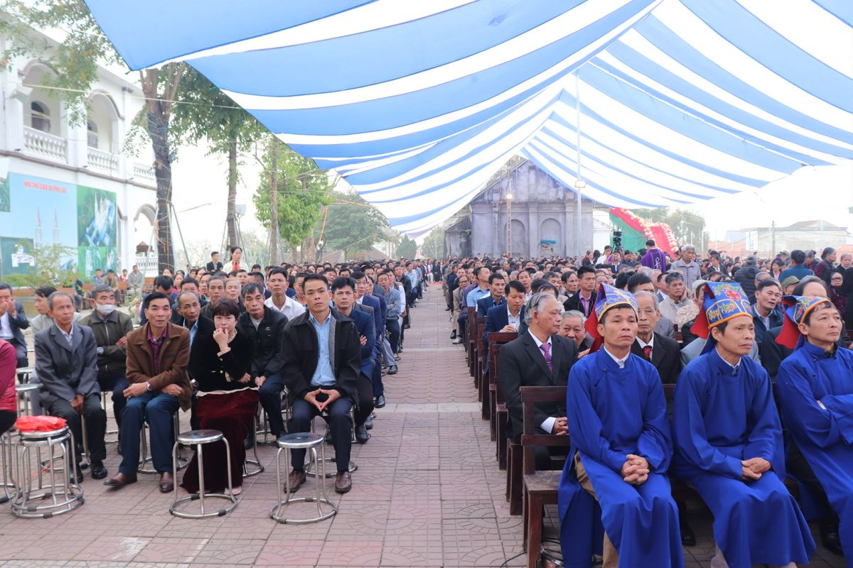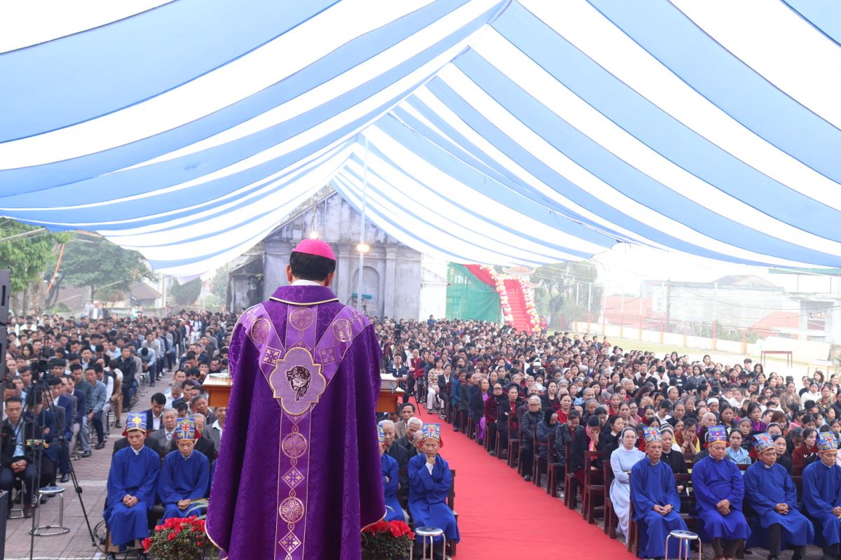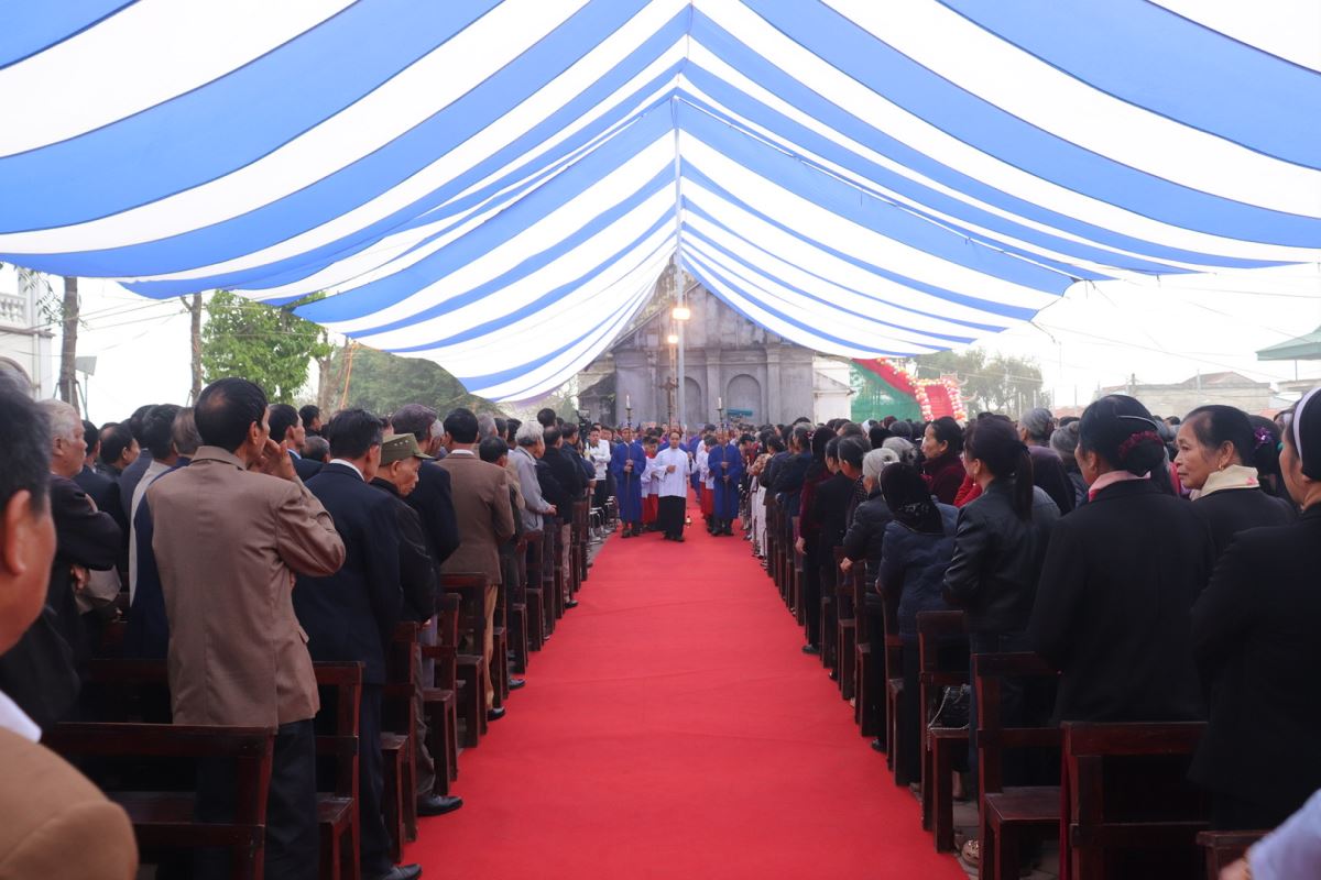 Mở đầu Thánh lễ, Đức cha đã thay lời cho cộng đoàn dâng lời tạ ơn Thiên Chúa và bày lòng tri ân sâu sắc đối với các bậc tiền nhân. Các ngài đã để lại cho thế hệ hậu sinh một di sản đức tin sống động và một công trình vĩ đại là ngôi thánh đường đã tồn tại hơn một thế kỷ. Trải qua thăng trầm của thời gian và nhiều lần trùng tu, đến nay ngôi thánh đường ấy đã hoàn thành xuất sắc sứ mạng lịch sử của mình.