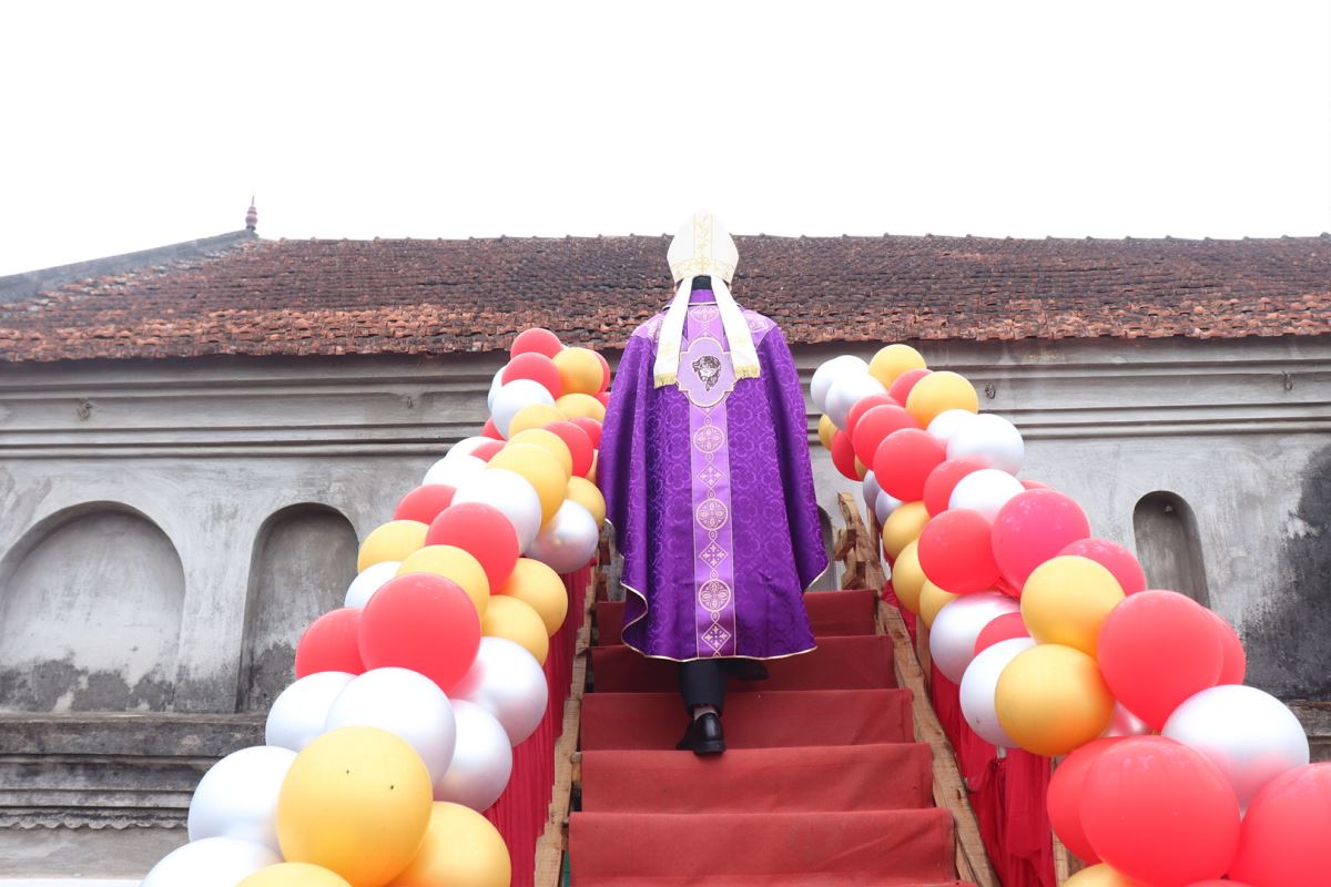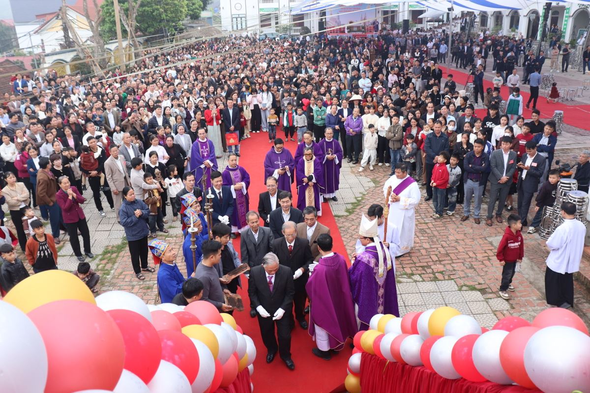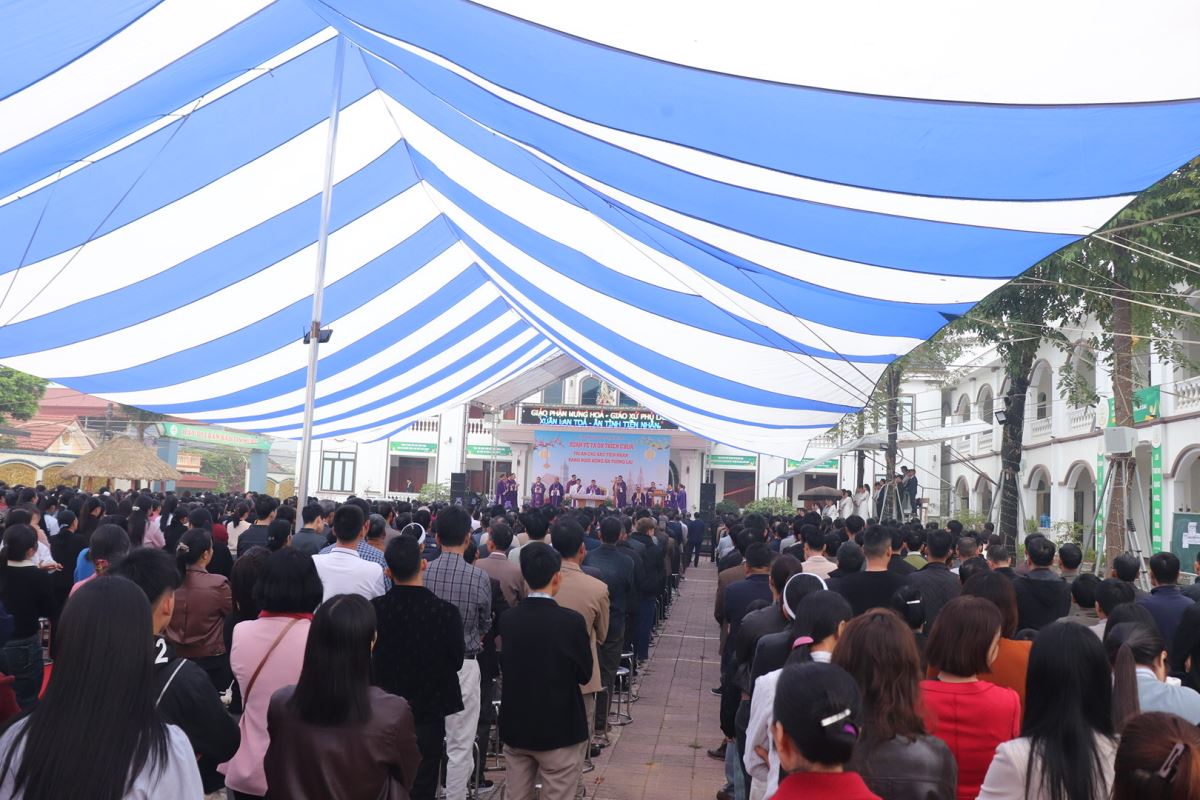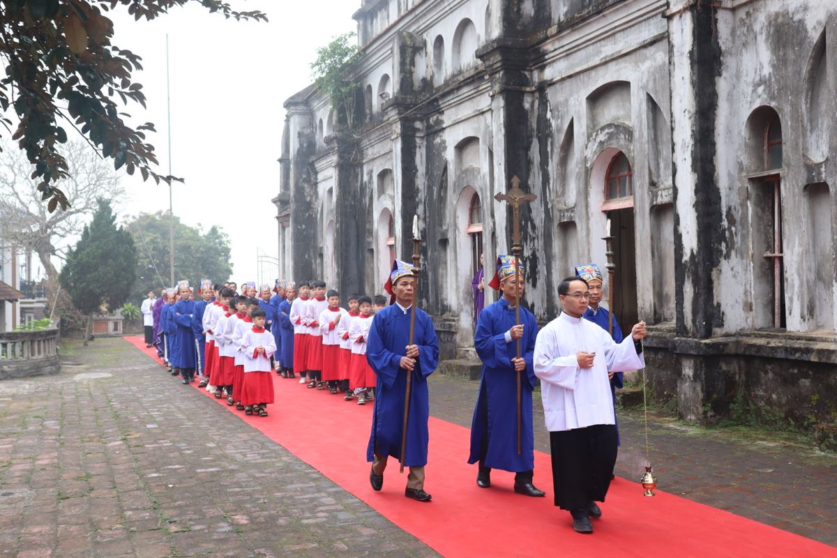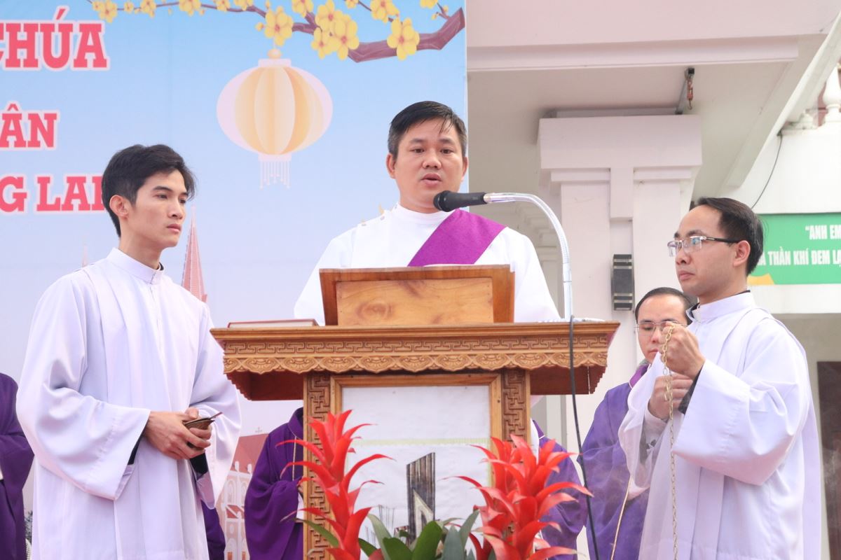 Mở đầu Thánh lễ, Đức cha đã thay lời cho cộng đoàn dâng lời tạ ơn Thiên Chúa và bày lòng tri ân sâu sắc đối với các bậc tiền nhân. Các ngài đã để lại cho thế hệ hậu sinh một di sản đức tin sống động và một công trình vĩ đại là ngôi thánh đường đã tồn tại hơn một thế kỷ. Trải qua thăng trầm của thời gian và nhiều lần trùng tu, đến nay ngôi thánh đường ấy đã hoàn thành xuất sắc sứ mạng lịch sử của mình.