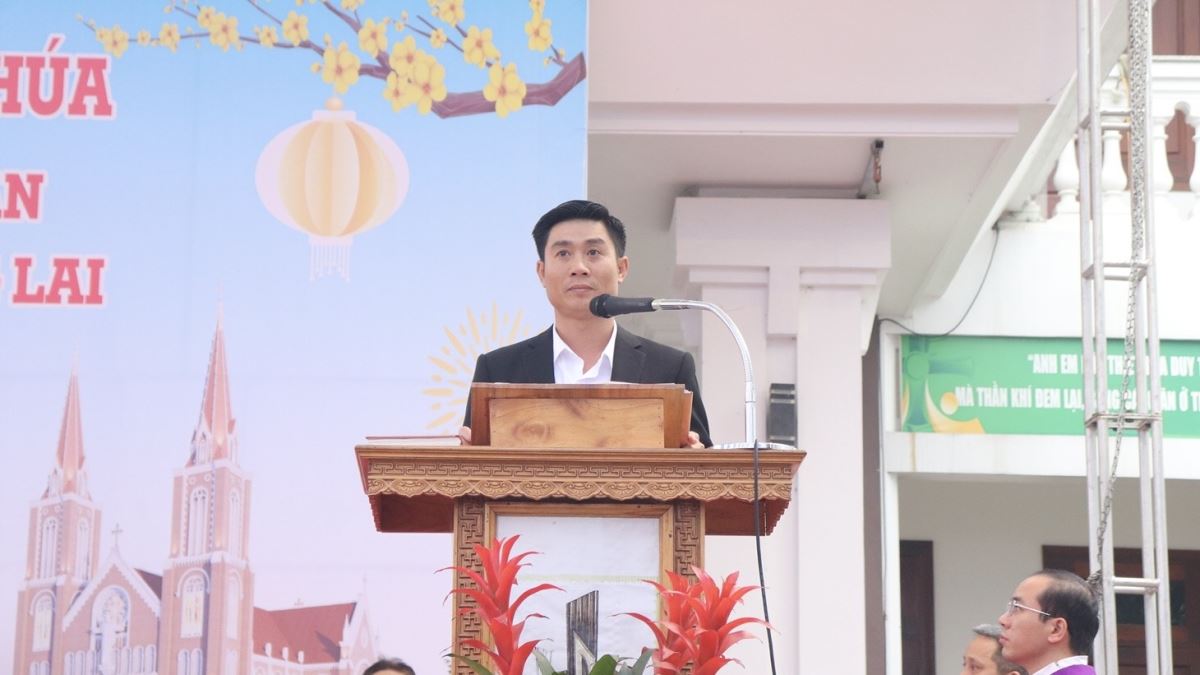 Sau lời nguyện hiệp lễ, ông Phaolô Nguyễn Văn Phú – Chủ tịch Hội đồng Giáo xứ đã đại diện cho cộng đoàn bày tỏ lòng tri ân Đức cha, quý cha và quý khách đã hiệp thông trong Thánh lễ, đặc biệt là trong hành trình xây dựng ngôi thánh đường mới sắp tới.