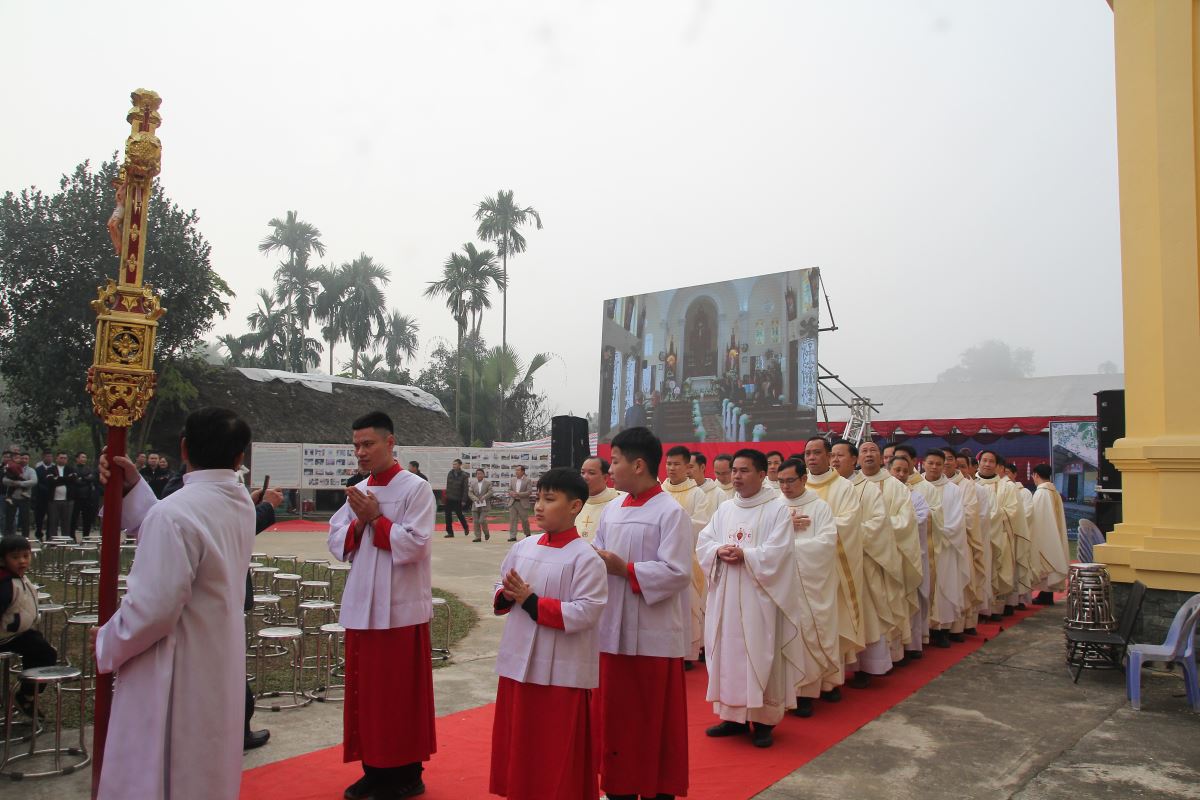 Đồng tế với Đức Cha có 34 linh mục trong và ngoài giáo hạt Yên Bái, cùng sự hiện diện của quý thầy, quý dì, khoảng 1.000 giáo dân và quý khách mời. Tất cả hiệp thông trong niềm vui và tâm tình tạ ơn Thiên Chúa của giáo họ trong ngày trọng đại này.