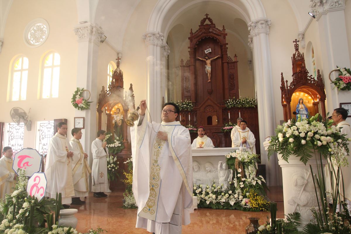 Cha Giuse Nguyễn Văn Tuyến xông hương đoàn đồng tế, tường nhà thờ và cộng đoàn |