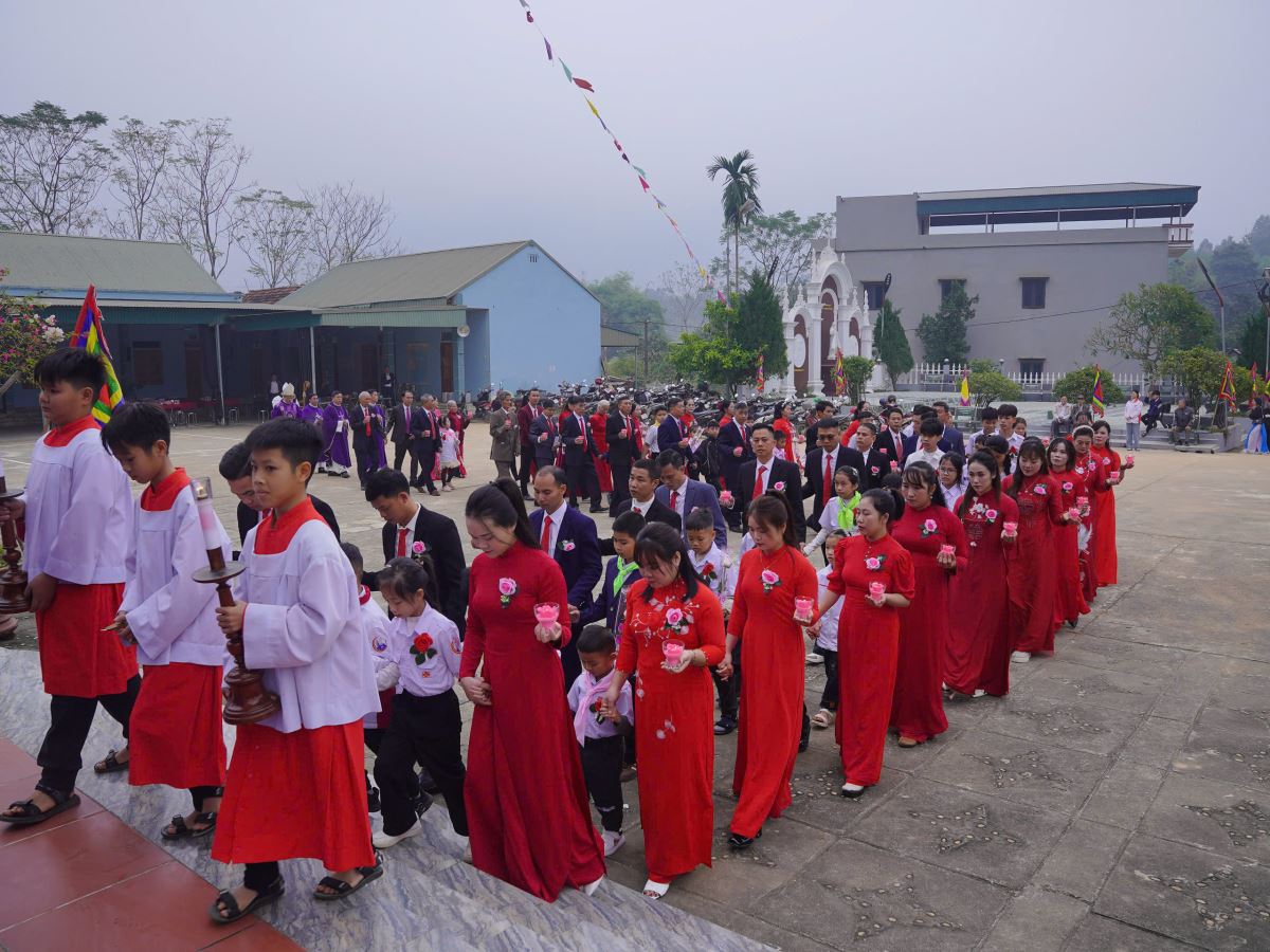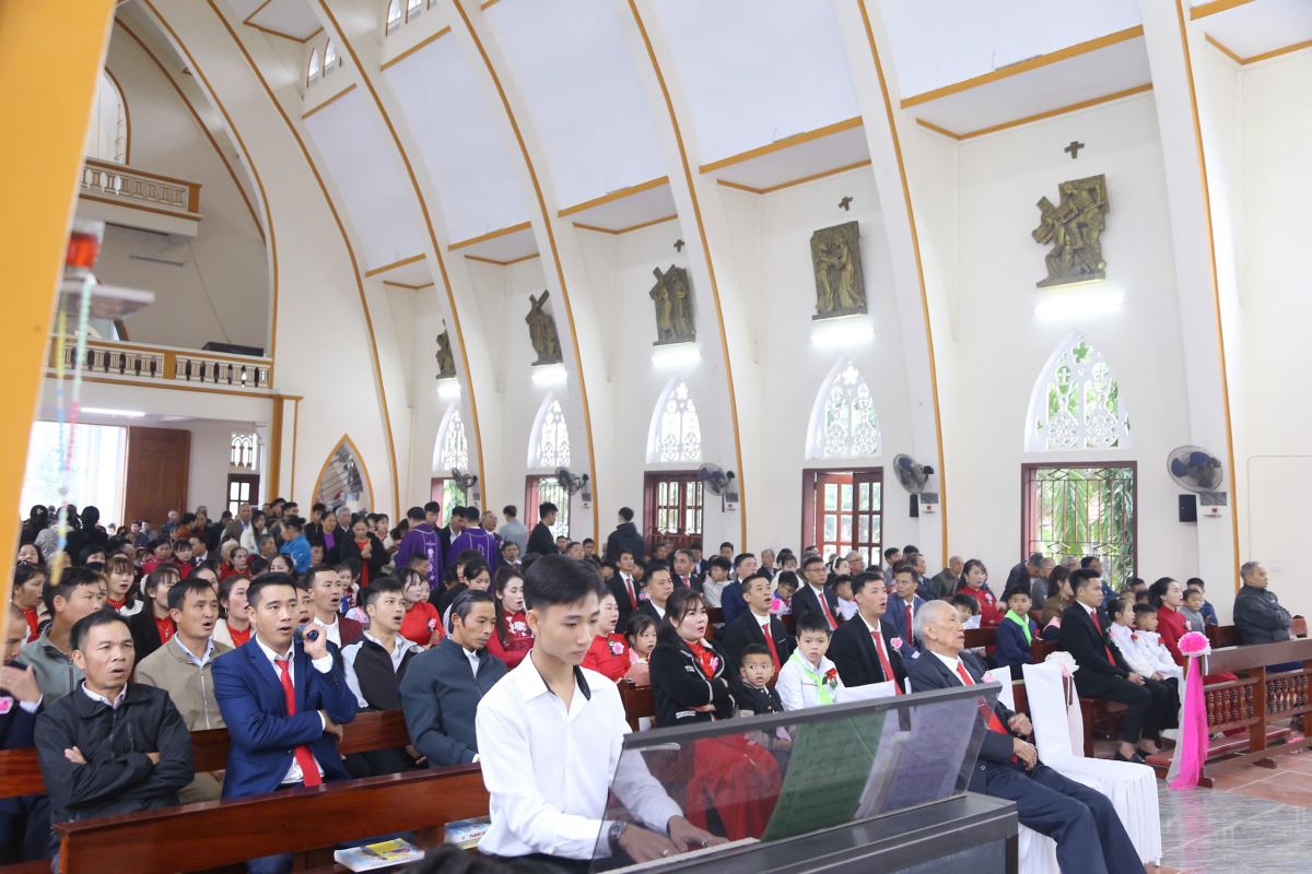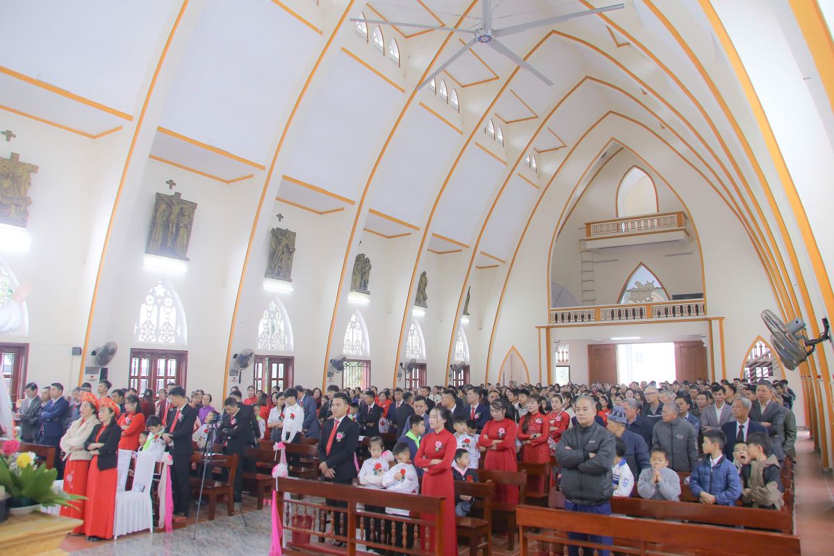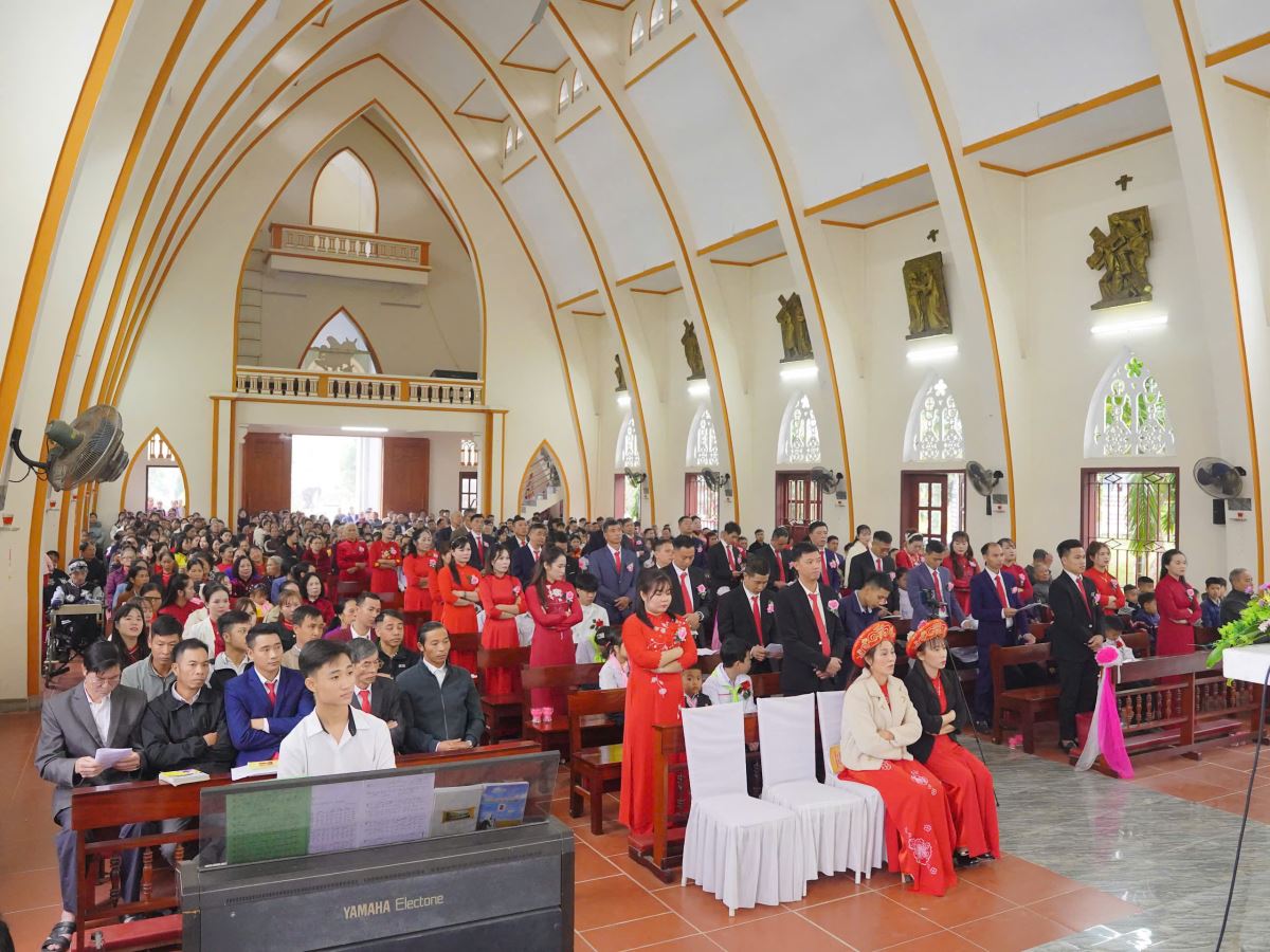 Ngay từ sớm, khuôn viên nhà thờ đã nhộn nhịp với sự hiện diện đông đảo của cộng đoàn dân Chúa, cách riêng là các đôi hôn nhân cùng con cháu, thân nhân, bạn hữu quy tụ về tham dự Thánh lễ đặc biệt này. Các đôi hôn nhân tham dự có thời gian chung sống khác nhau, từ
