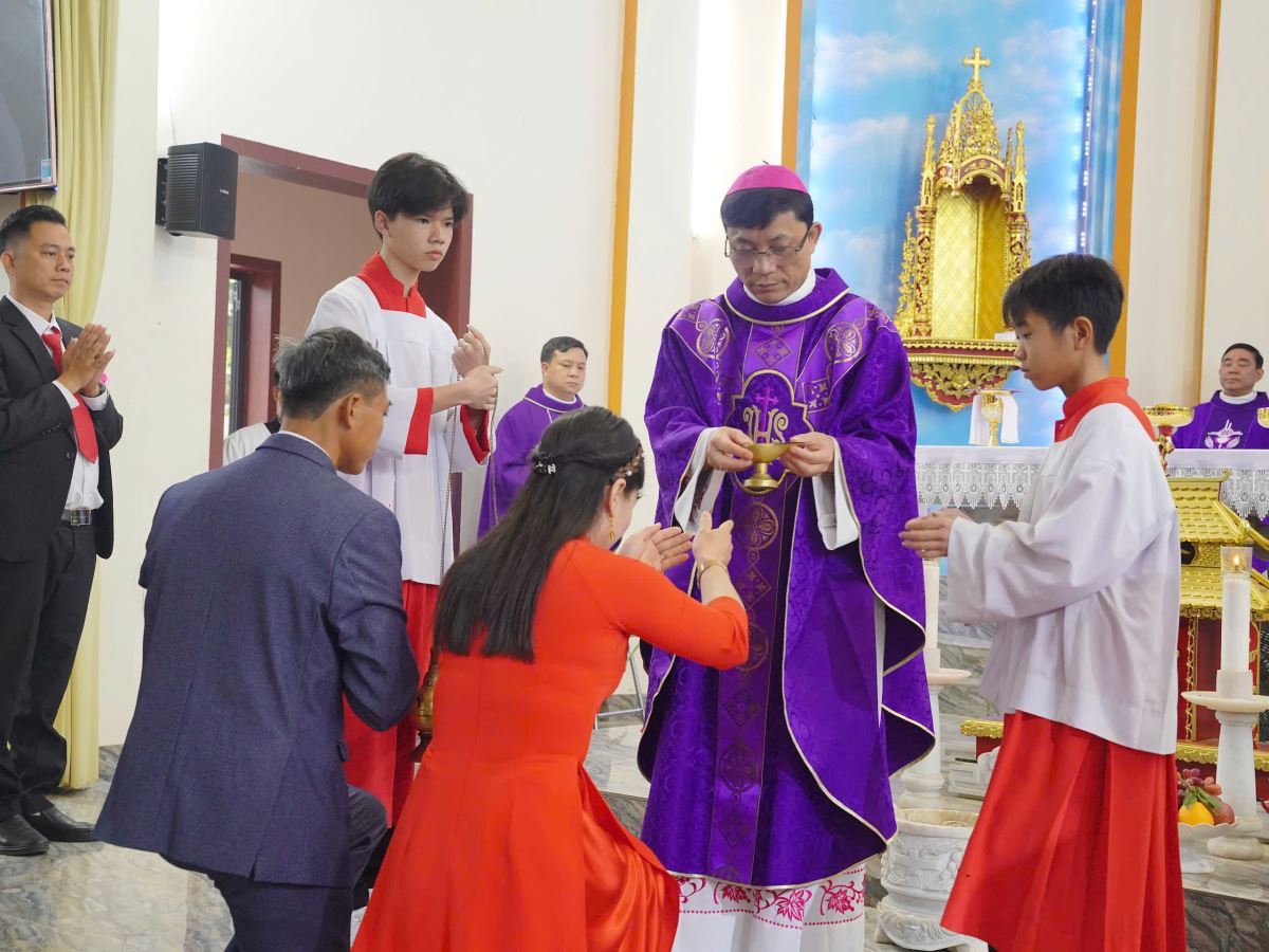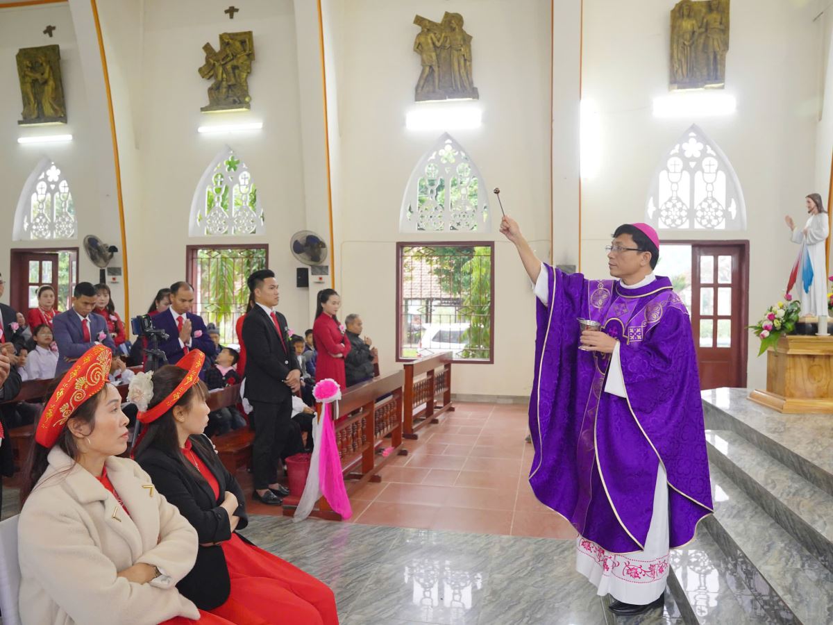 Trong bài giảng, Đức cha nhấn mạnh đến ý nghĩa cao quý của Bí tích Hôn nhân, một giao ước thánh thiêng được chính Thiên Chúa chúc phúc. Ngài mời gọi các đôi vợ chồng luôn trung tín với lời cam kết ban đầu, biết cùng nhau gìn giữ ngọn lửa yêu thương, vượt qua thử thách, để mỗi gia đình thực sự trở thành dấu chỉ sống động của tình yêu và lòng thương xót Thiên Chúa giữa đời sống thường ngày.