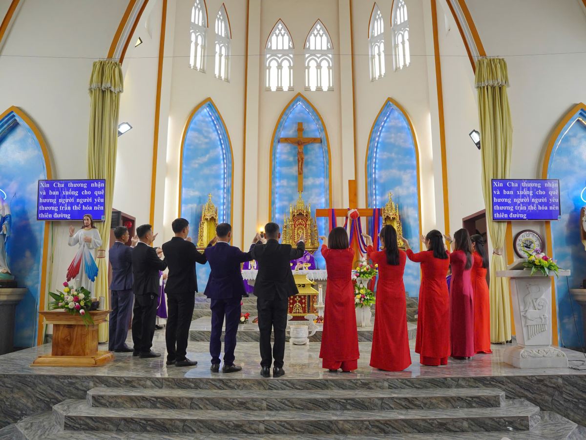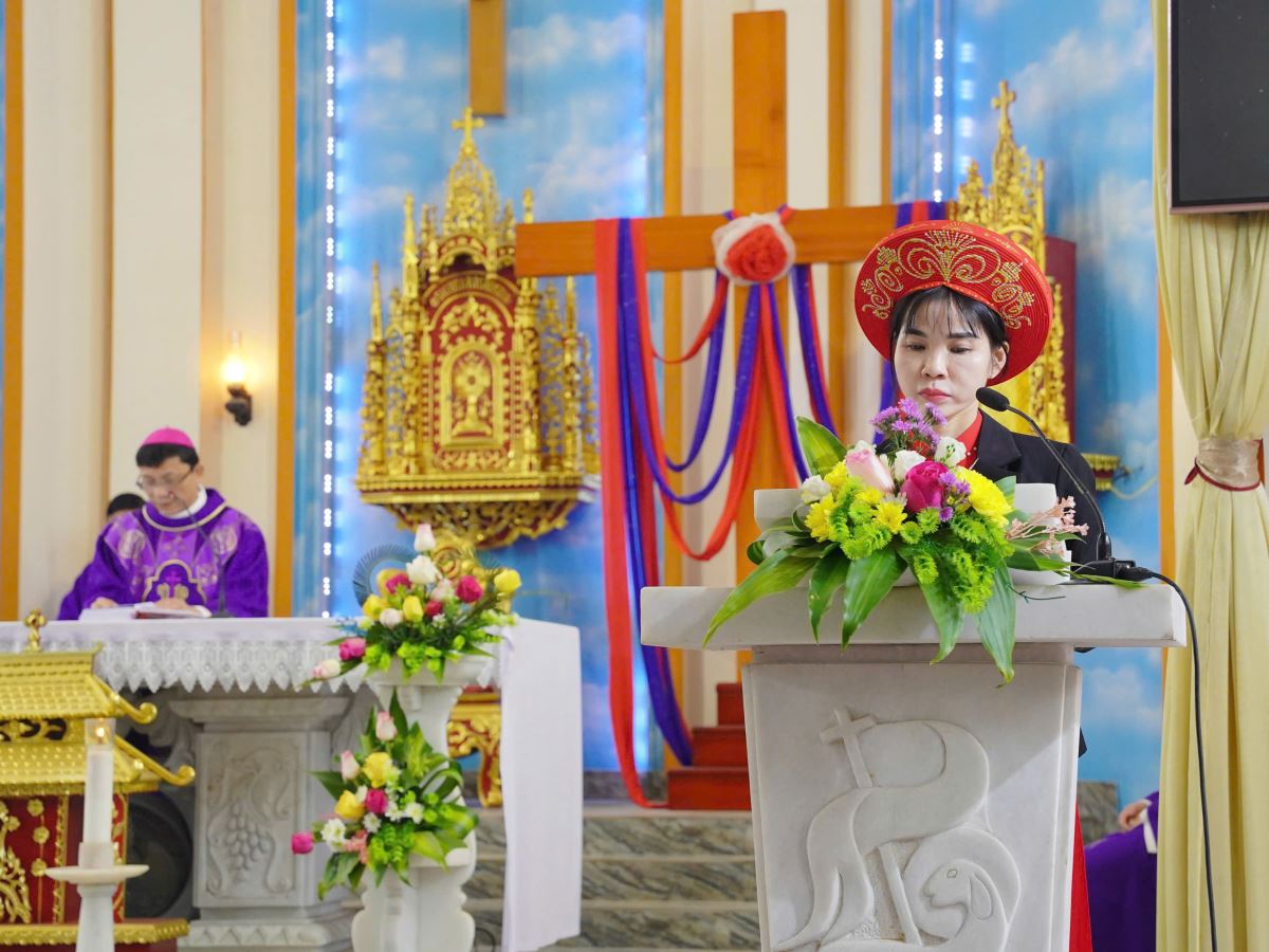 Trước khi kết thúc Thánh lễ, đại diện các đôi hôn nhân dâng lời tạ ơn Thiên Chúa, tri ân Đức cha Phaolô, cha xứ Giuse, quý cha đồng tế và toàn thể cộng đoàn đã hiệp thông cầu nguyện.