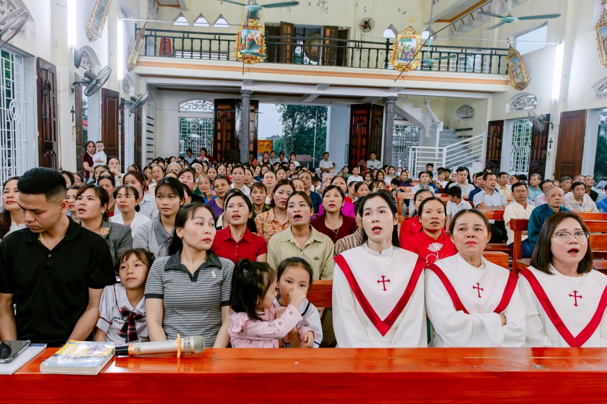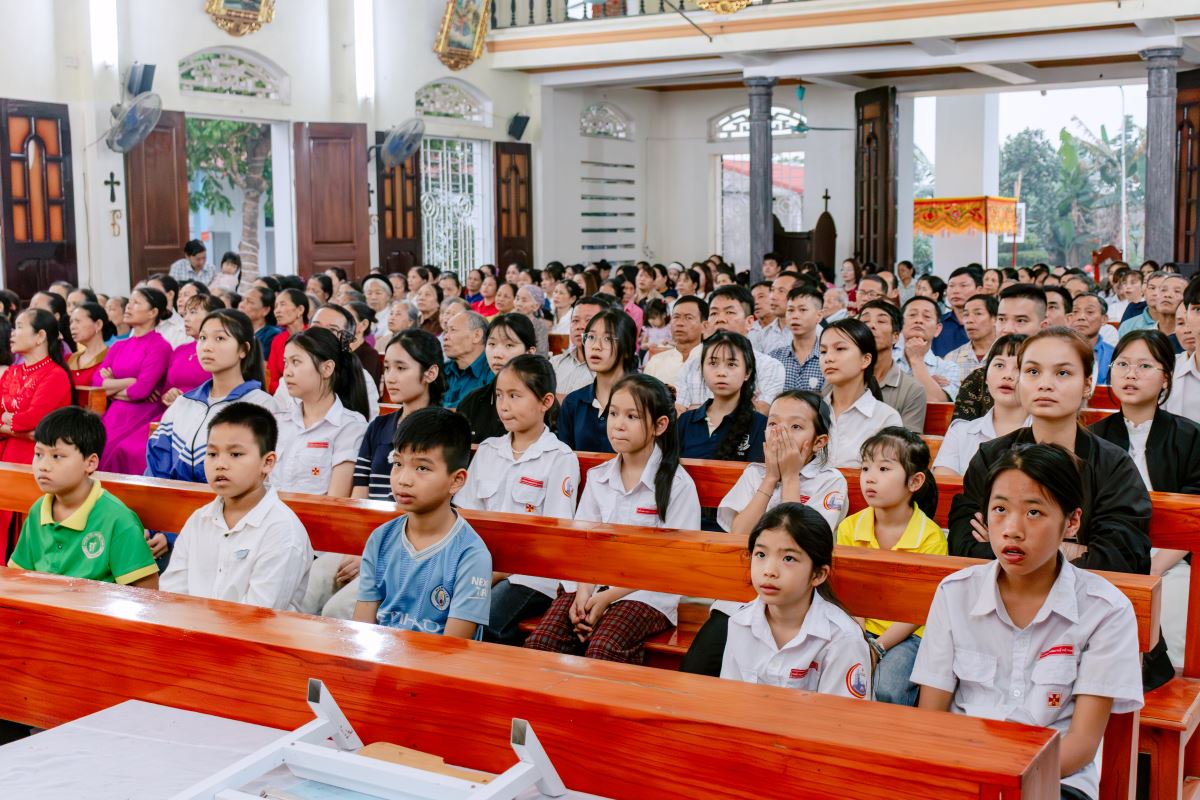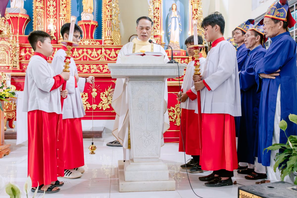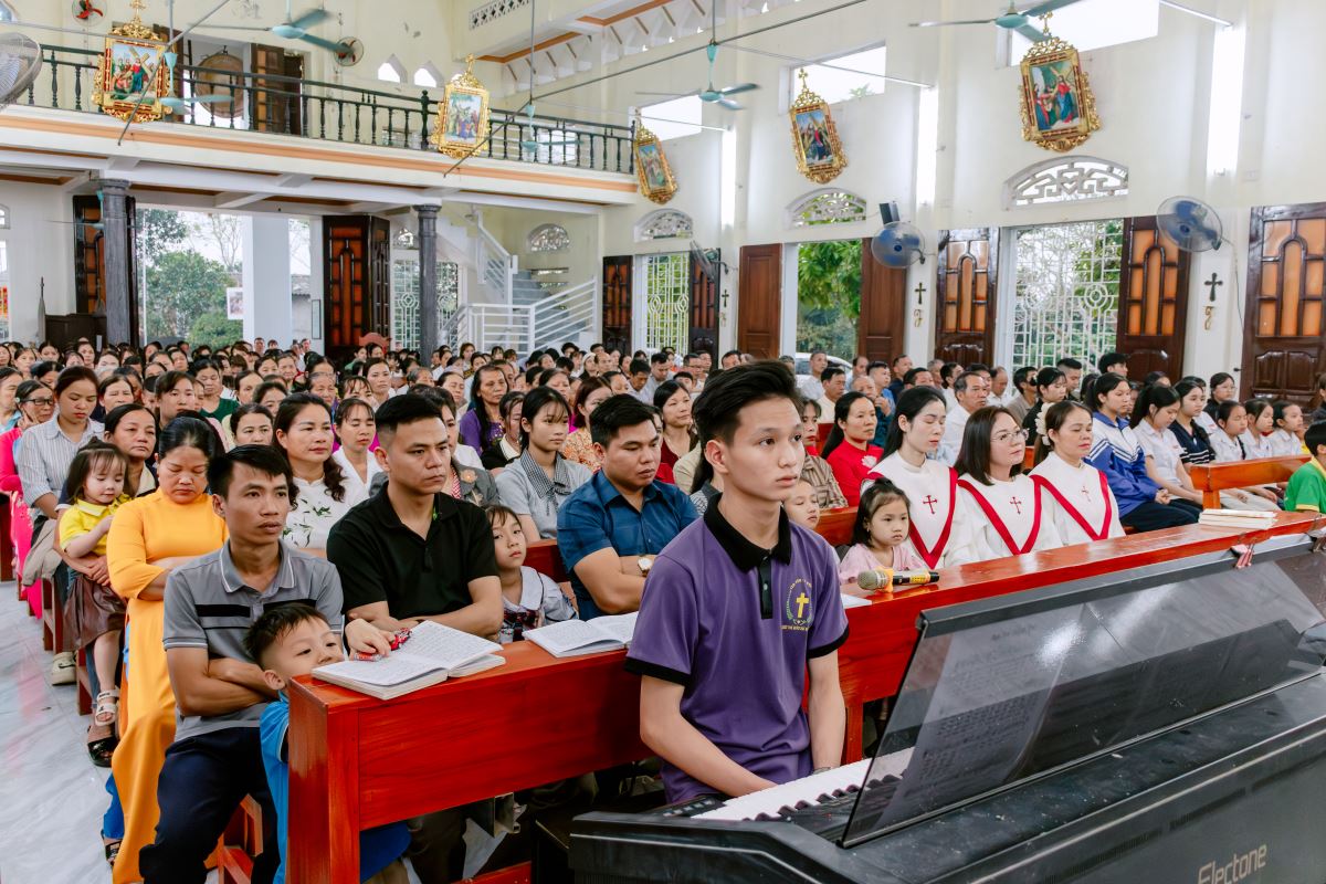 Thánh lễ do cha xứ Giuse Nguyễn Gia Huấn chủ tế, cùng với sự hiện diện hiệp thông của quý dì Hội dòng Mến Thánh Giá Hưng Hóa đang hỗ trợ mục vụ trong những ngày Tuần Thánh, và cộng đoàn dân Chúa đến từ các giáo họ trong giáo xứ.