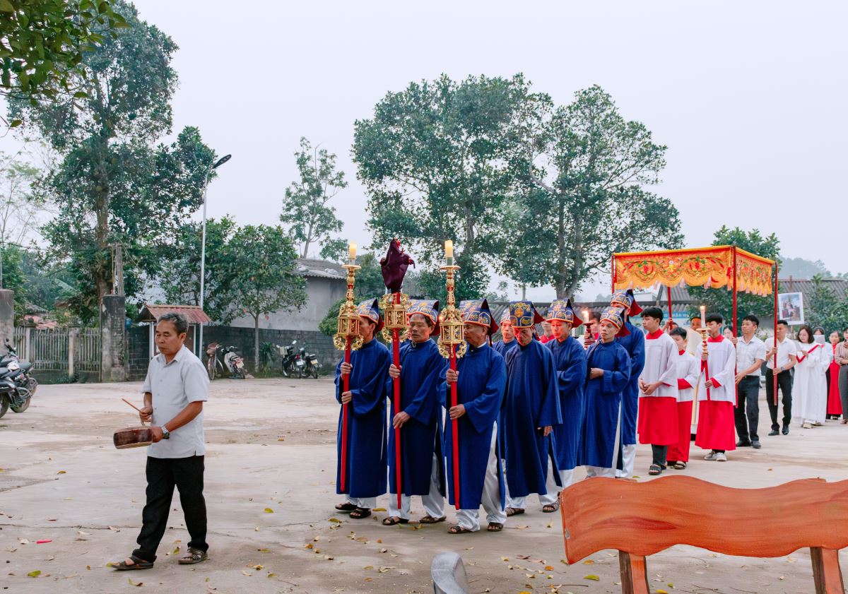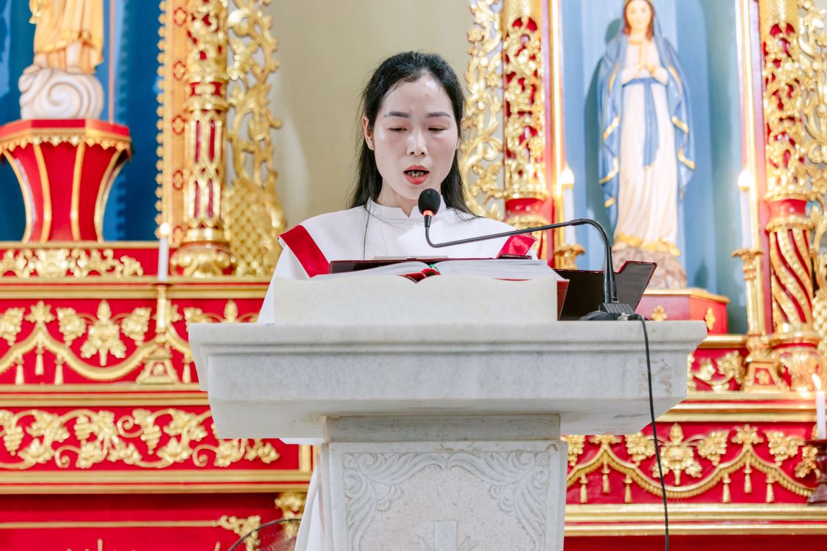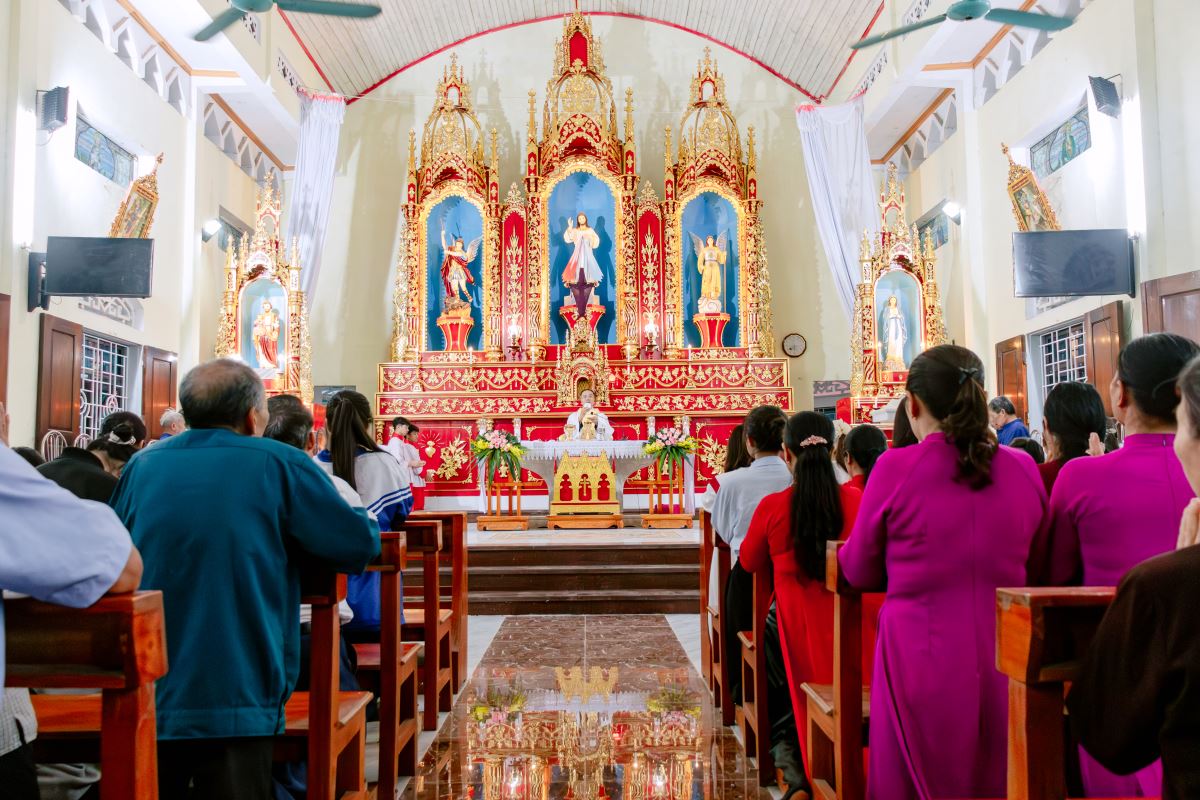Thánh lễ do cha xứ Giuse Nguyễn Gia Huấn chủ tế, cùng với sự hiện diện hiệp thông của quý dì Hội dòng Mến Thánh Giá Hưng Hóa đang hỗ trợ mục vụ trong những ngày Tuần Thánh, và cộng đoàn dân Chúa đến từ các giáo họ trong giáo xứ.