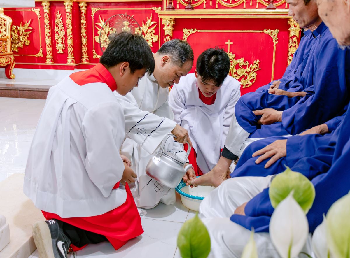 Cha chủ tế thực hiện nghi thức rửa chân, tái hiện cử chỉ yêu thương và phục vụ của Chúa Giêsu dành cho các môn đệ |