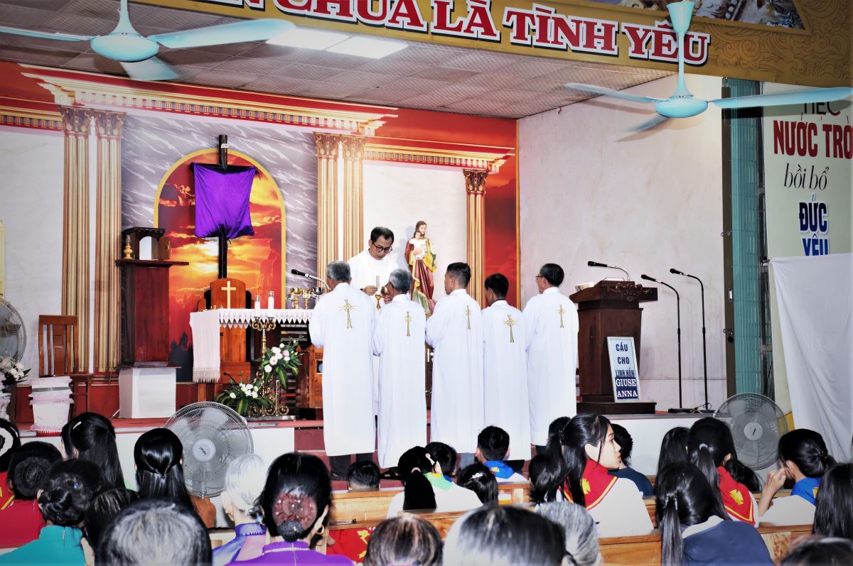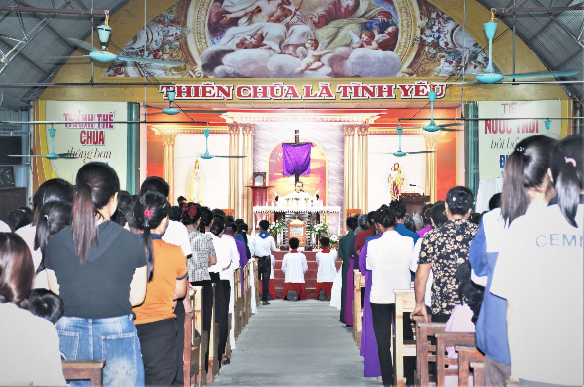 Thánh lễ do Cha Phó đặc trách giáo xứ Vinh Sơn Vũ Văn Nguyện chủ sự, với sự hiện diện sốt sắng của Hội đồng Mục vụ, các hội đoàn và đông đảo giáo dân trong toàn xứ.